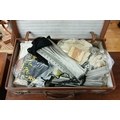 Vintage leather suitcase full of vintage & mid-century linen