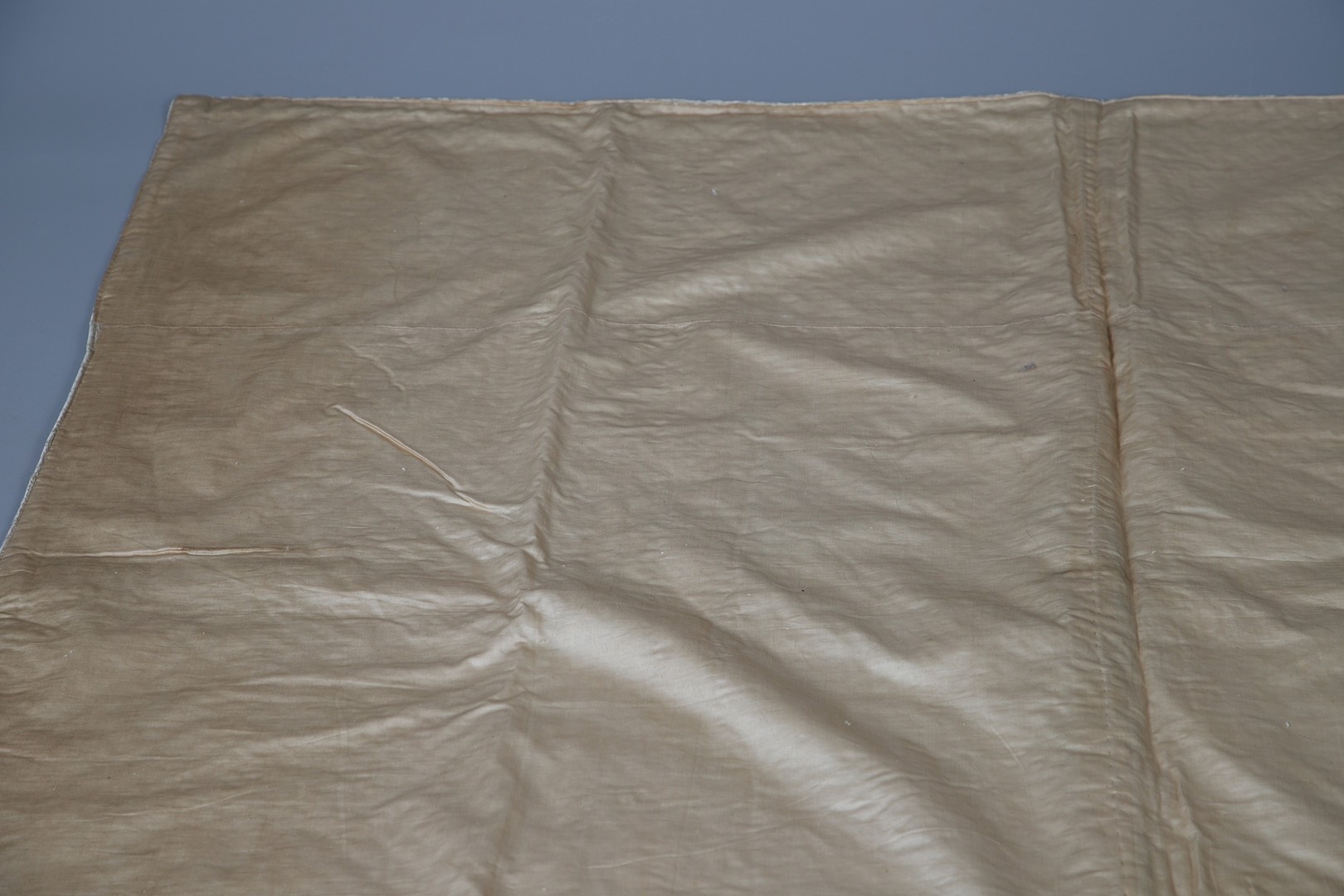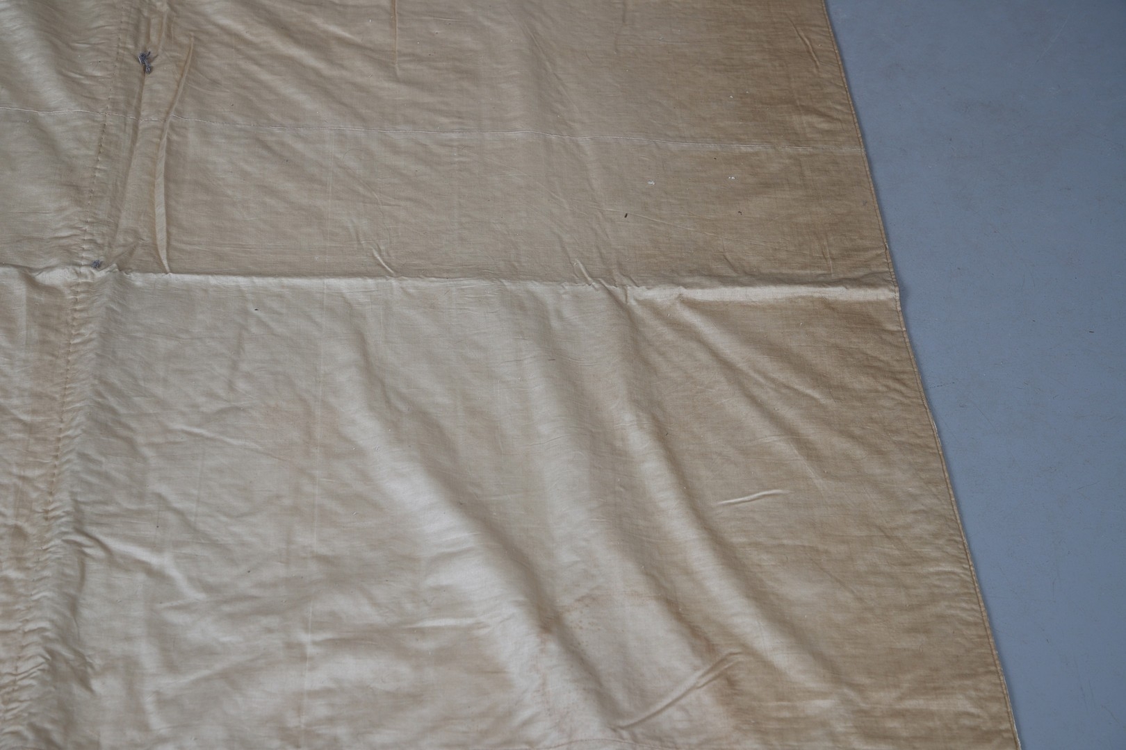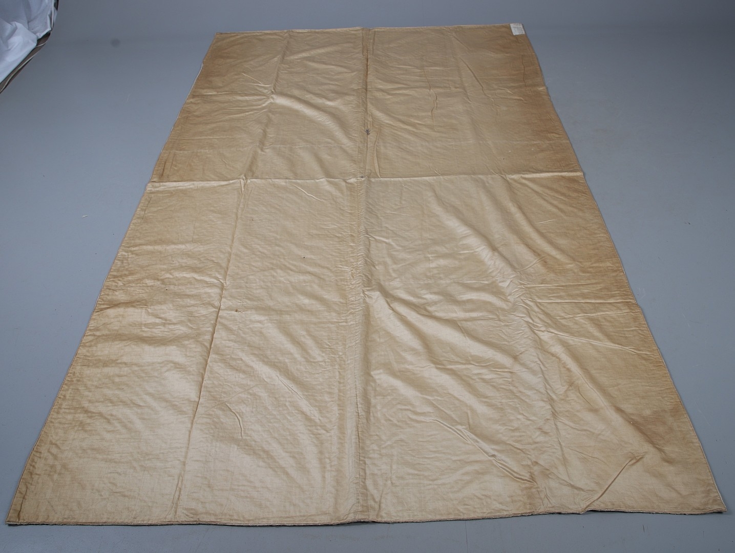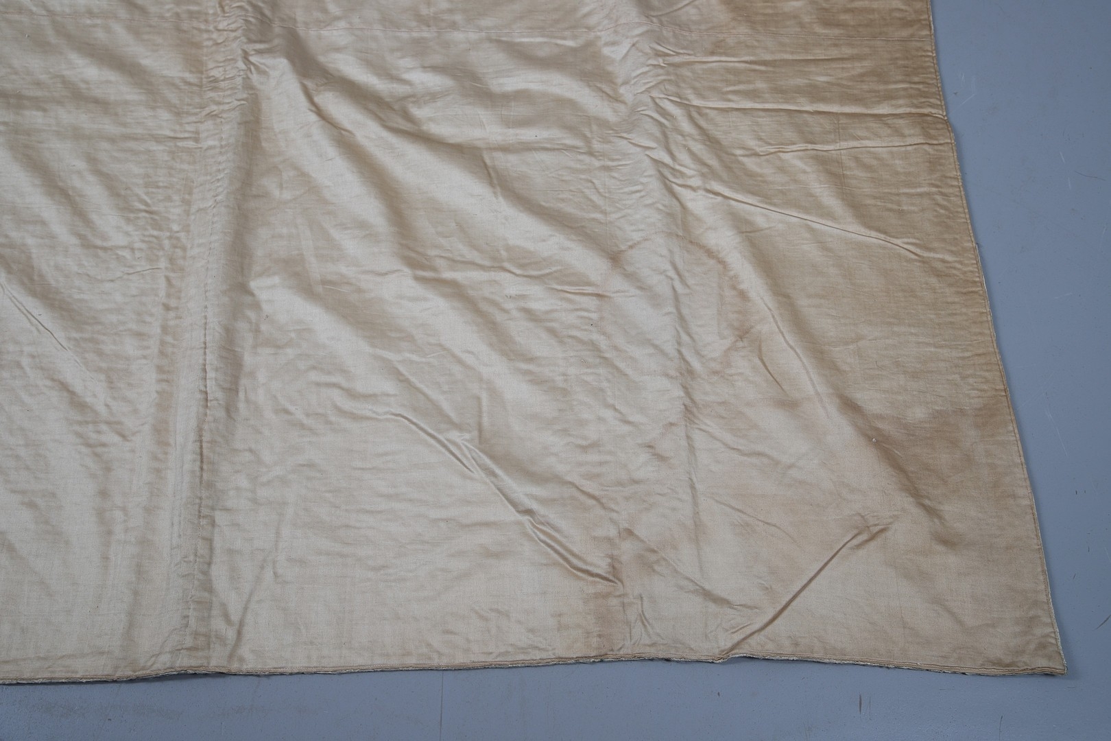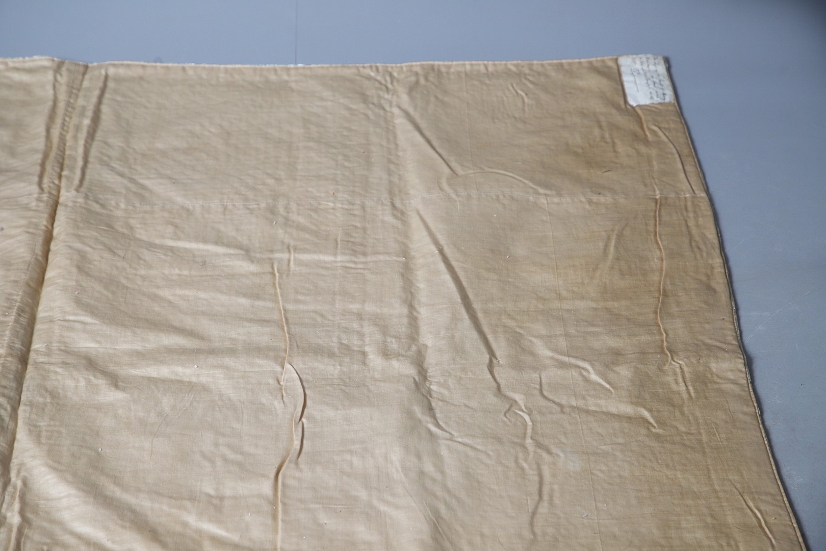 LATE 18THC SILK QUILTED BEDSPREAD - DATED 1775. The silk quilted bedspread made in 4 long sections, with foliate and other motifs. With a hand written label to the reverse dated 1775, and provenance to the Walmesley Family (approx 250cms by 158cms)