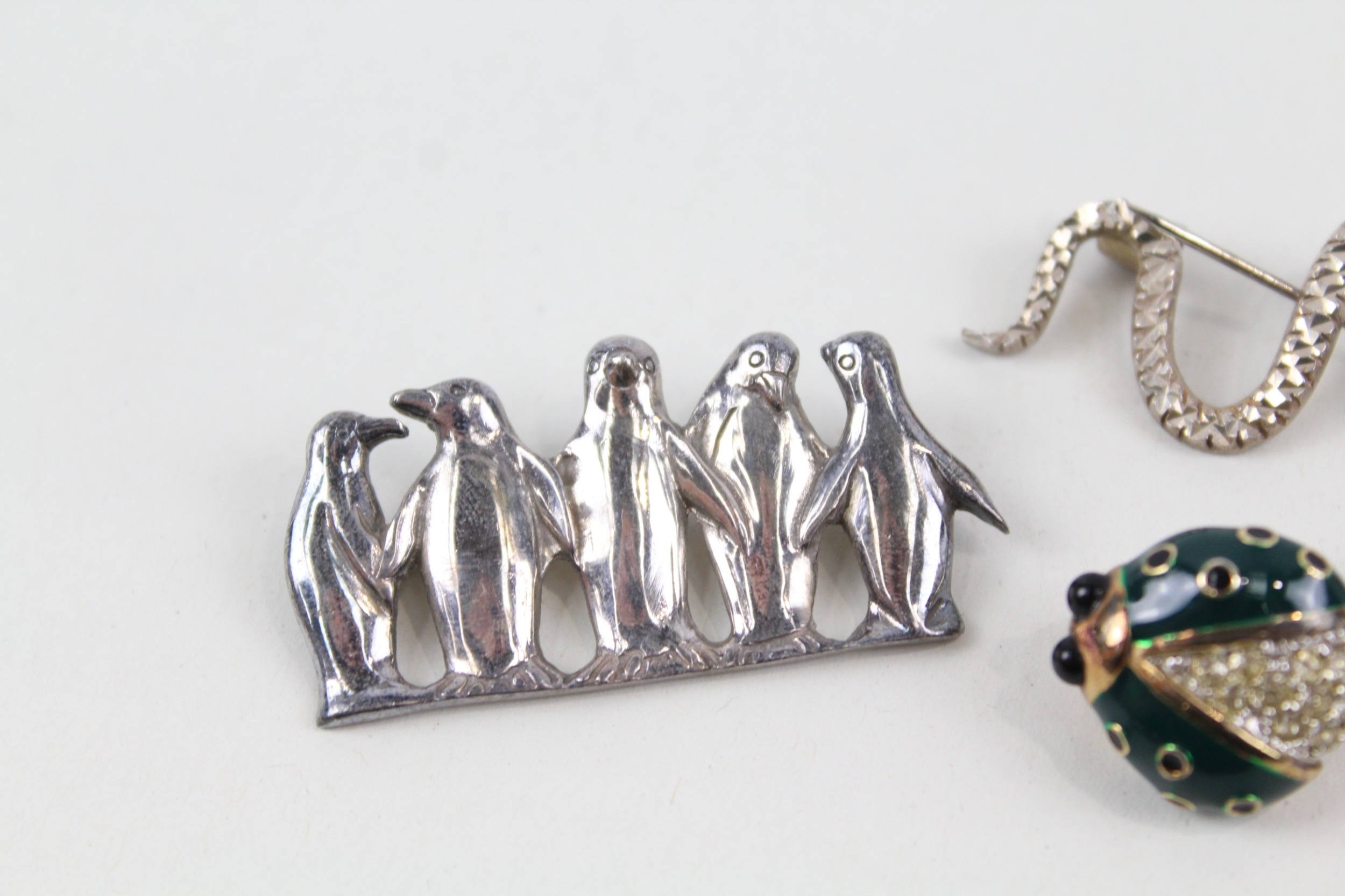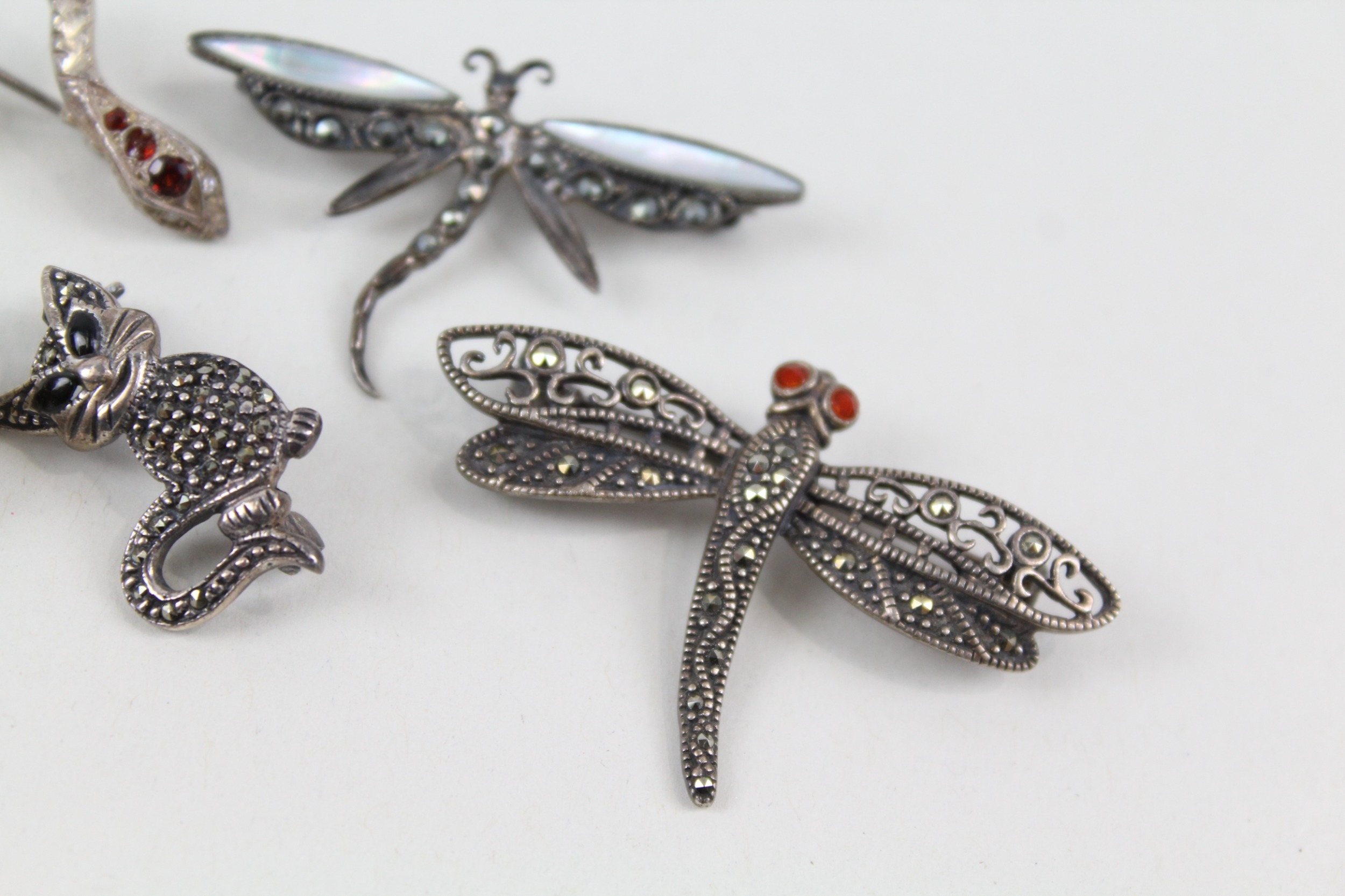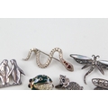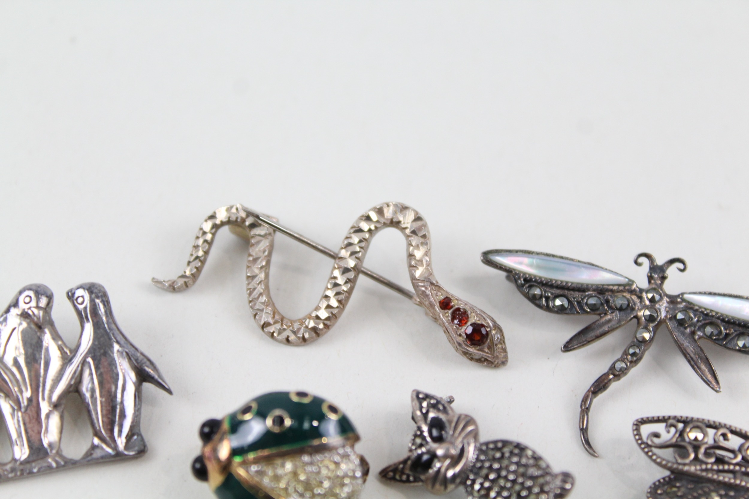 Collection of Sterling Silver Animal Brooches inc. Marcasite, Enamel x 6 27g