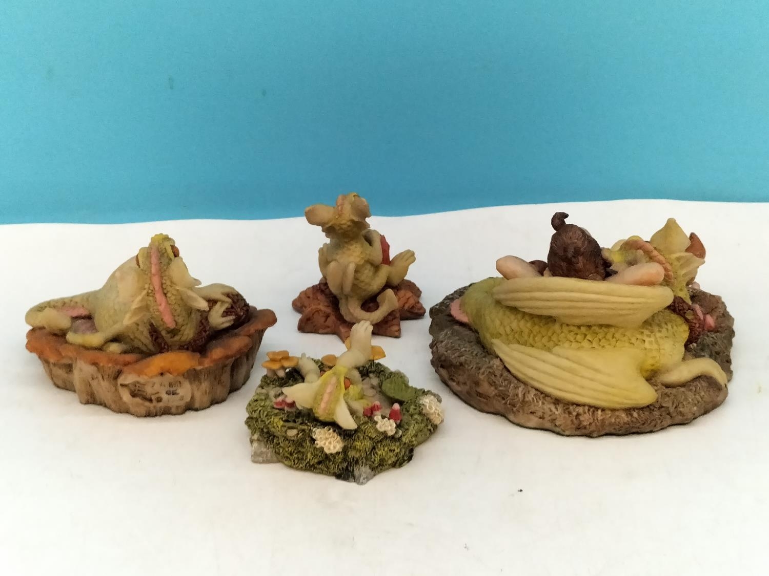 Enchantica Dragon Figures (4) to include Jonquil & Rarajack, Snappa Dragon Figures (2) plus Ratajack Figure. Largest 7cm High, 12.5cm x 11.5cm.
