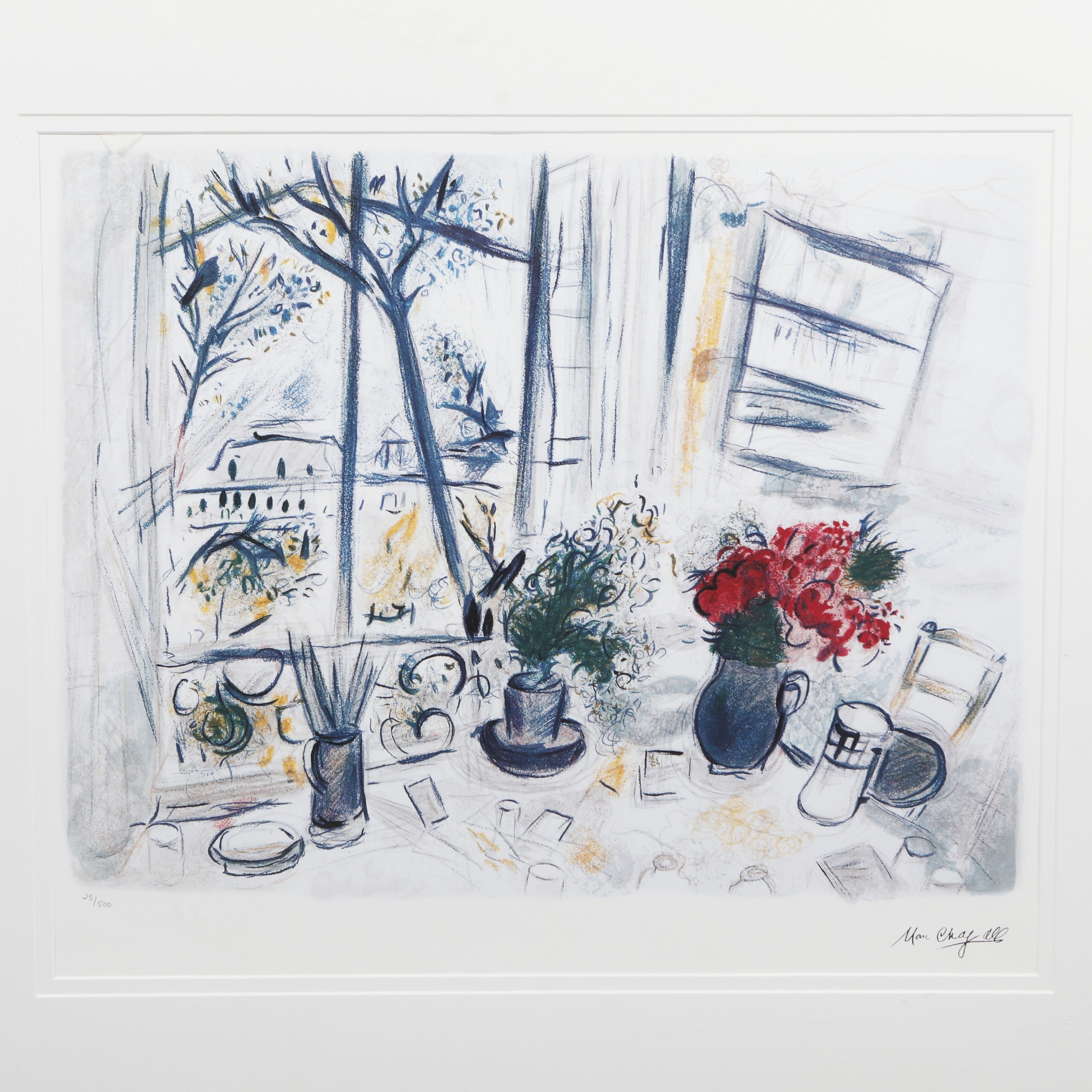 MARC CHAGALL. FLEUR DU PARC. Lithograph, 51cms x 60cms, signed in plate and numbered in pencil 25/500, framed.