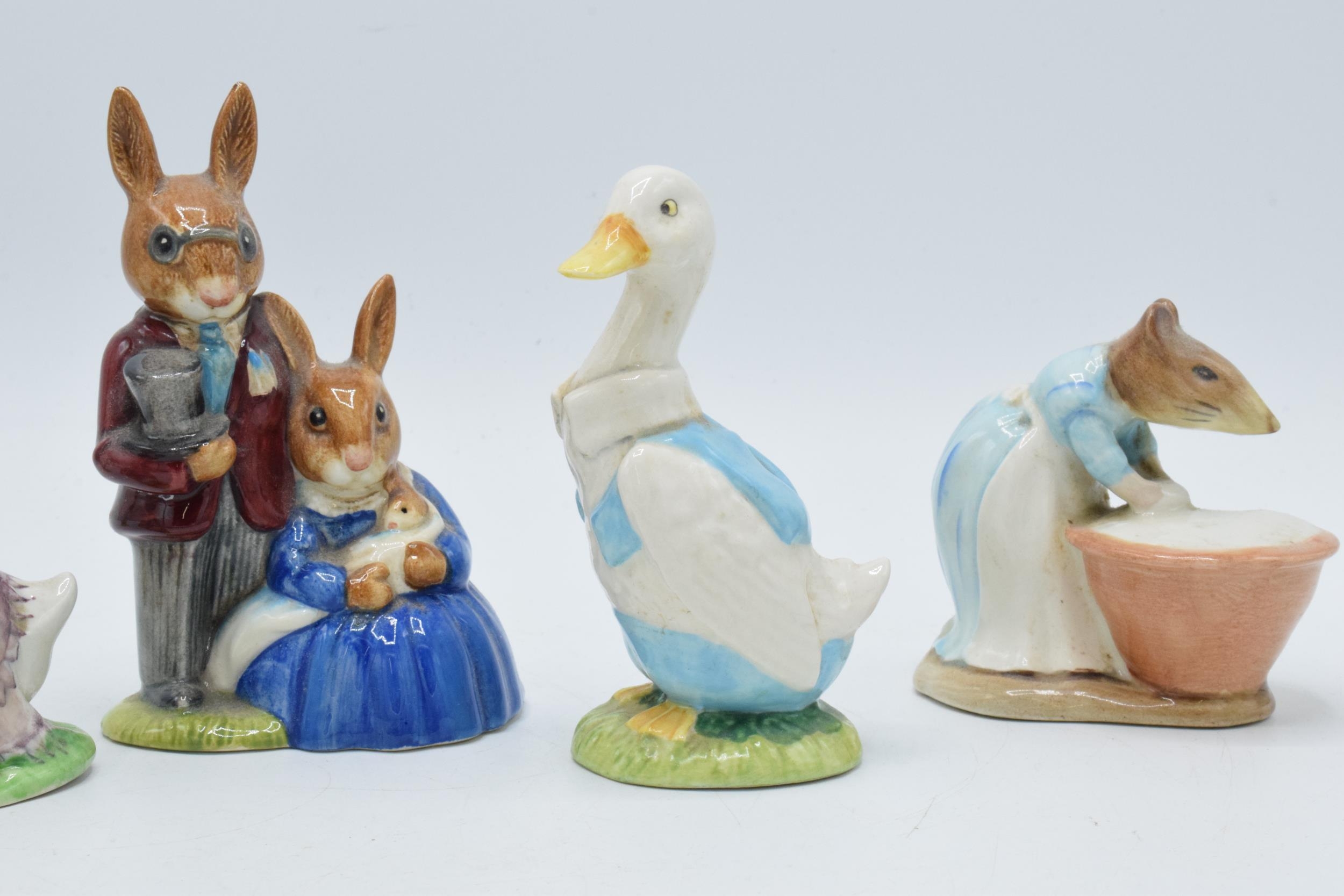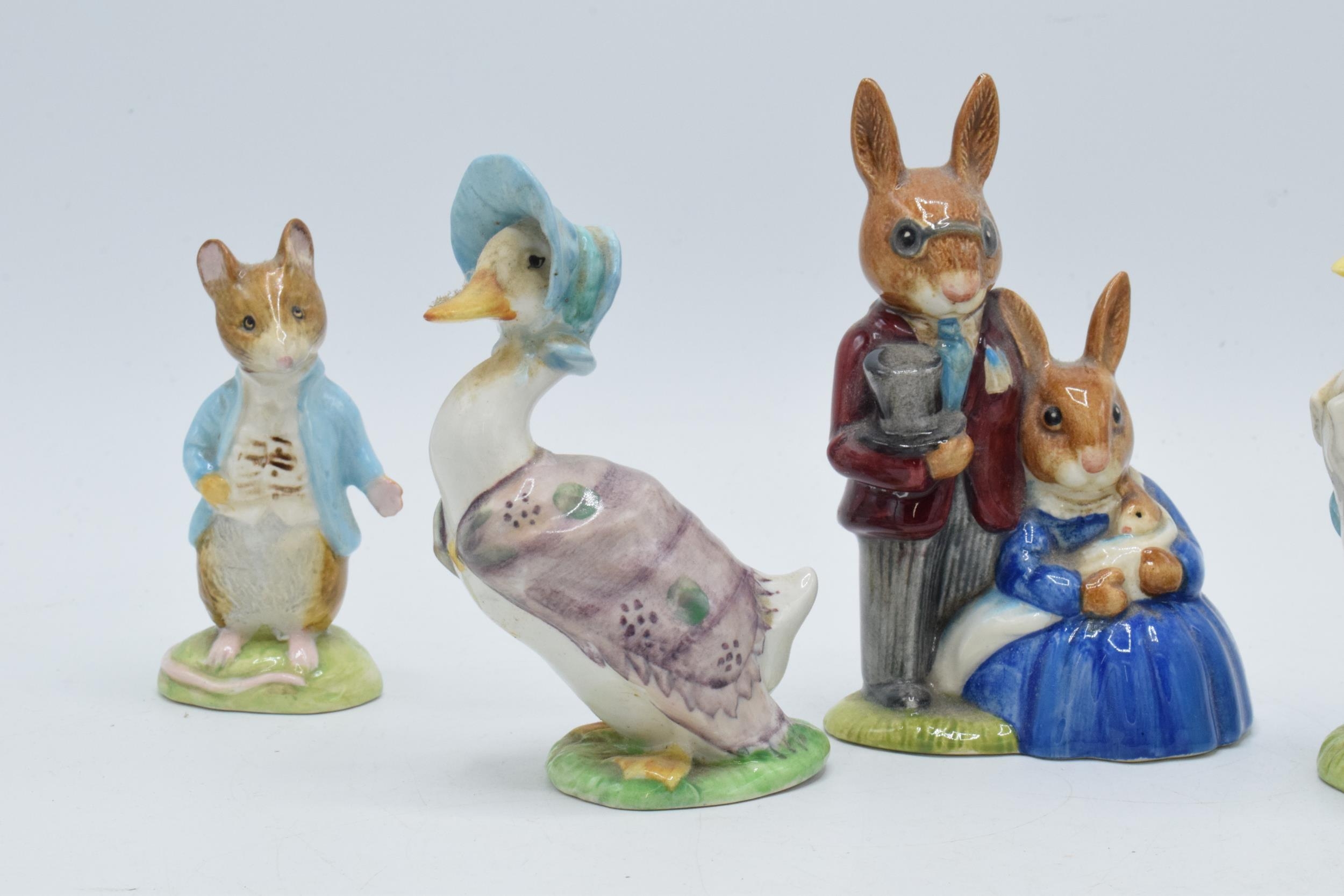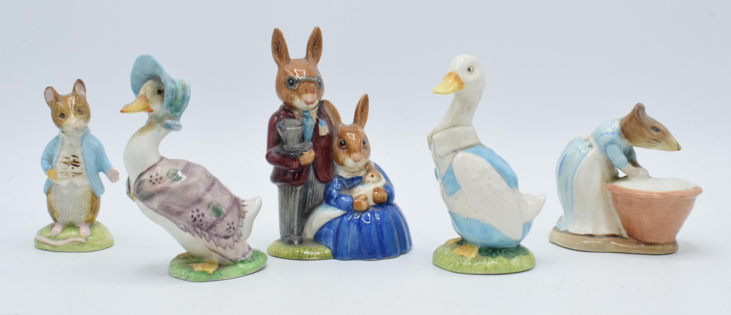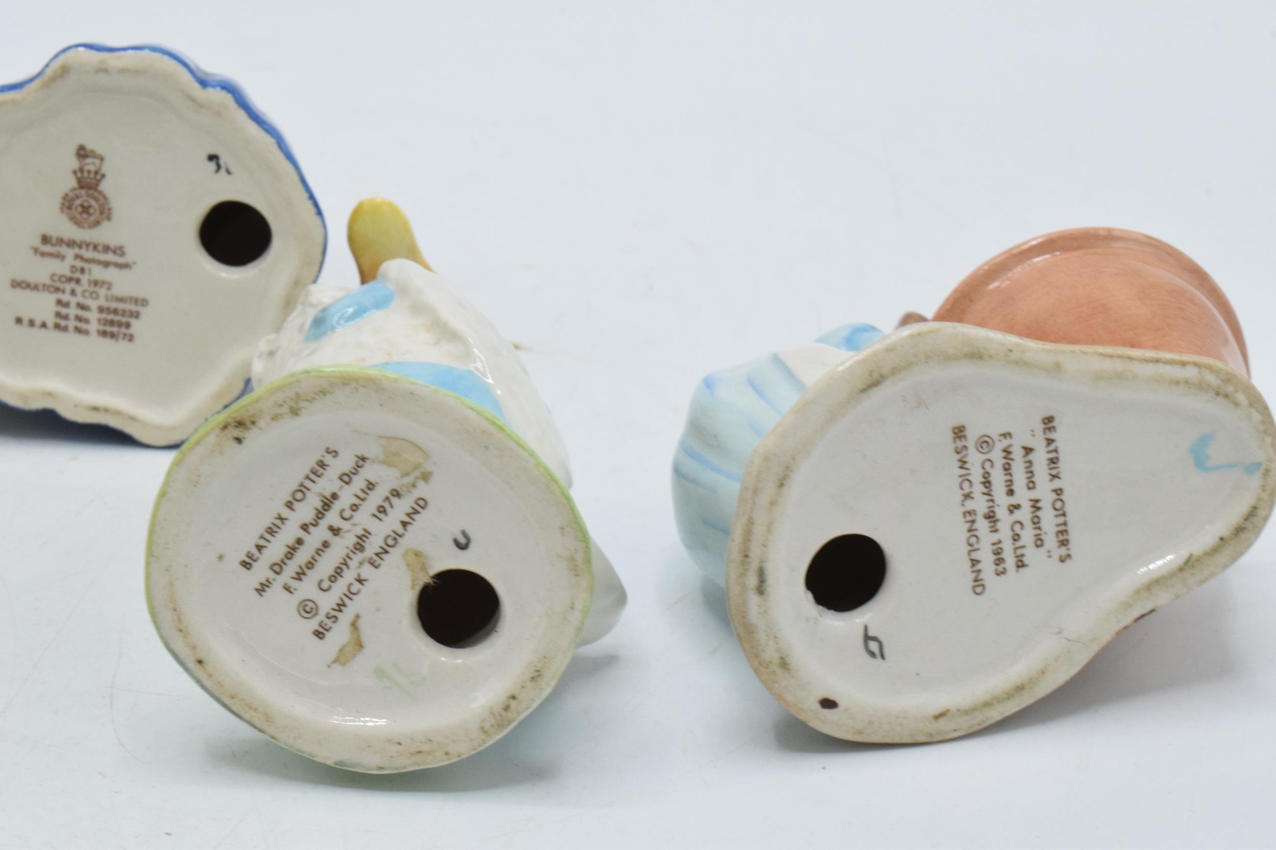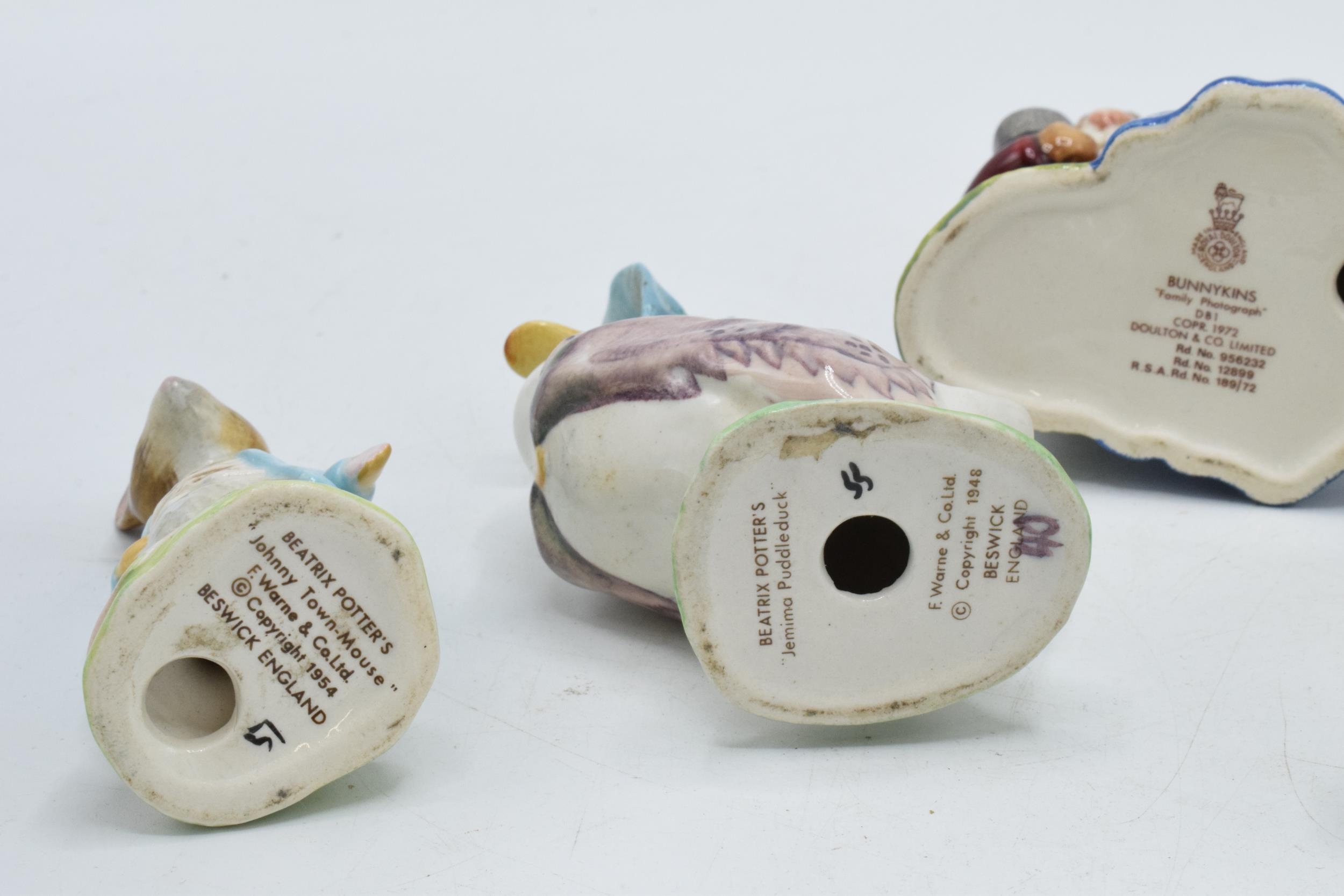 Beswick Beatrix Potter figures to include Jemima Puddleduck, Mr Drake Puddleduck, Johnny Townmouse, Anna Maria and Doulton Family Photograph Bunnykins DB1 (5).