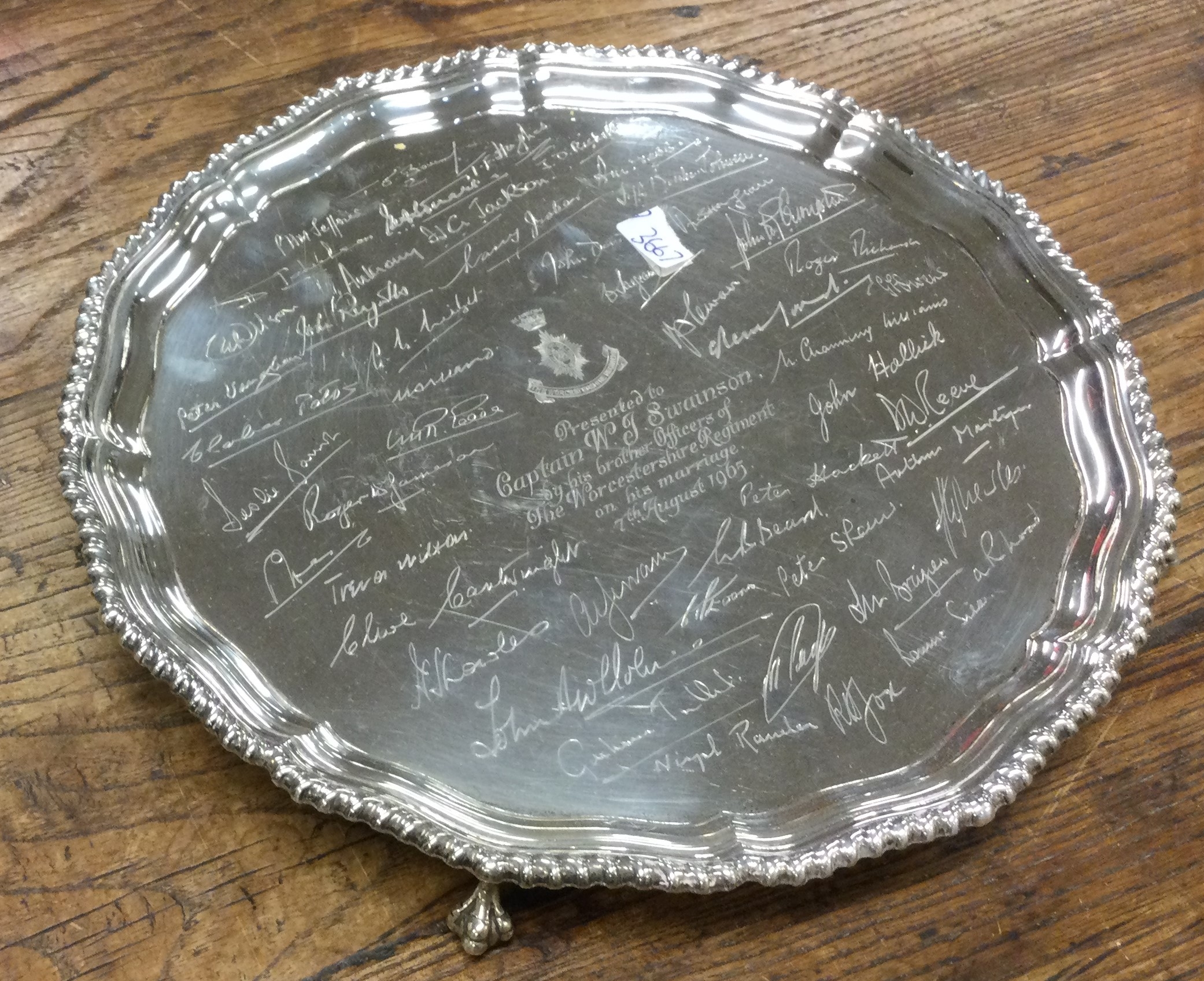 A good circular silver salver with gadroon rim. London. By WW. Approx. 579 grams. Est. £150 - £200.