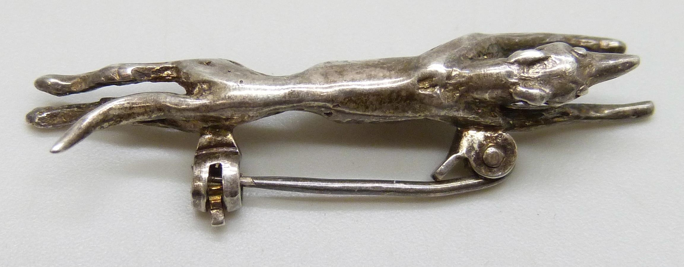 A silver dog brooch in the form of a racing greyhound, HG, London, 1991, 3.5cm