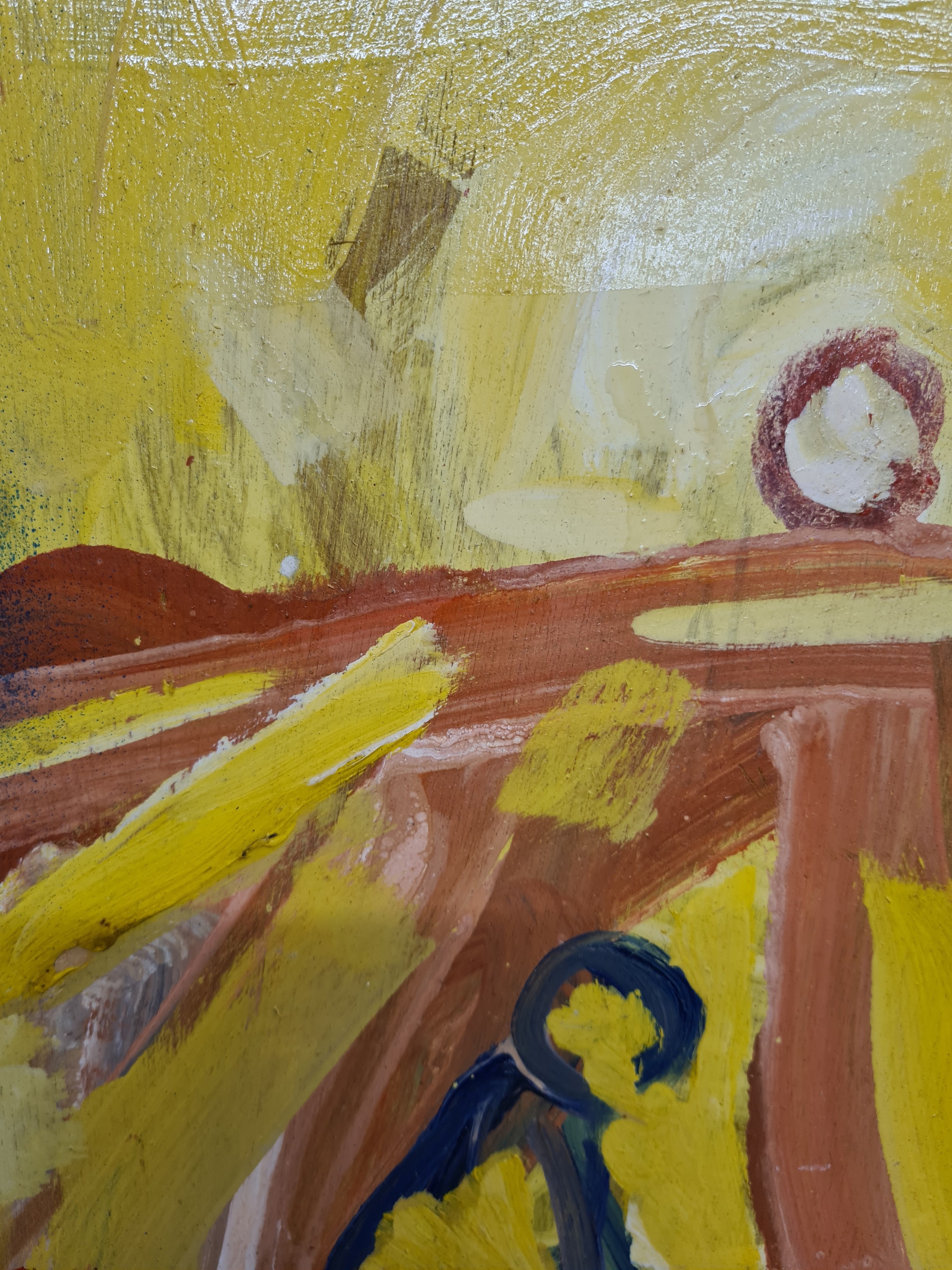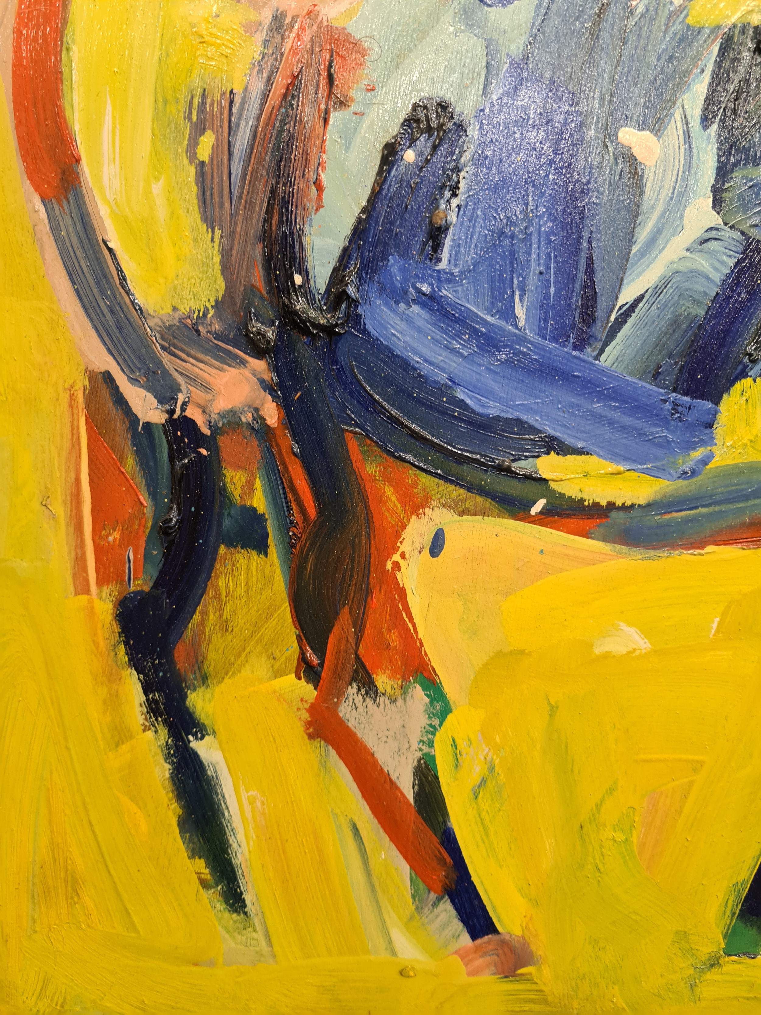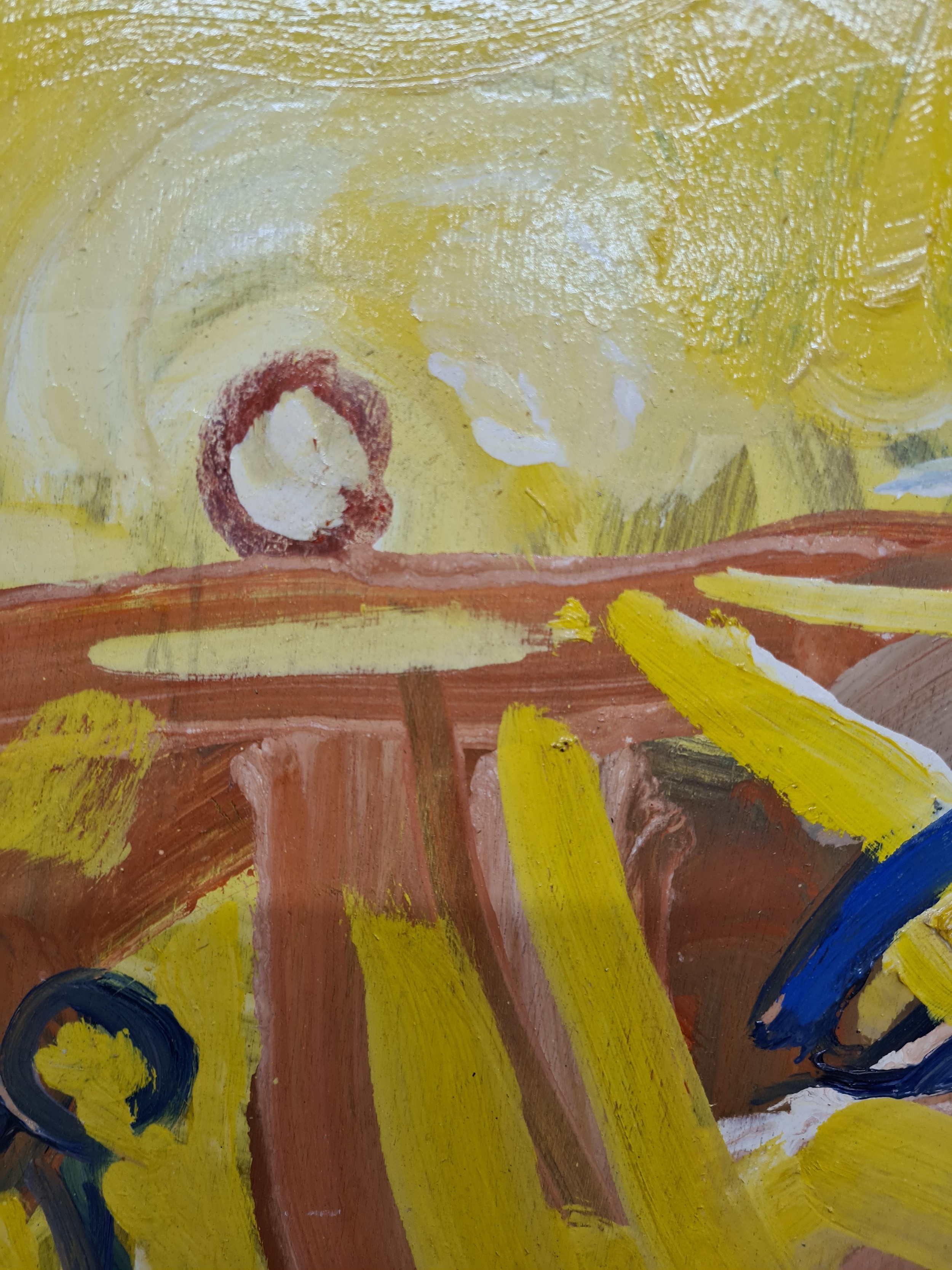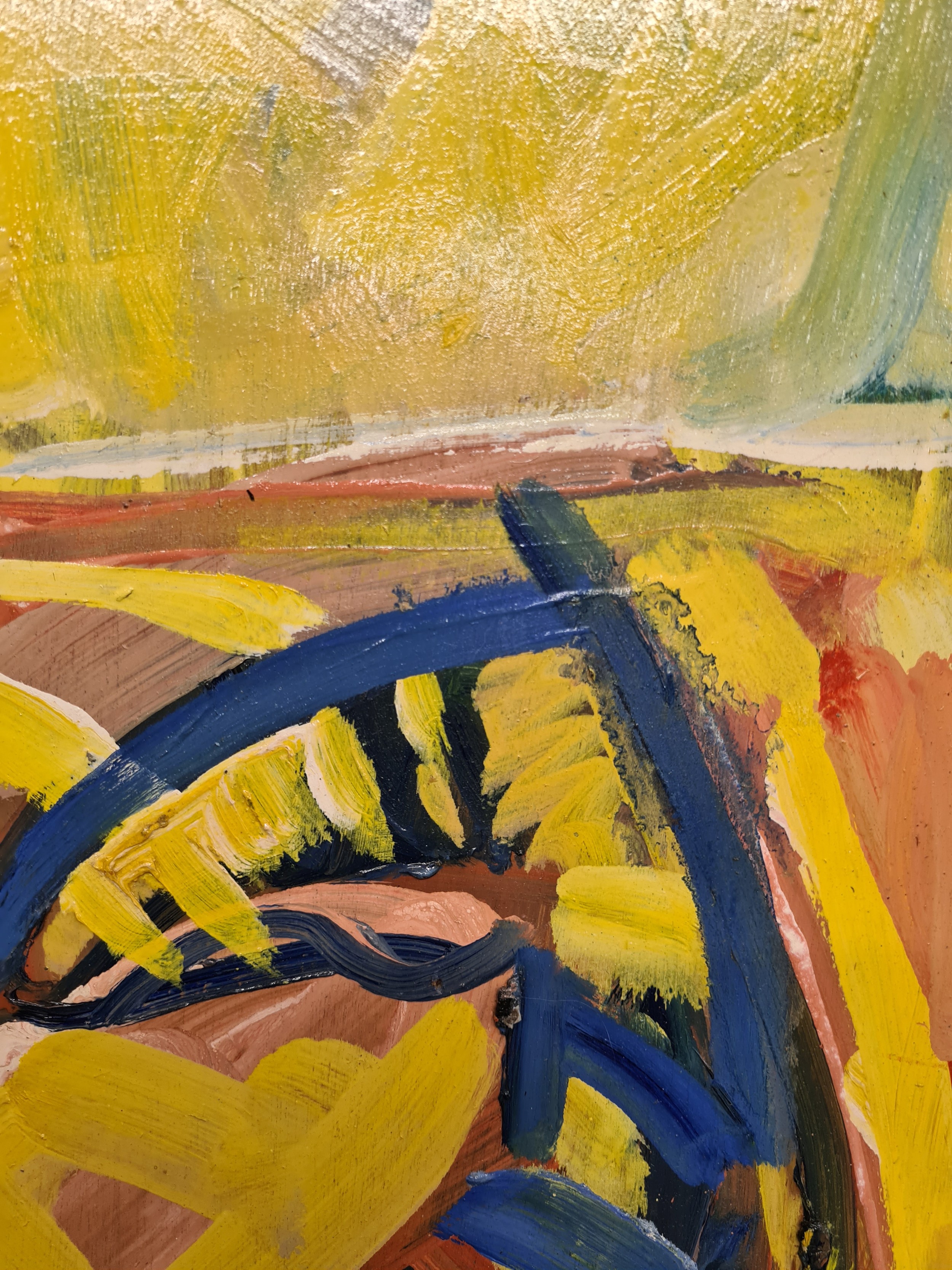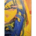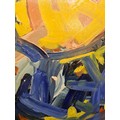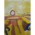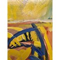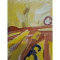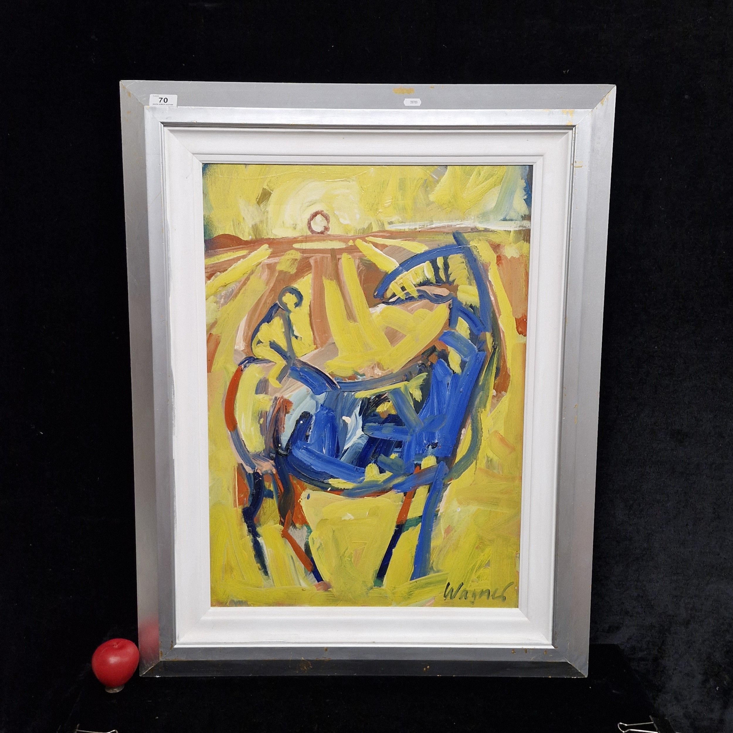 Star Lot: Hermann Wagner (German, Contemporary b.1943 - d.2019) A large original Hermann Wagner acrylic on board painting. Features a horse and a figure with a rich glow of sunlight in Wagner's expressionist style. Rendered in a combination of warm, rich yellows juxtaposed with cooler shades of blues, greens, and purples. Great achievement of texture achieved through expressive gestural brushstrokes. Wagner's brushstrokes and color palette work together evoking a sense of emotion, movement, and a sense of atmosphere, defining his abstract and expressive approach to the piece.