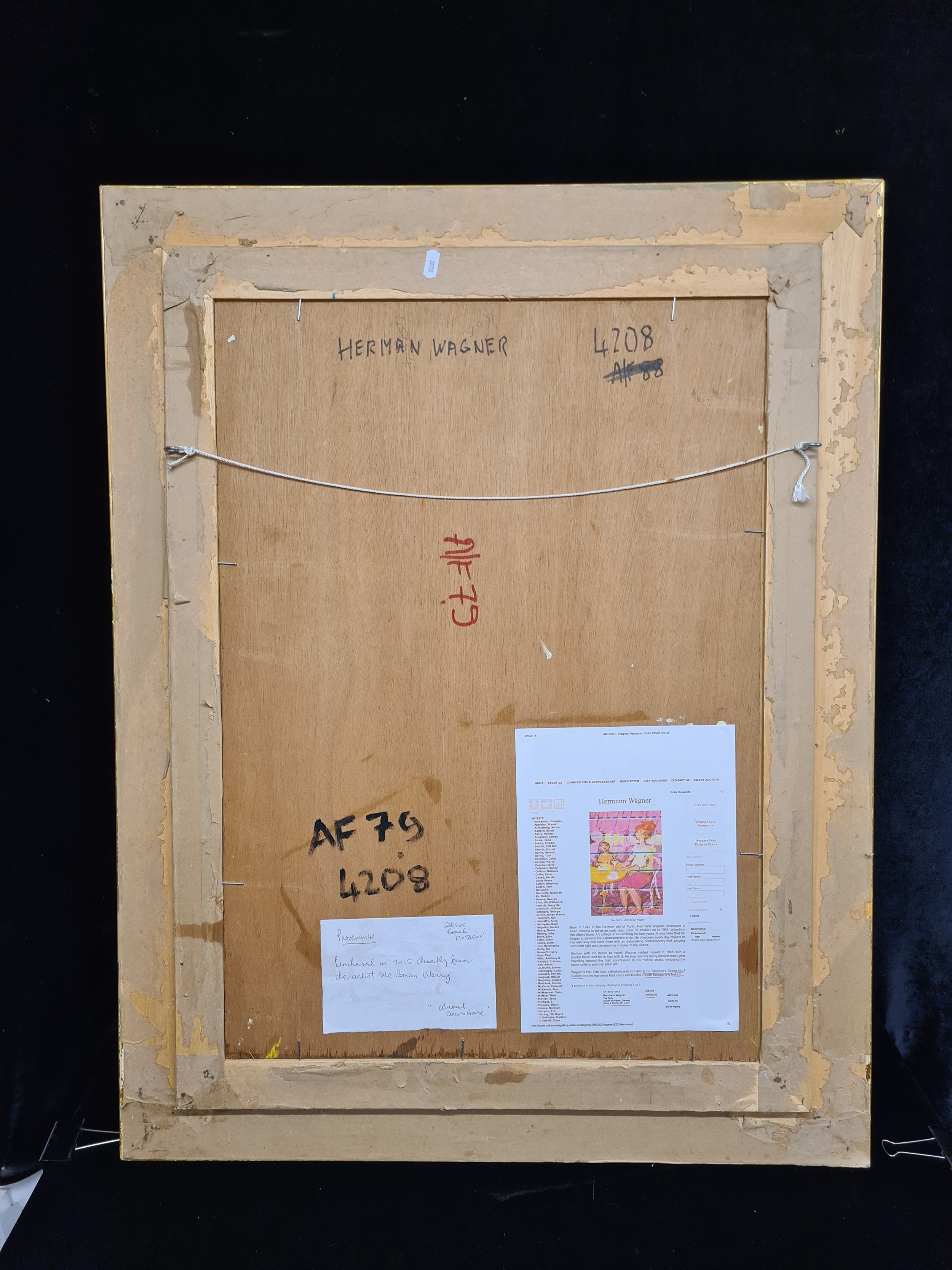 Wagner has sold well at auction with similar works fetching into the hundreds at Whyte's and Adam's. From John Nolan's (with whom Wagner shared a studio for many years) private collection.