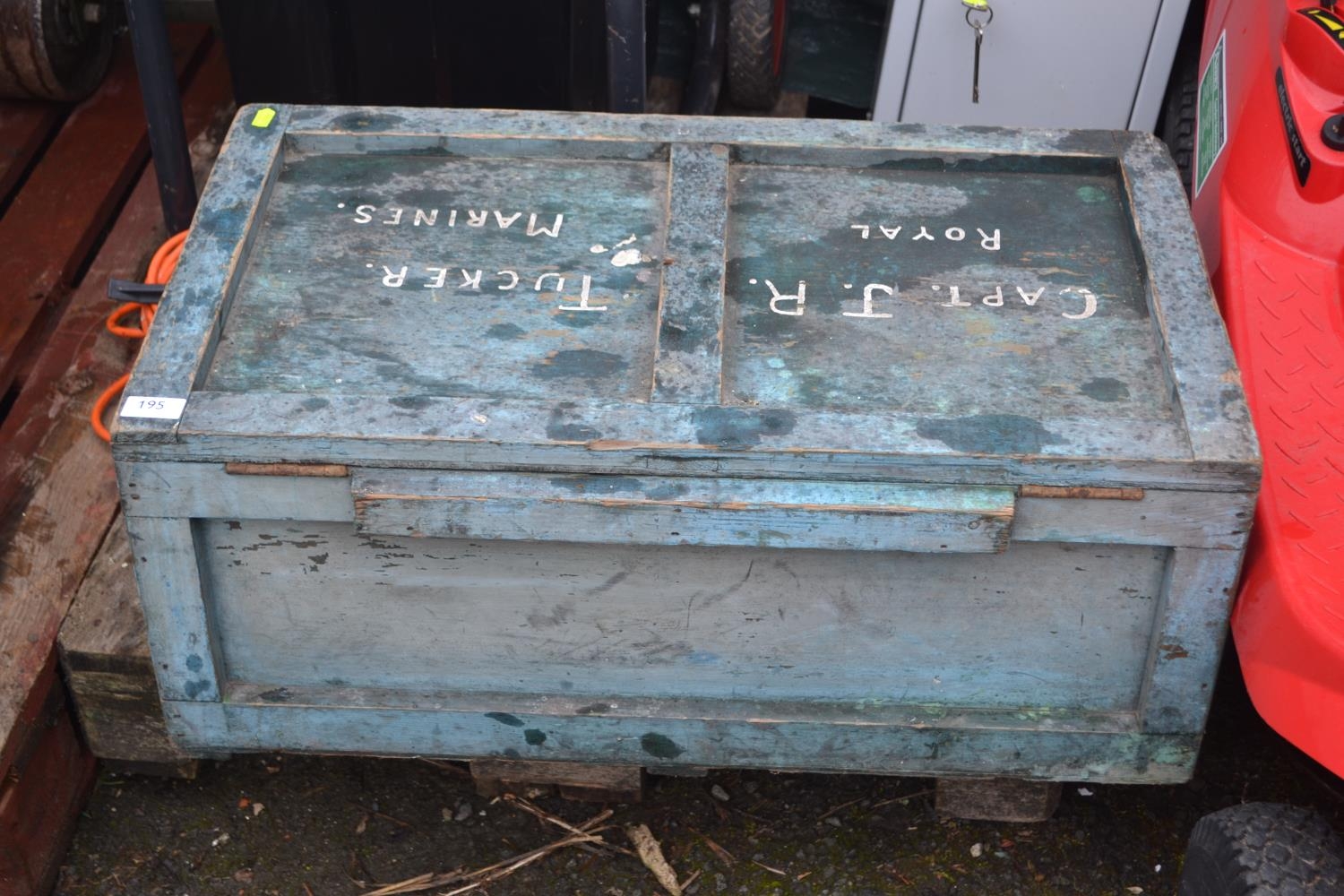 Wooden travel/storage trunk. Marked Cpt JR Tucker, Royal Marines.