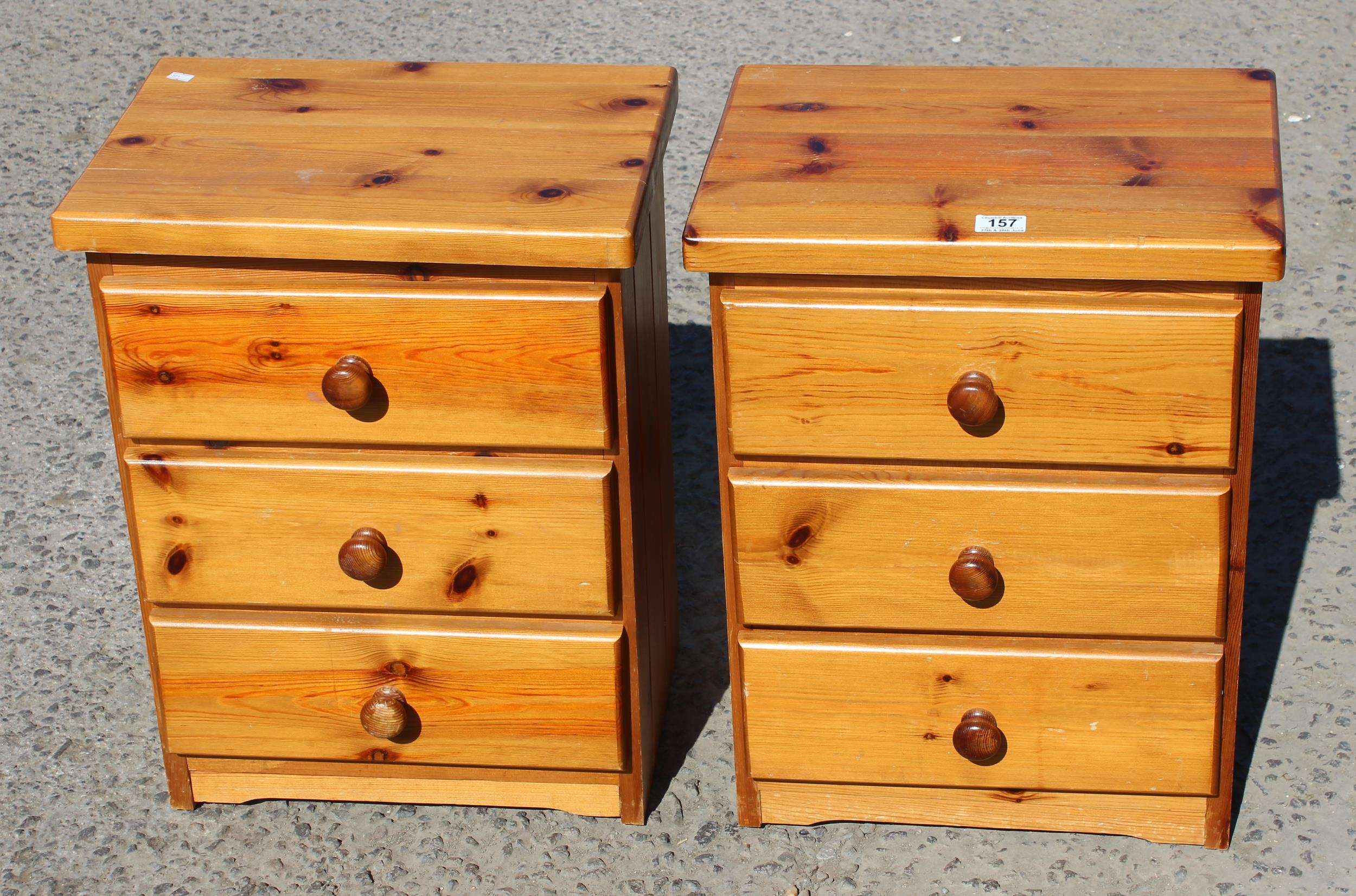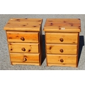A pair of three drawer pine bedside cabinets