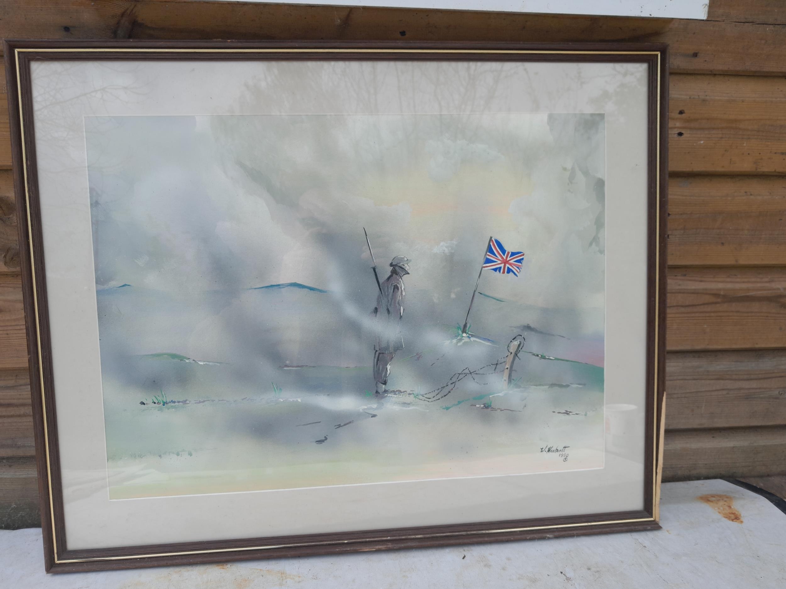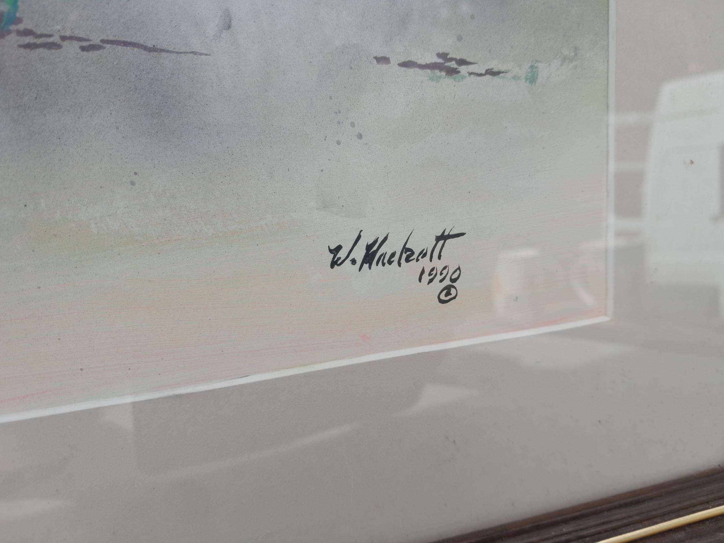 Modern gouache by W Hackett copyright 1990 F&G with Barbican Gallery label on reverse