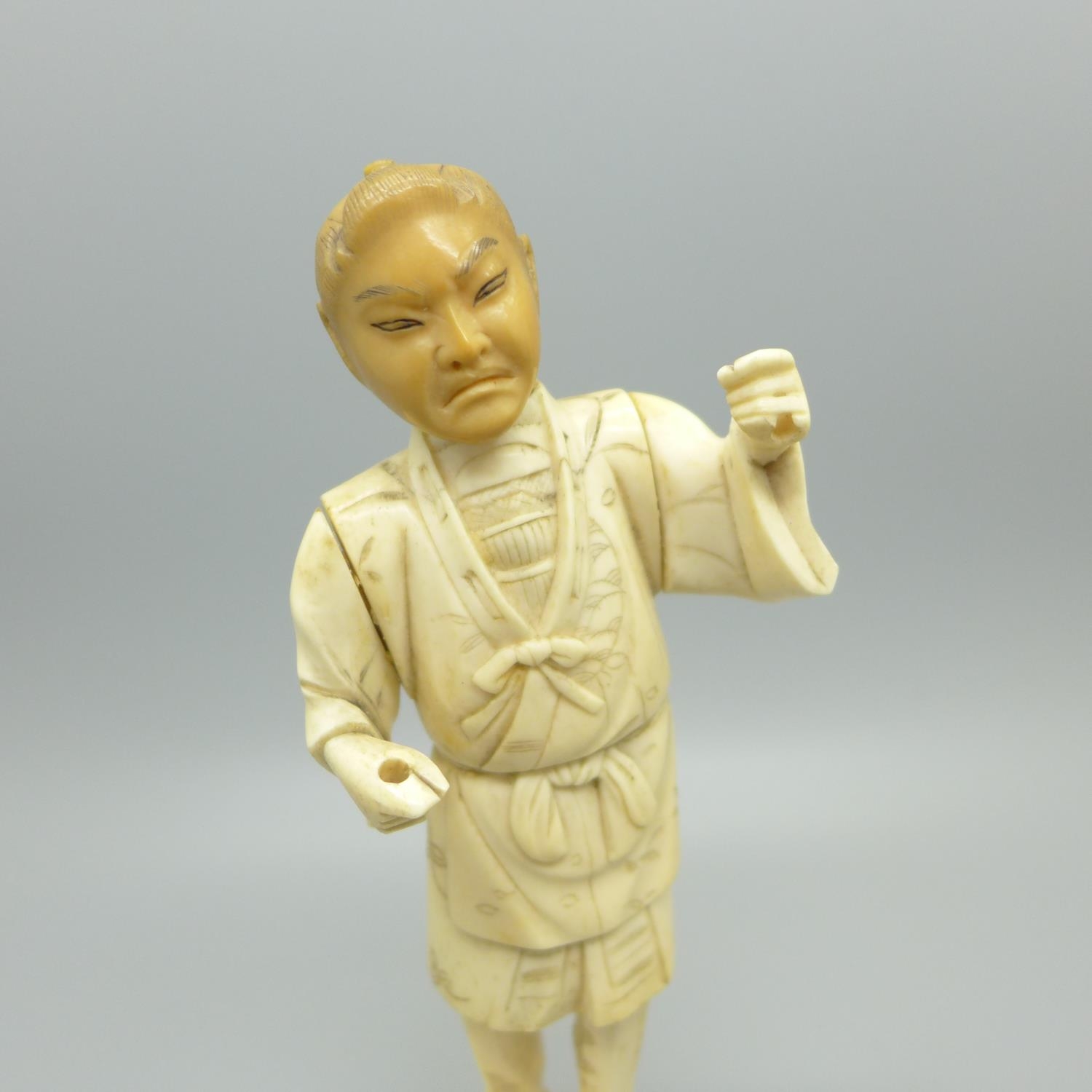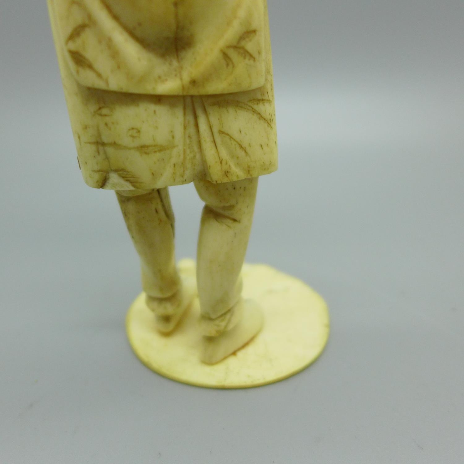 A carved ivory figure with later applied head, a/f