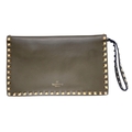A Valentino Garavani Nappa Rockstud Wristlet Clutch. Olive G...