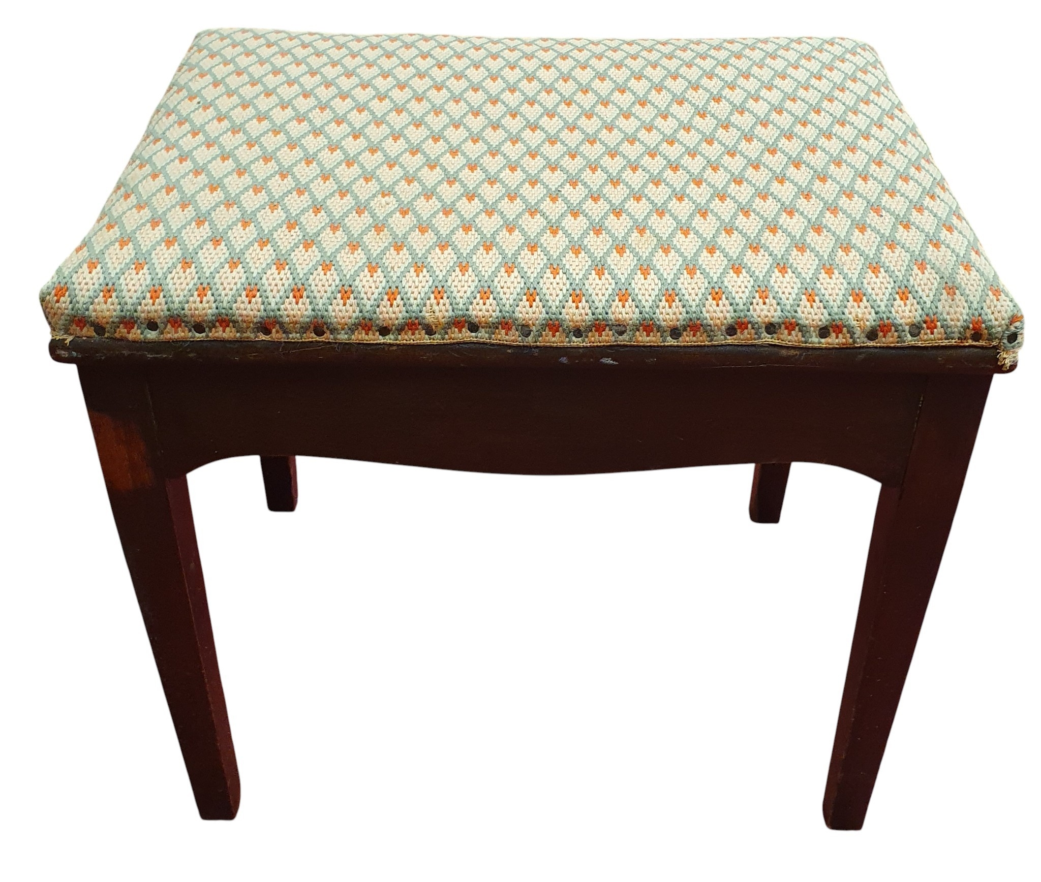 A Pair of 19th Century Walnut Hall Chairs with canework seats along with a foot stool and a piano stool..