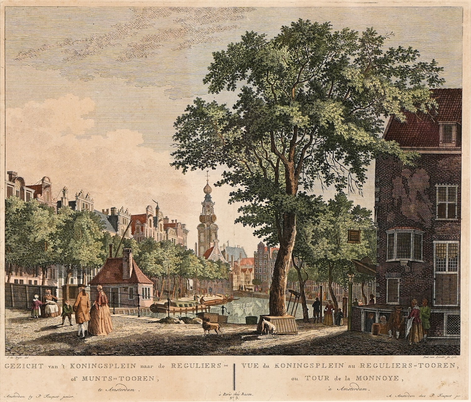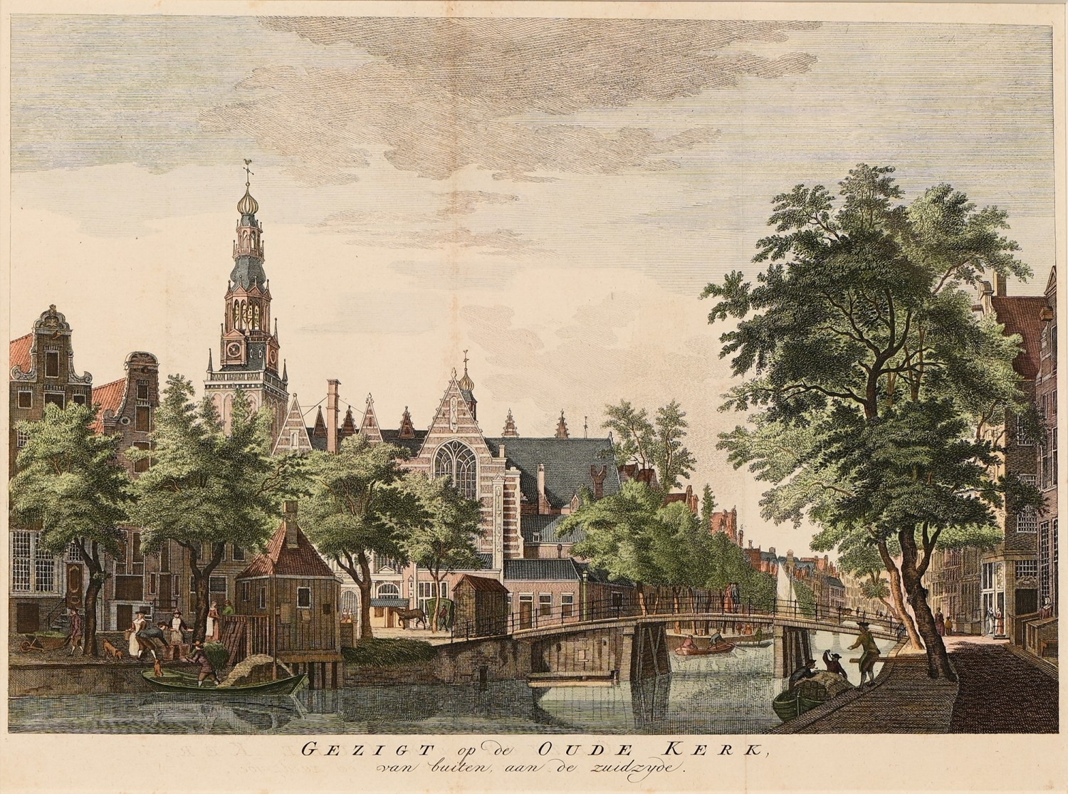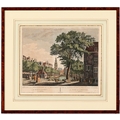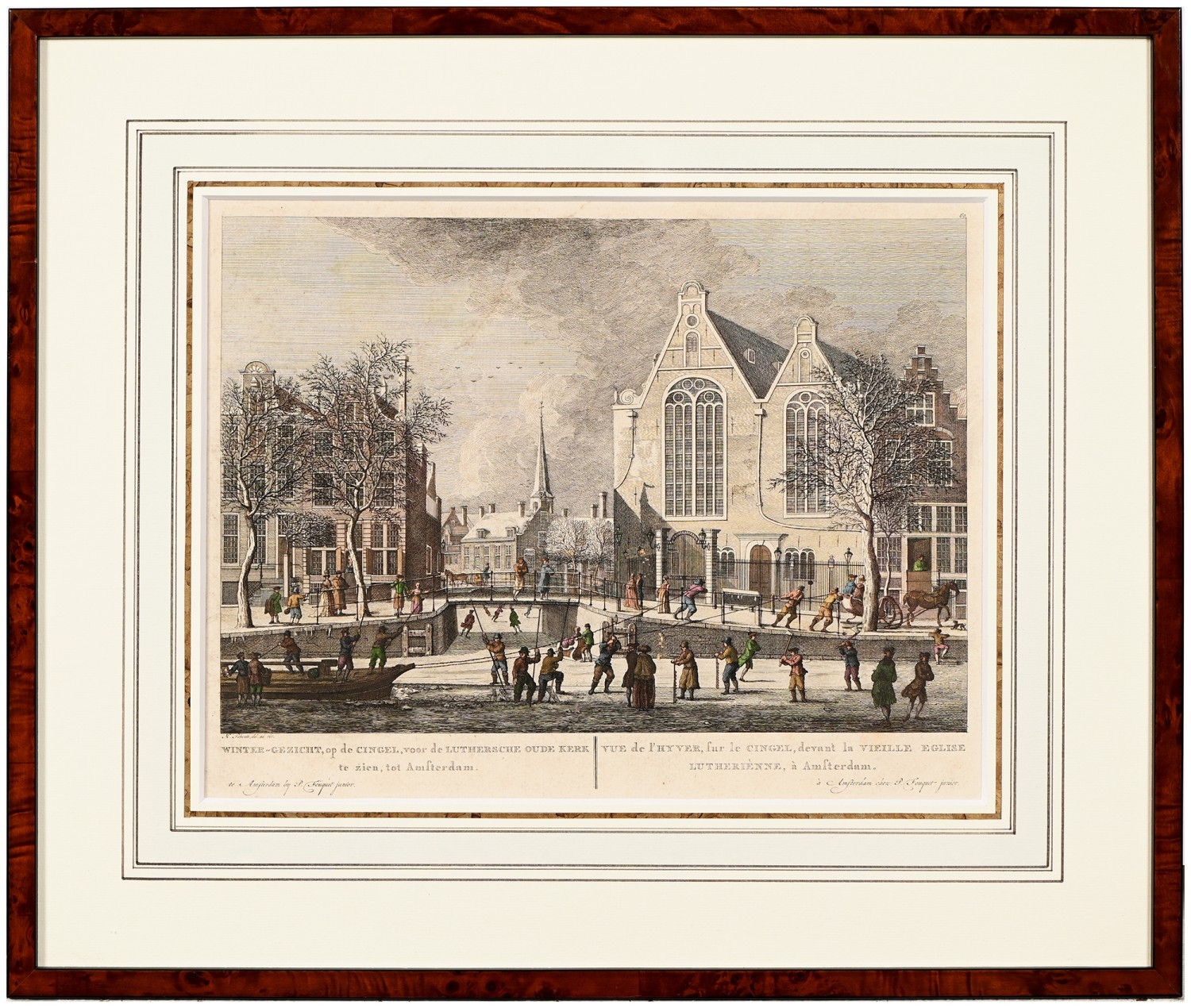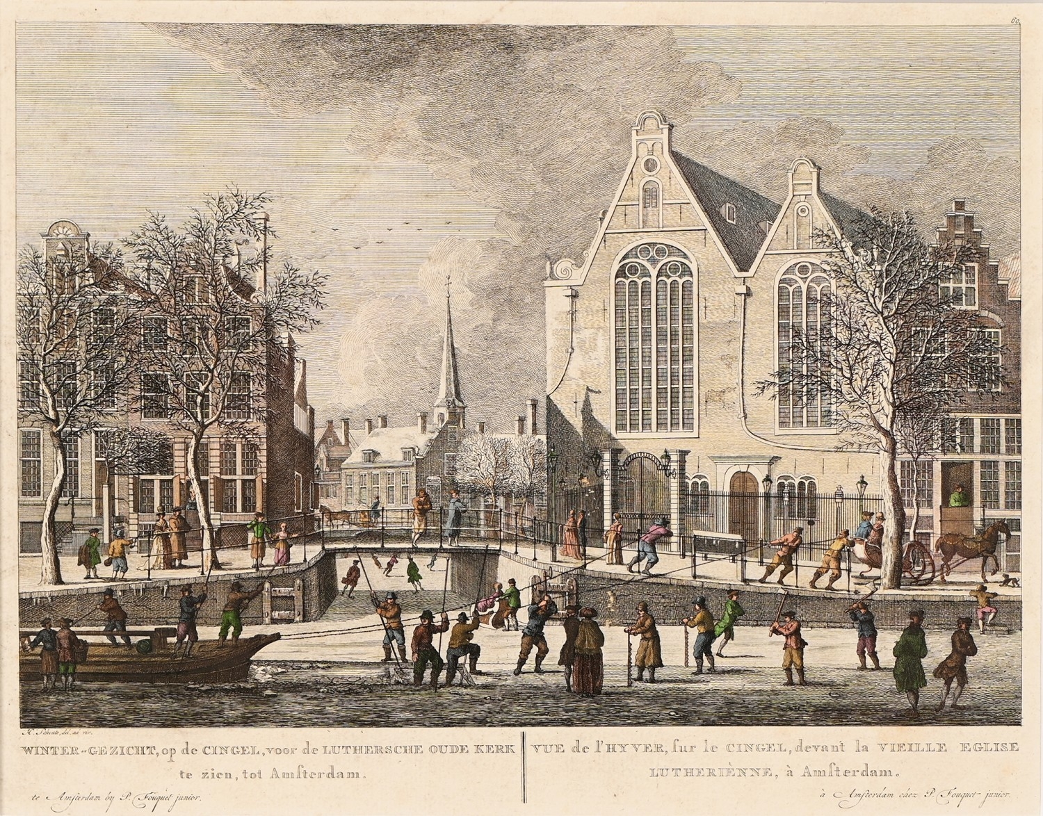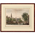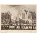 After Hermanus Petrus Schoute (1747-1822) - Amsterdam in Winter; Amsterdam in Spring, two, Amsterdam: Pierre Fouquet Junior, n.d. [c. 1770-1783], engravings, contemporary hand-colouring, 27 x 35cm; another Dutch engraving of Oude Church, Amsterdam, n.d. [18th c], hand-coloured engraving, 28 x 37.5cm, (3)