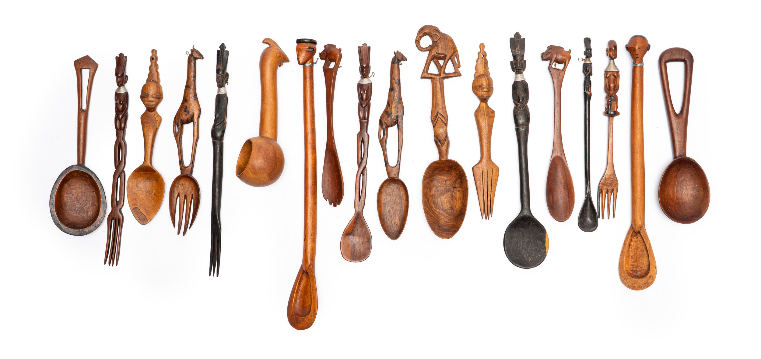 A MISCELLANEOUS COLLECTION OF FRUITWOOD NORTH AFRICAN SPOONS AND FORKS