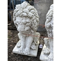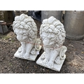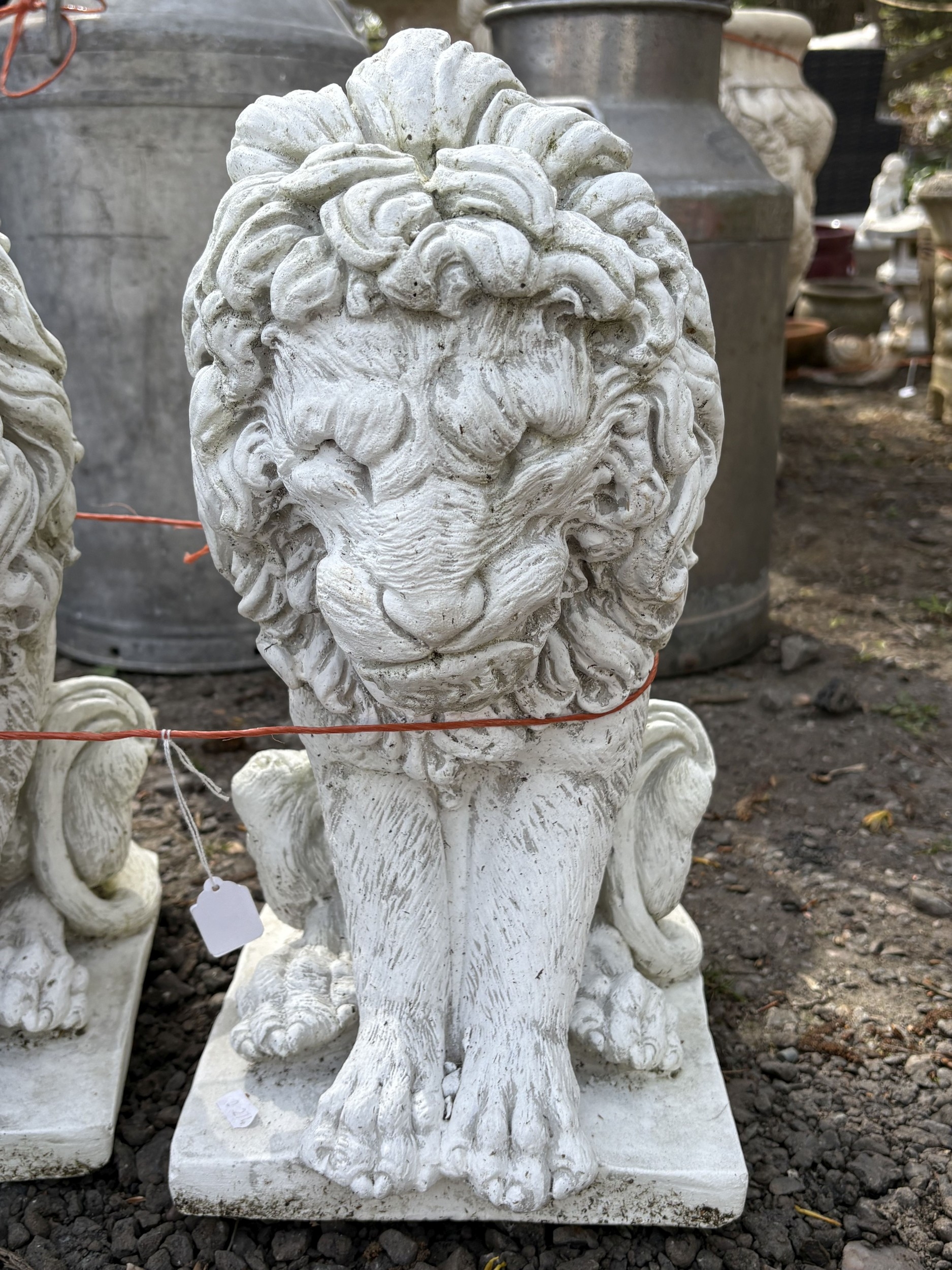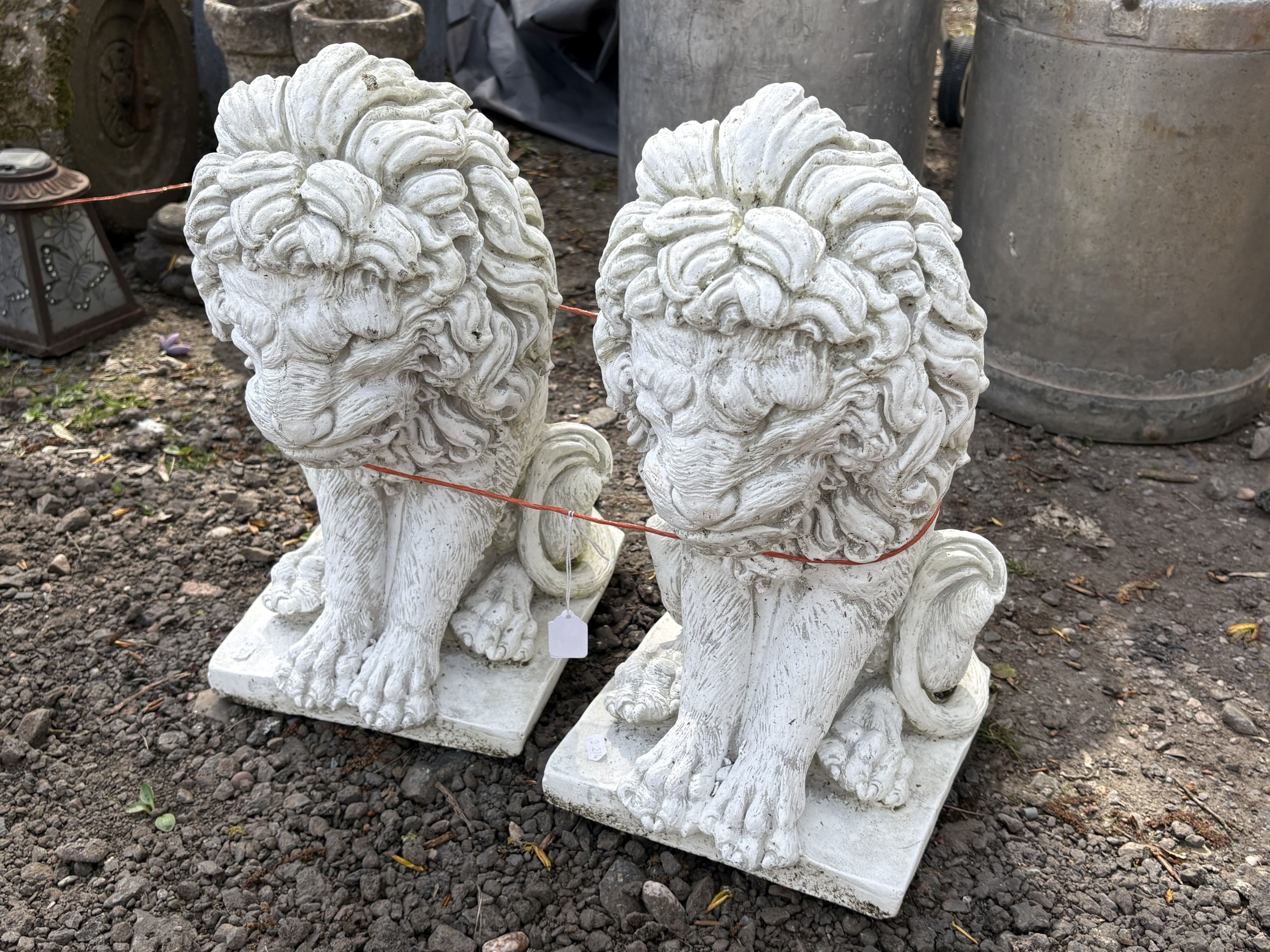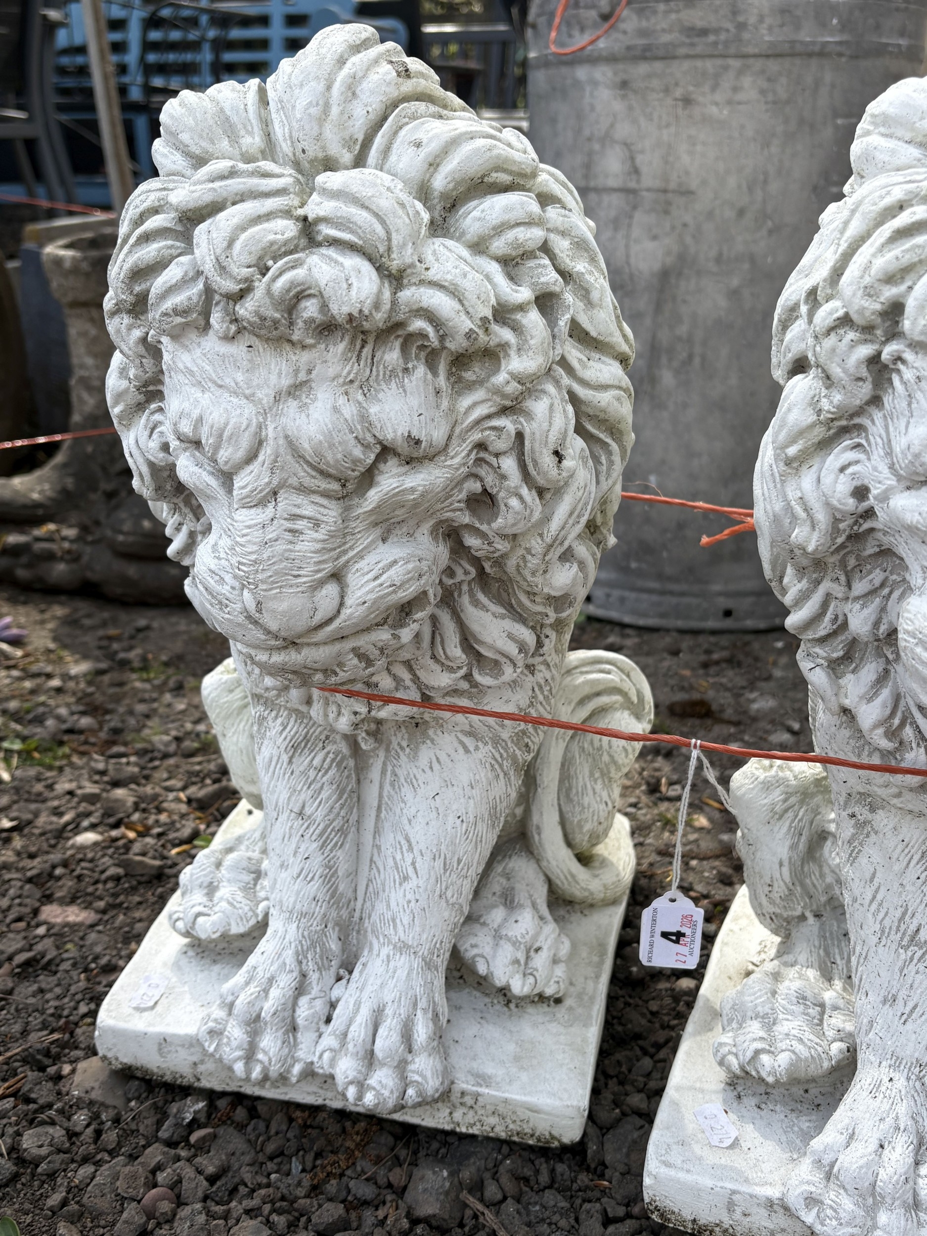 A PAIR OF WHITE PAINTED CONCRETE GARDEN FIGURES, of seated lions, height 43cm, condition report: no obvious chips or damage