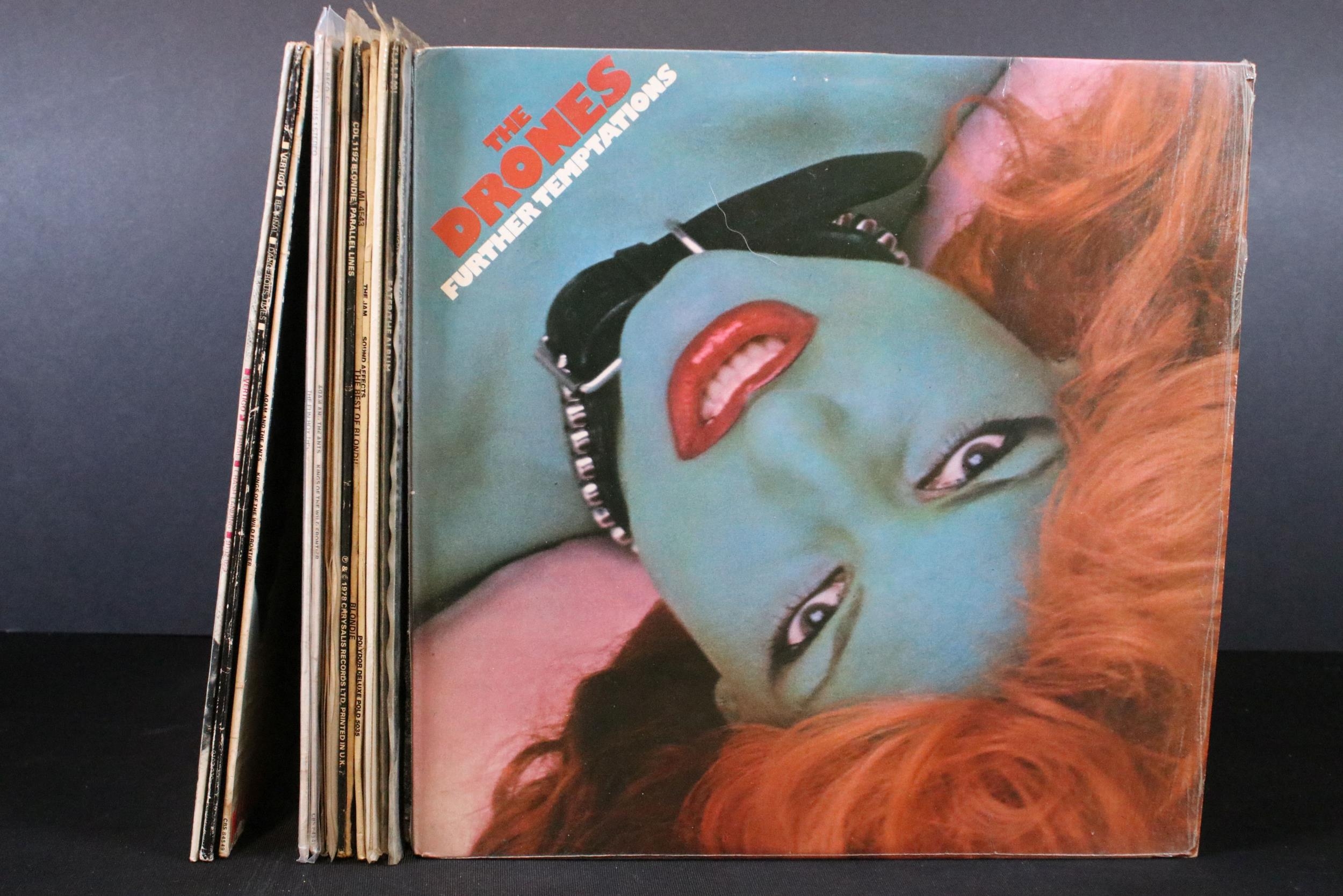 Vinyl - 12 Punk & New Wave LPs and 2 12" to include The Drones (in open shrink), The Heartbreakers, Eater, Pork Dukes (pink vinyl), The Jam, Blondie x 2, Pork Dukes (12"), Eater (white vinyl 12") and others. Vg overall