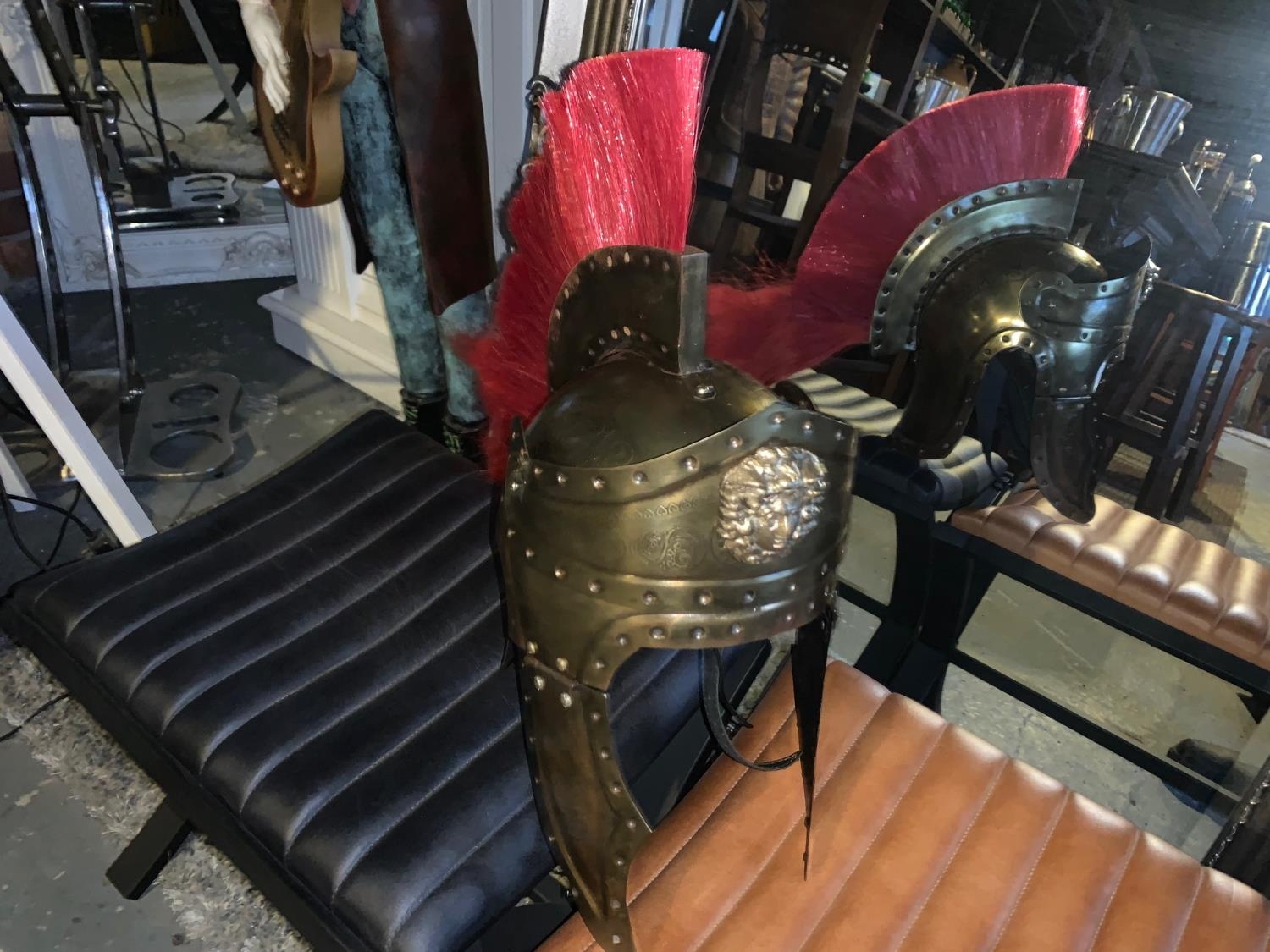 NEW BOXED HEAVILY DETAILED BRASS GREEK RED SPARTAN HELMET