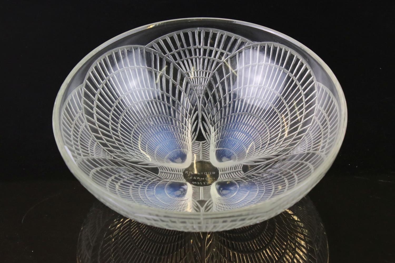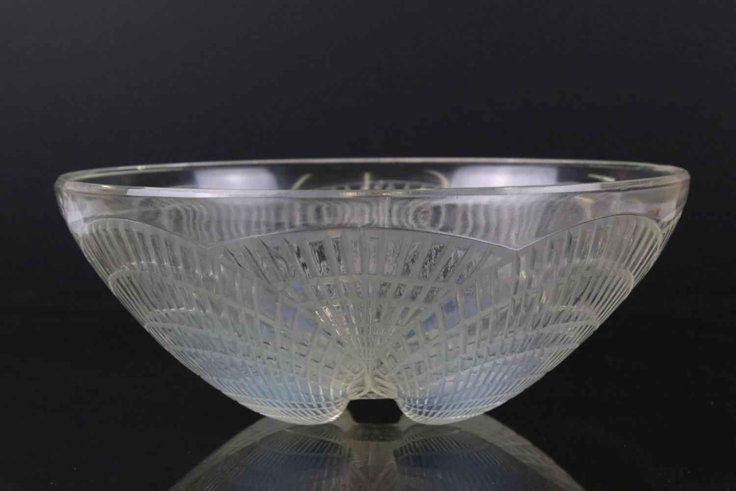 Rene Lalique ' Coquilles ' pattern opalescent glass Bowl, model no. 3200, inscribed R Lalique France to centre of bowl with a number, 24cms diameter