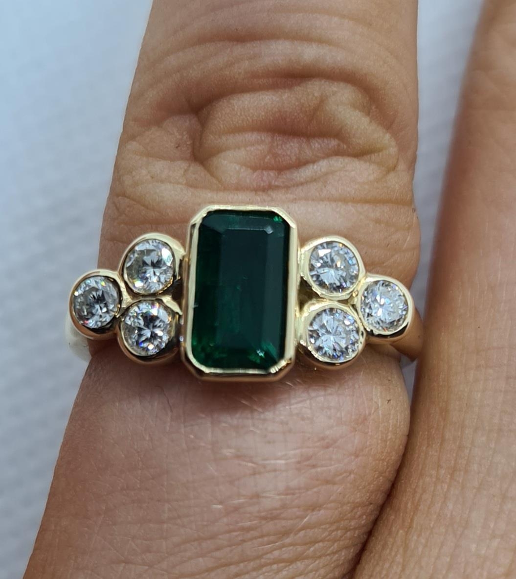 Large Emerald and 6 diamond ring. Stunning ring with bright clear sparkly stones. Very high quality ring.