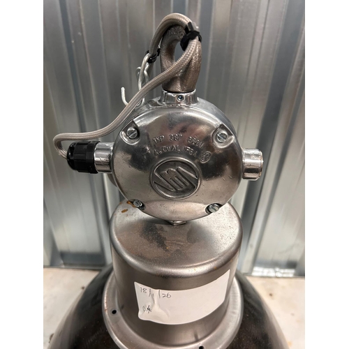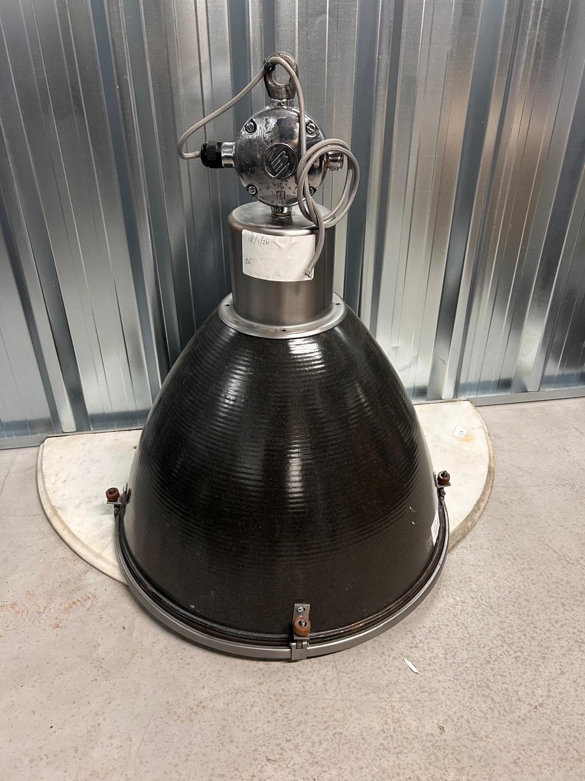 1 Czech Sawmill Pendant Light with original vintage enamel - Industrial Lamps - retail price E400+ A large vintage downlighter reclaimed from communist era industrial buildings across the Czech Republic. These lights were once used extensively across the former Eastern Bloc. though most have now fallen to the wrecking ball. The original vintage enamel has been toughened with glass diffuser.