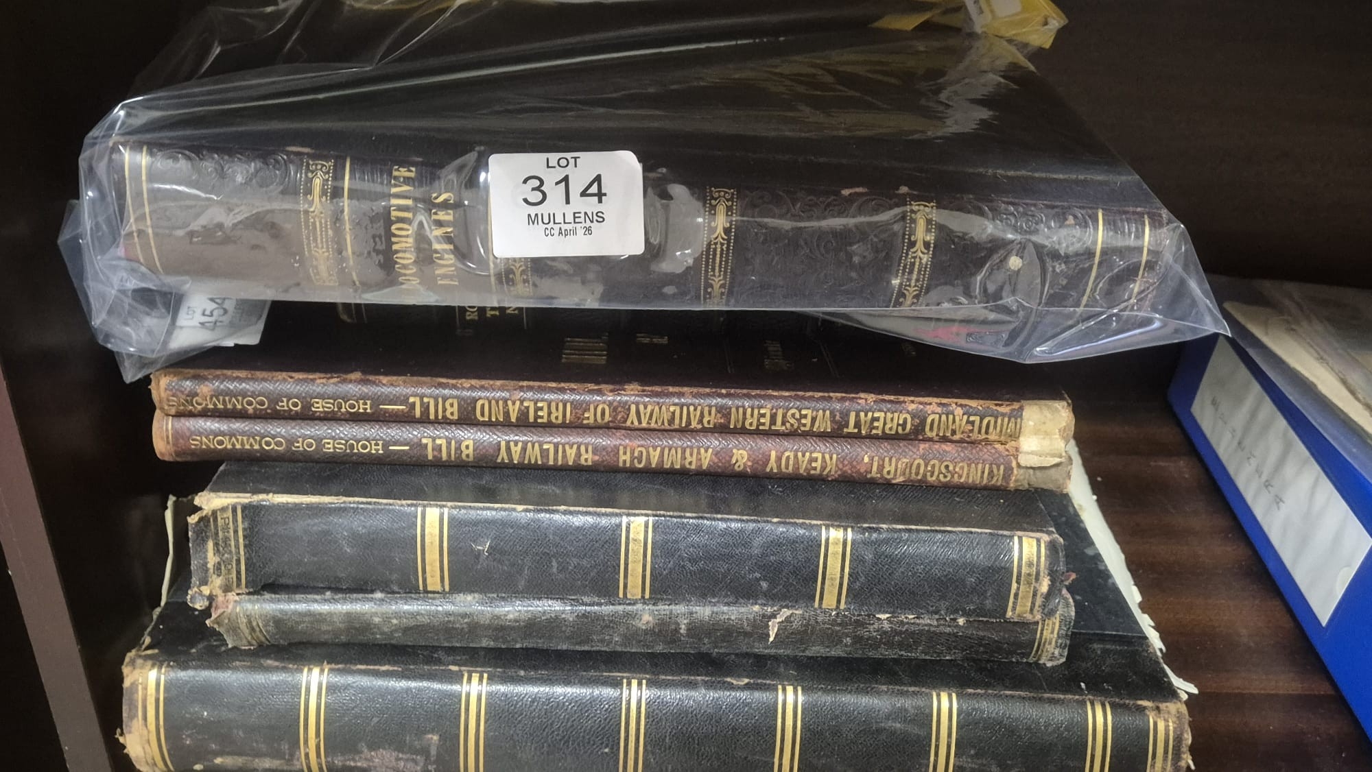 RAILWAY: A BOUND VOLUME OF PAPERS RELATING TO LOCOMOTIVE ENGINES, etc. the first titled A Complete Set of Rules and Regulations for the Practical Management of a Locomotive Engine and for the Guidance of Engine Drives by John Sewell. Published August 1848. Bound with a collection of others. Also included are six antique leather bound volumes of railwayana interest