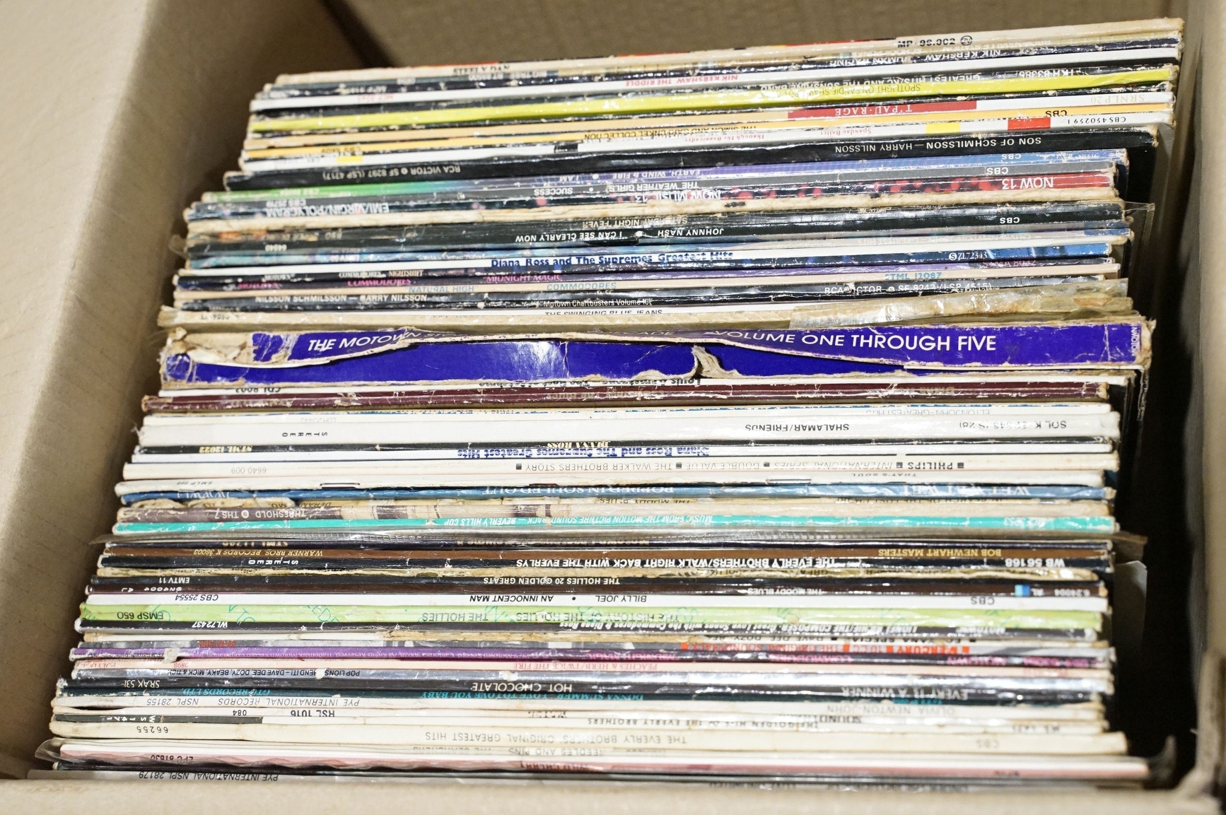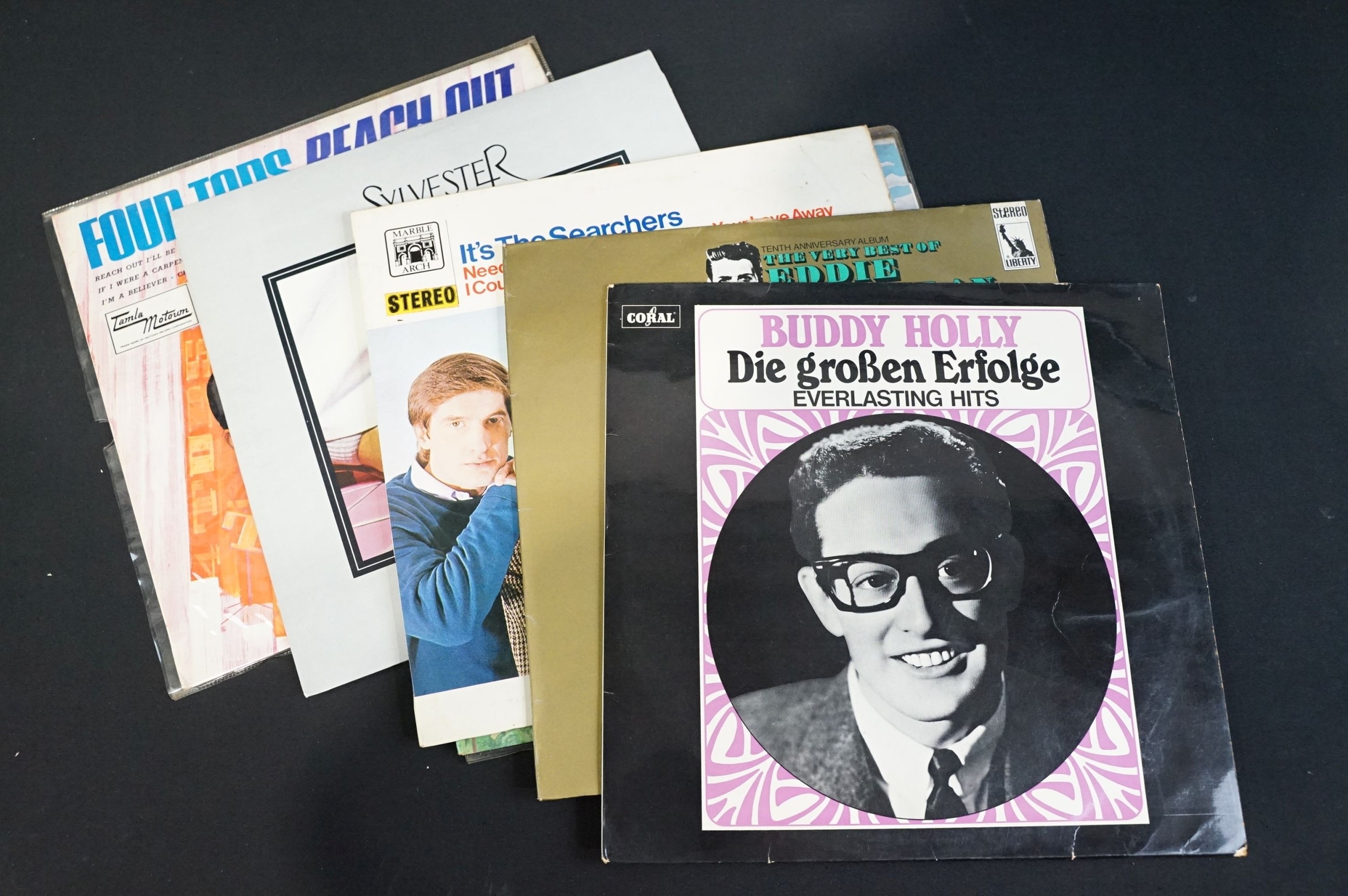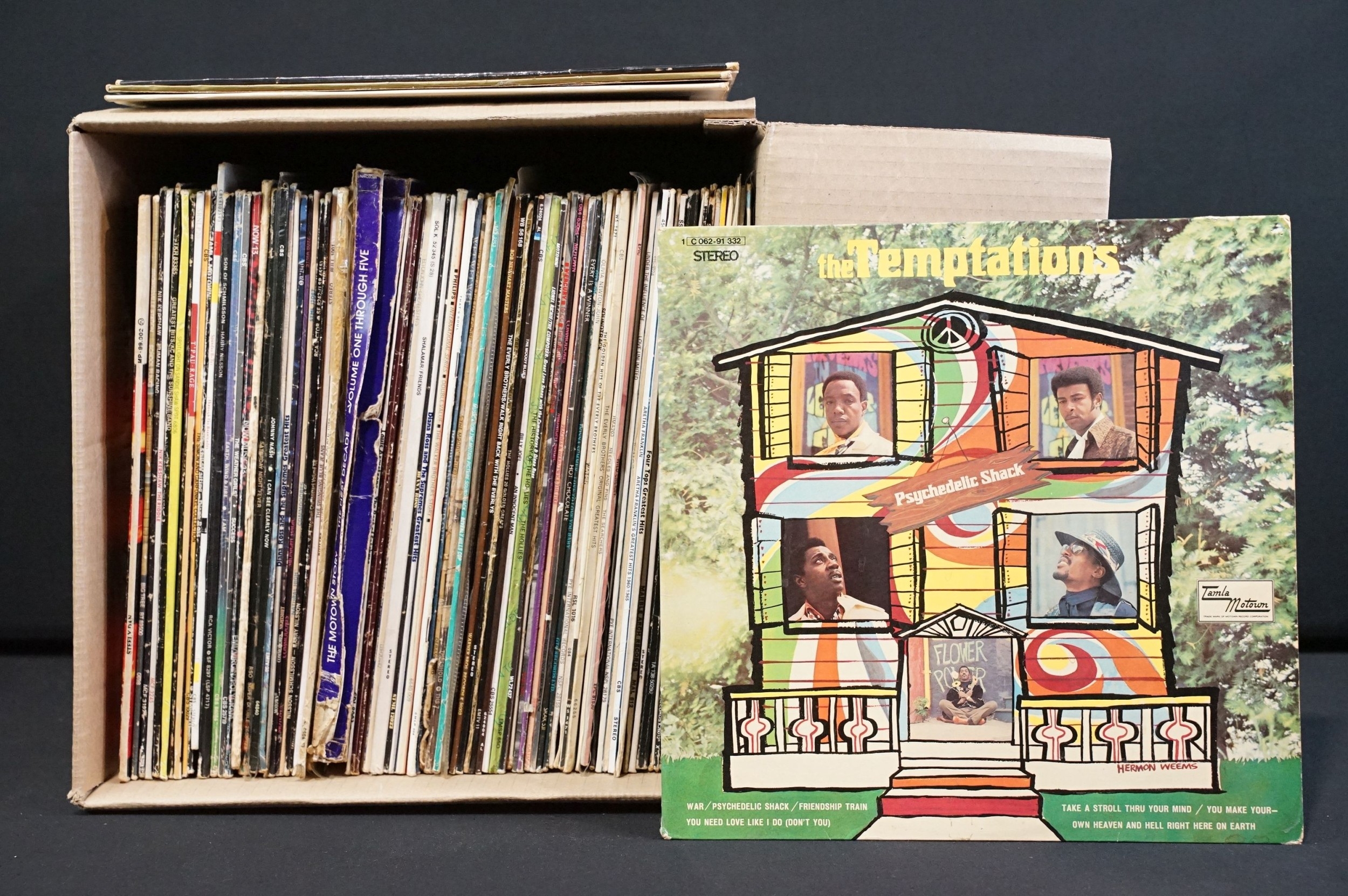 Vinyl - Over 80 Rock & Pop LPs to include The Temptations, Buddy Holly, Eddie Cochran, The Supremes, Genesis, Love Unlimited, The Hollies, The Moody Blues, The MGs, Aretha Frankin, The Four Tops, The Kinks, Dave Edmunds, The Animals, Manfred Mann, The Association, Jimmy James & The Vagabonds, Bruce Springsteen, Jr Walker & The All Stars, Steely Dan, Sylvester, Dusty Springfield, Motown Story box set and more. Vg overall
