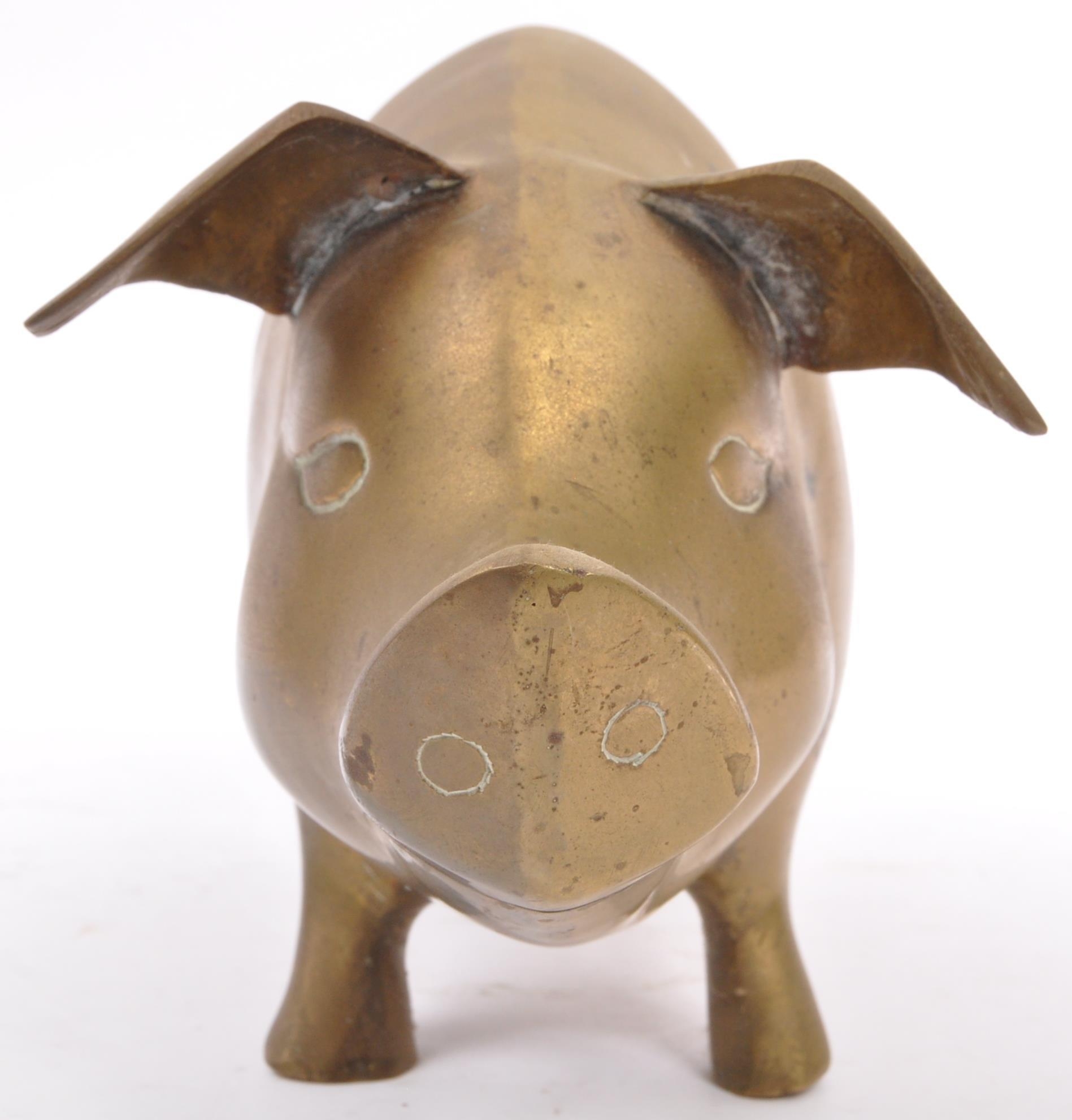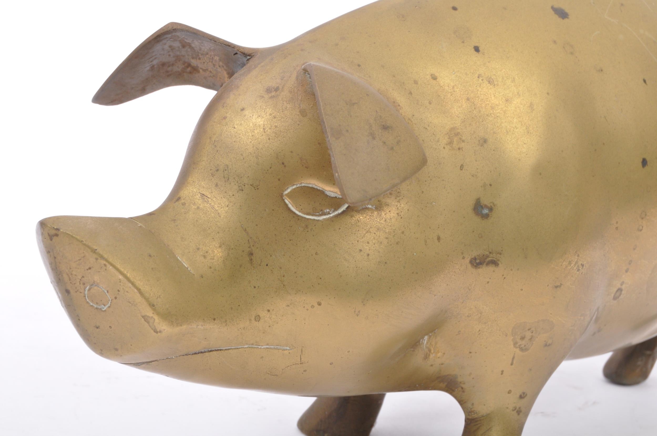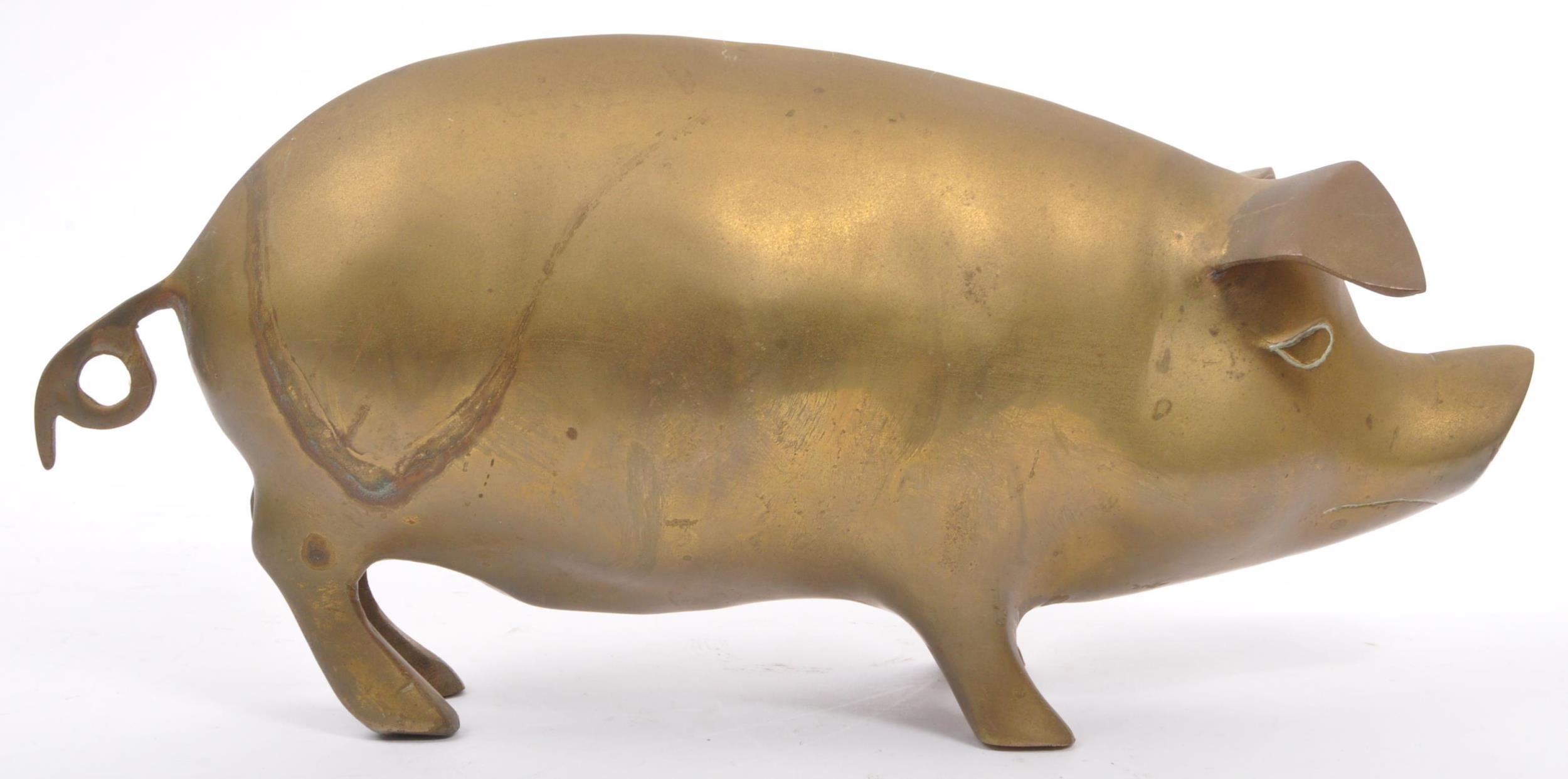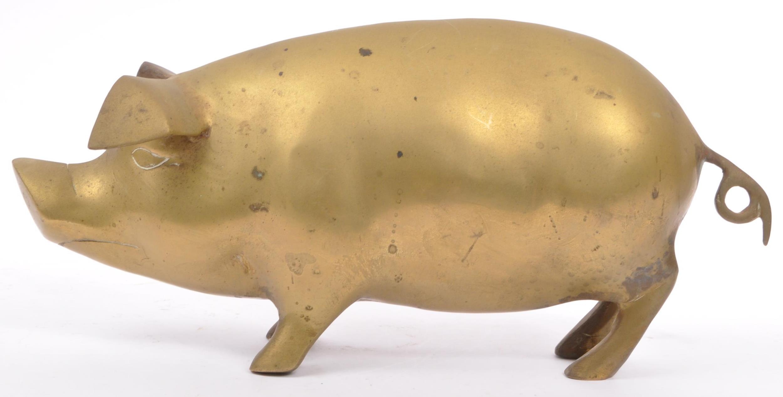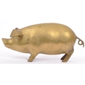 An early 20th Century 1930s large brass figure in the form of a pig with stylised features, standing with upturned snout. Measuring approx. 33cm x 16cm.