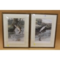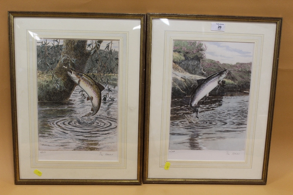 TIM HAVERS - A PAIR OF FRAMED AND GLAZED SIGNED LIMITED EDITION PRINTS OF TROUT 48/250 - OVERALL SIZE 37.5CM X 49.5CM