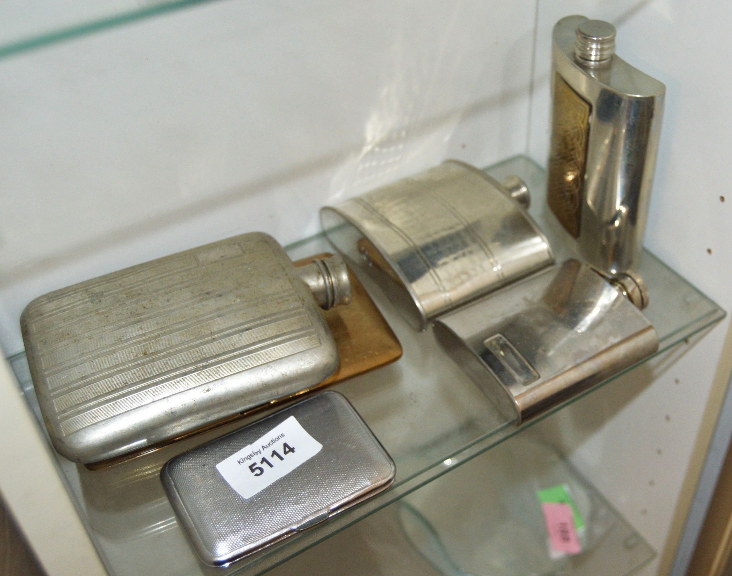 Four x Vintage Hip Flasks Plus Gold Tone Cigarette Case
