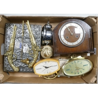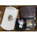 A mixed collection to include:-a large veneered brass finished tray, Brown Crocodile Style Travel/Vanity Case, Wedgwood 'Moss Rose Creamware Dressing table Tray etc(1tray)