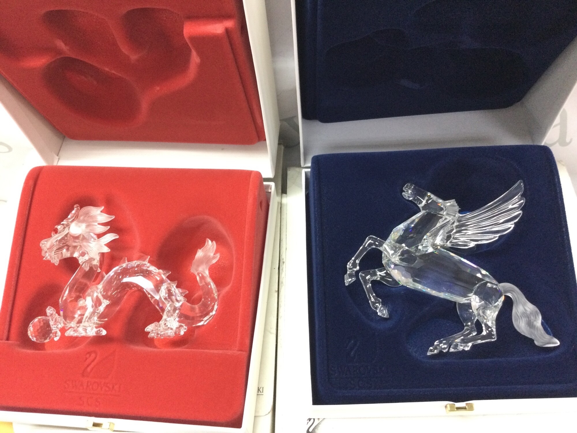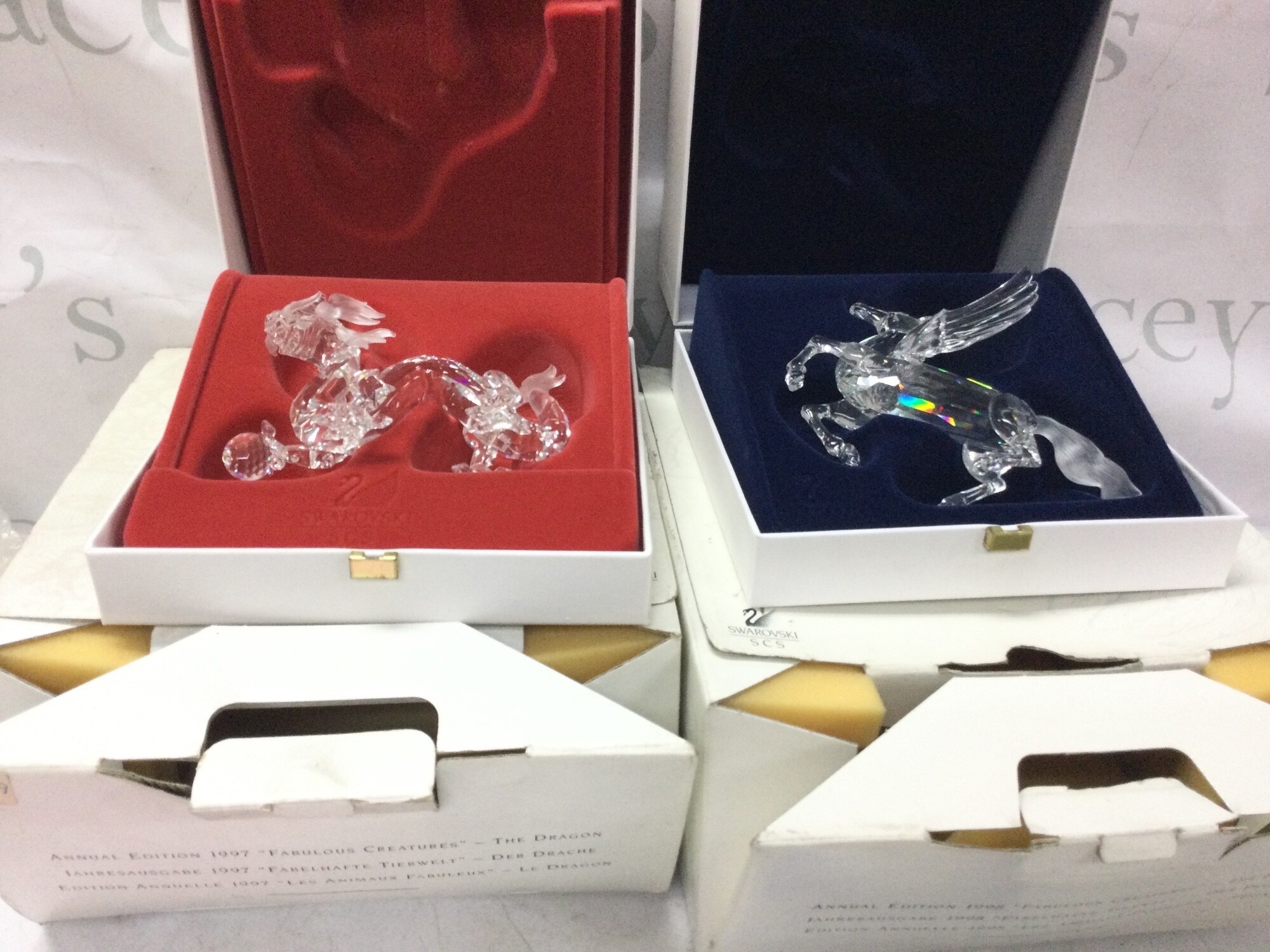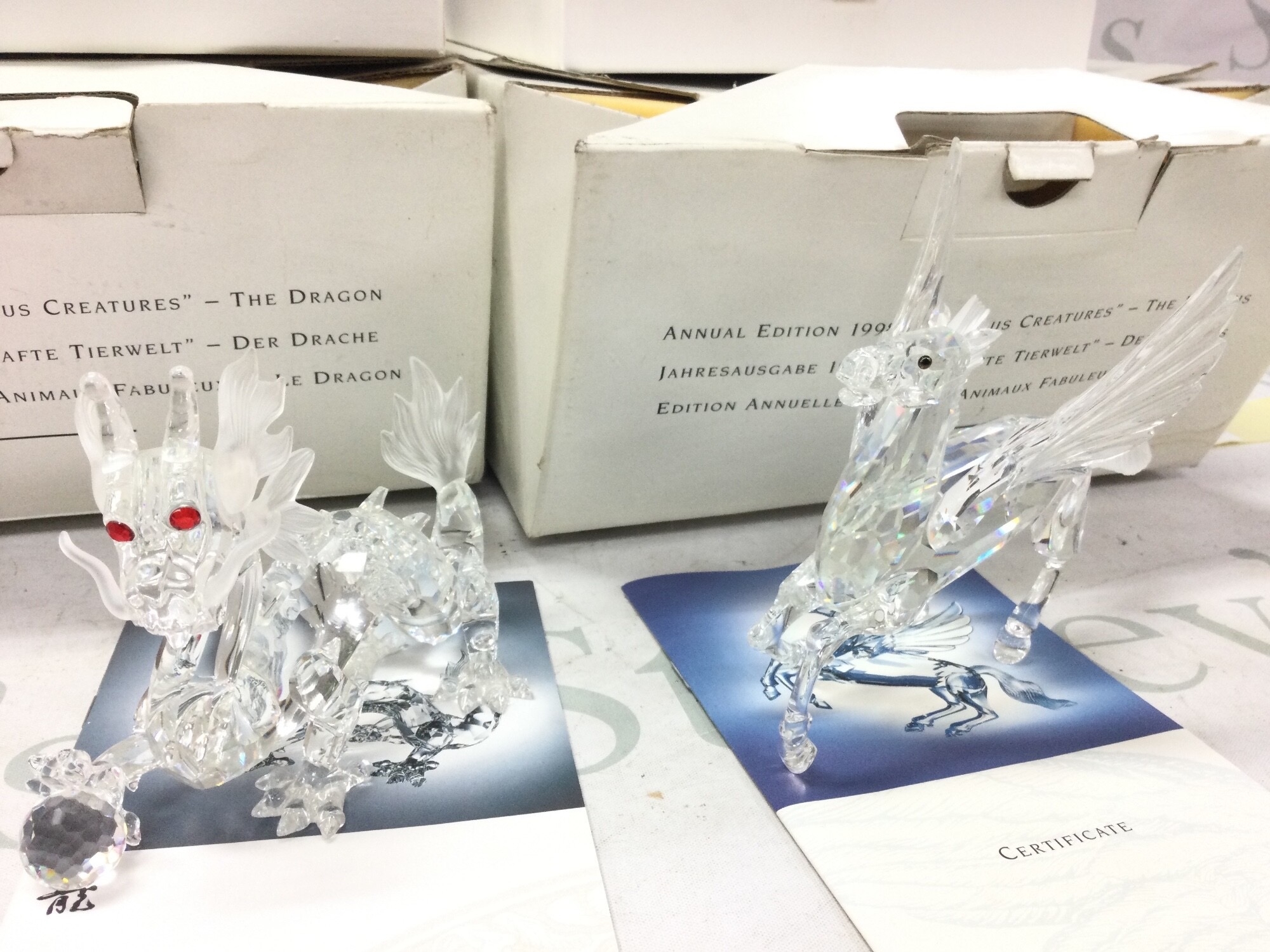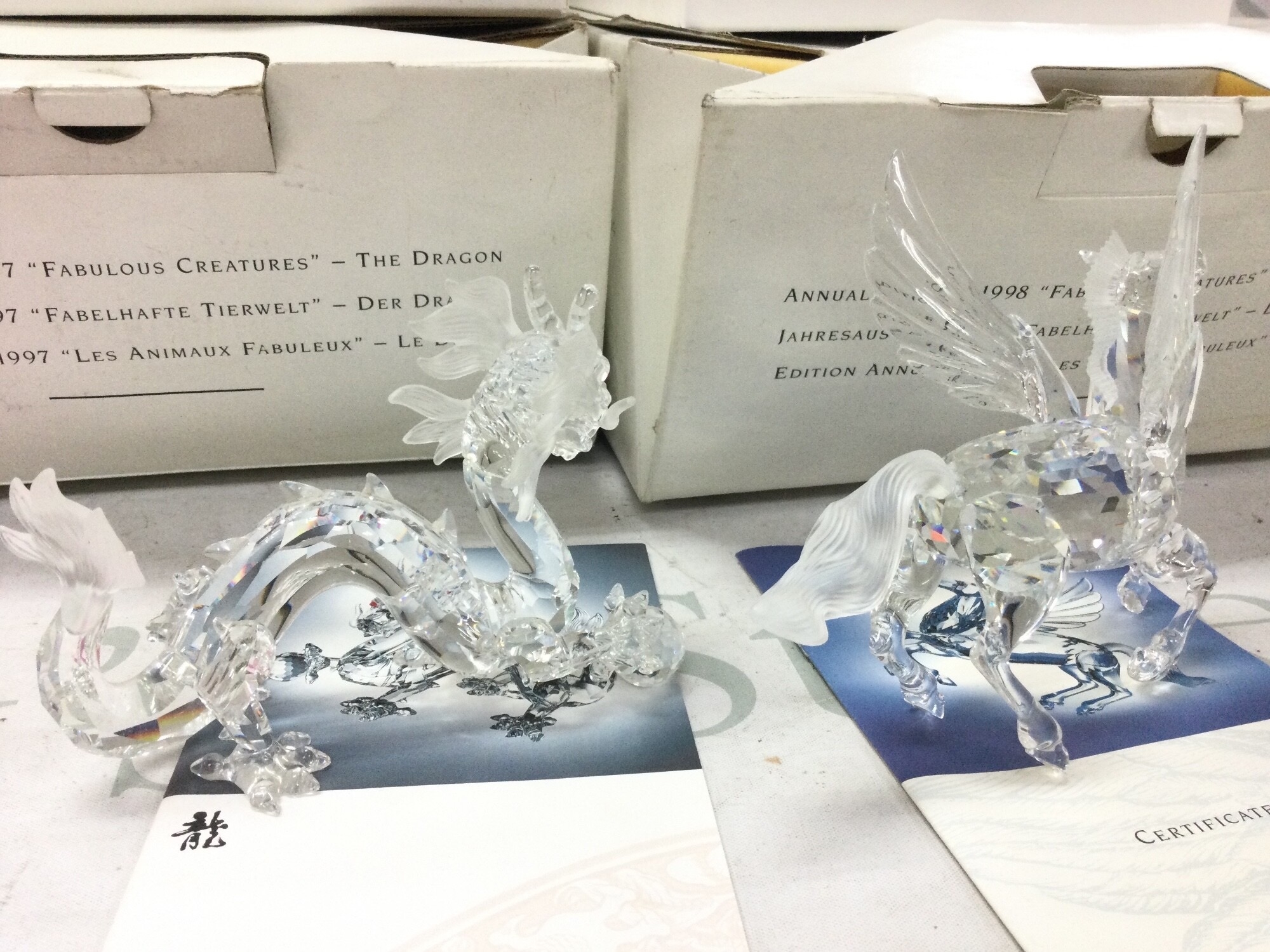 Two boxed Swarovski figures, The Dragon 1997 and Fabulous Creatures The Pegasus 1998. No reserve