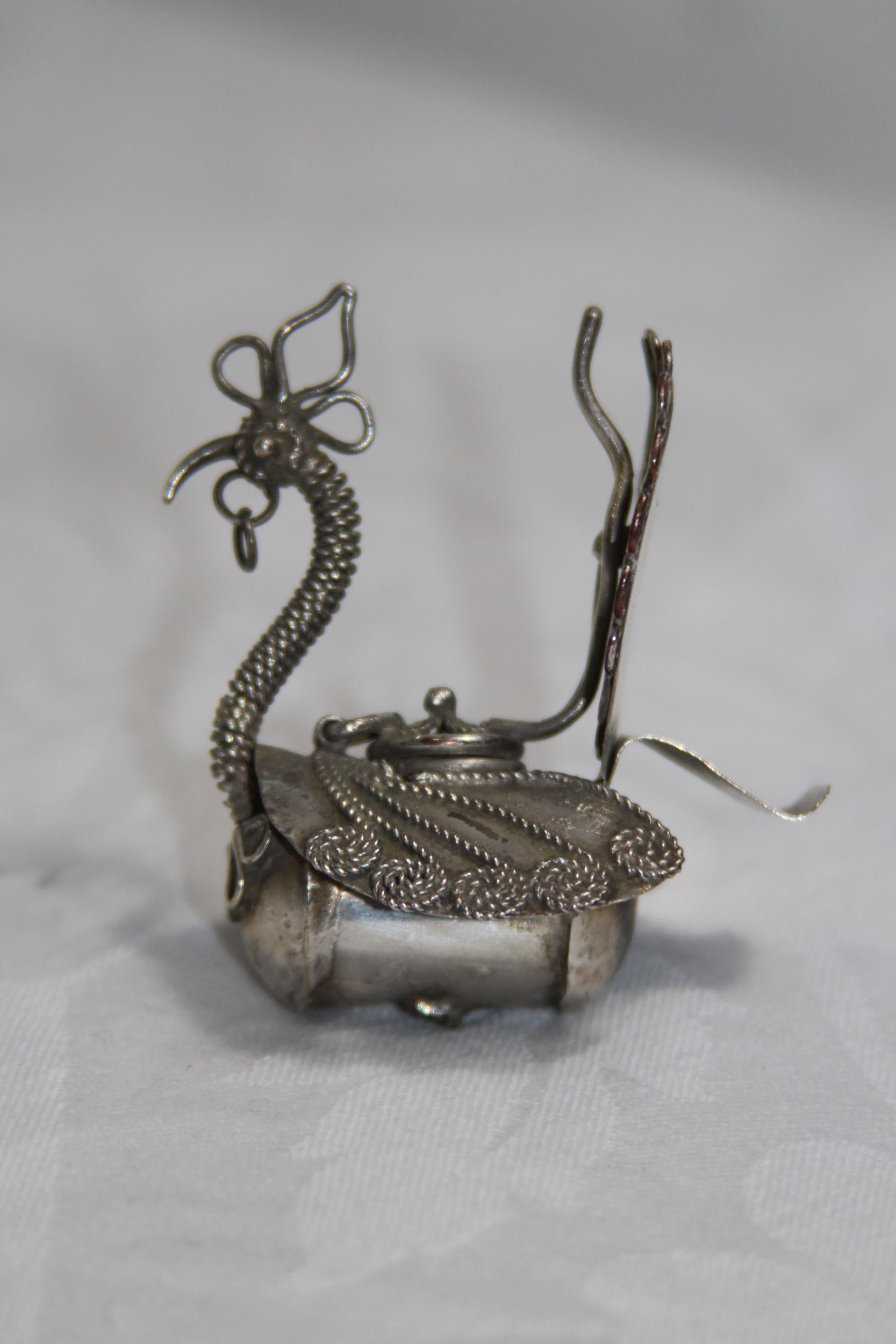 ORIENTAL SILVER BIRD FORM NOVELTY HOLDER, 30 GRAMS