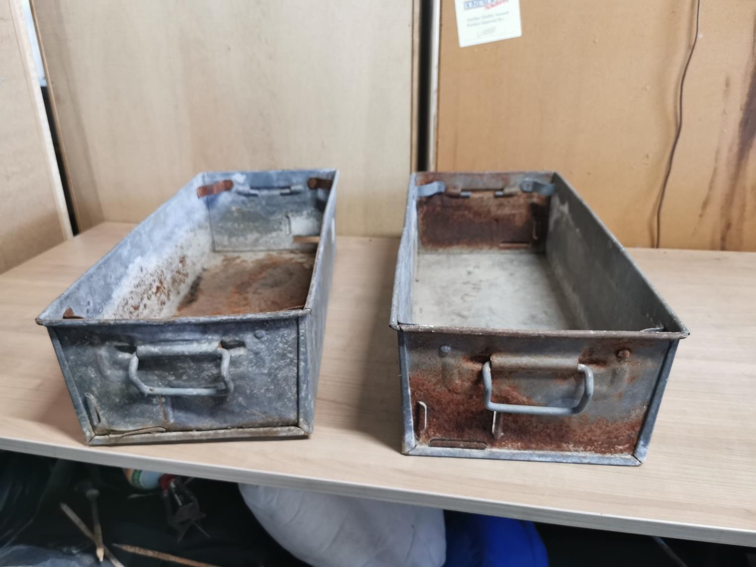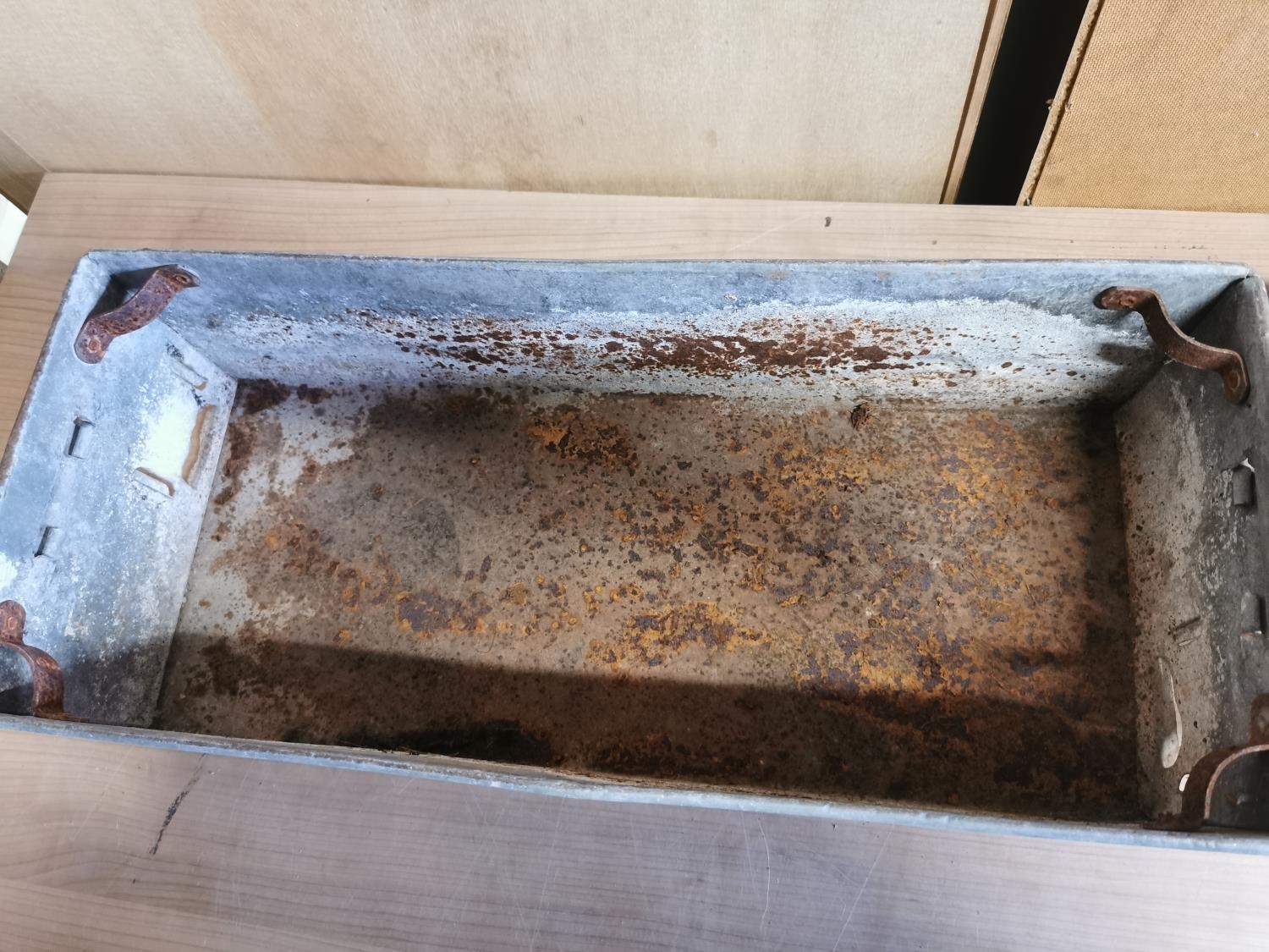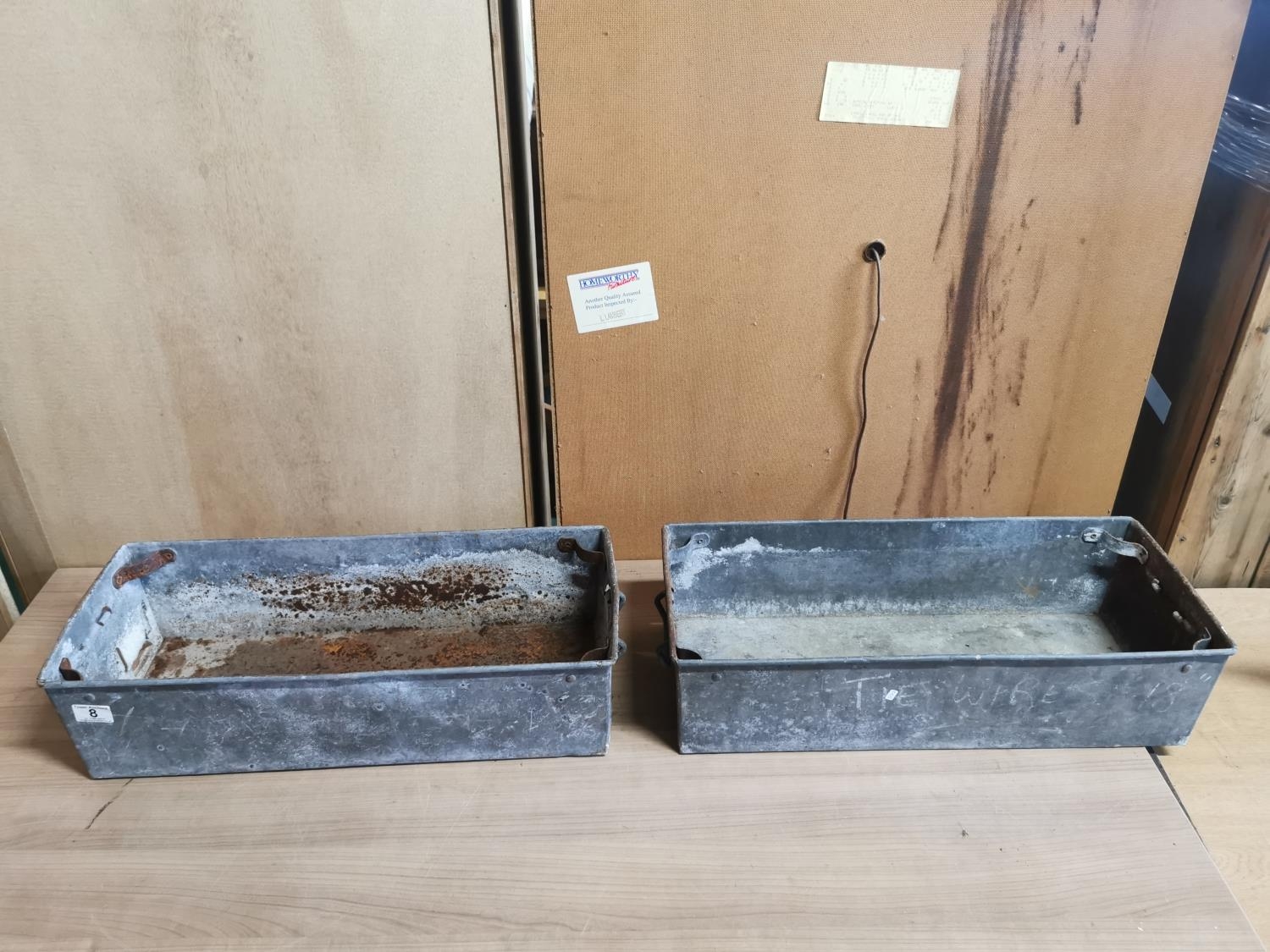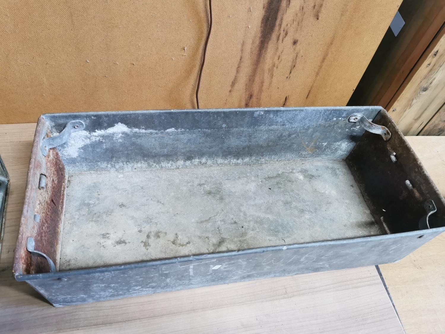Pair of galvanised troughs length of 56cm height of 16cm depth of 26cm