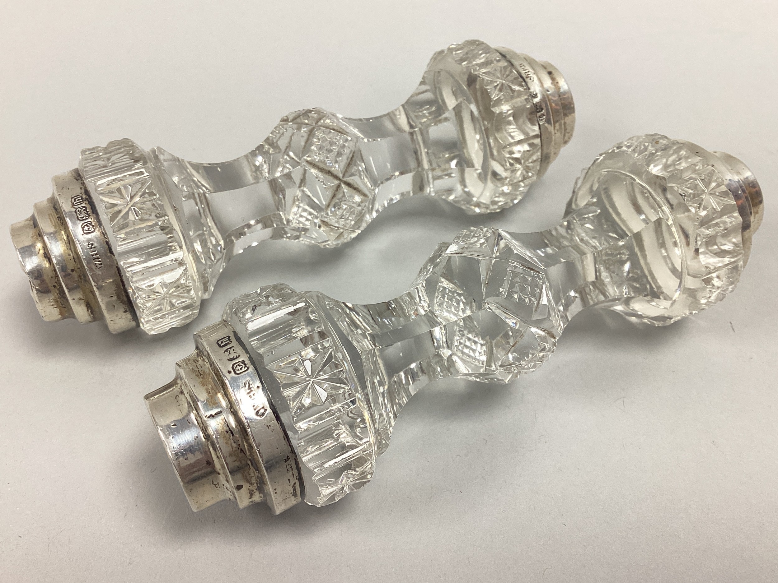 A Pair of Edwardian Hallmarked Silver Mounted Cut Glass Knife Rests, WHS, Birmingham 1907, 11.6cm long. (2)