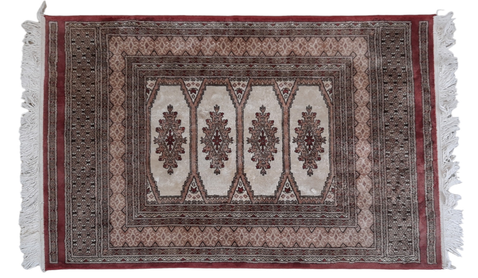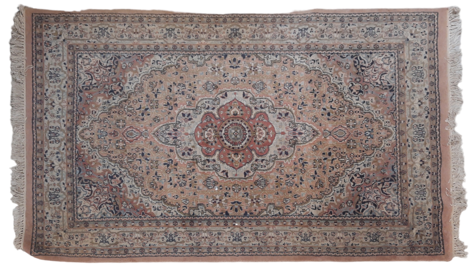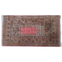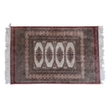 TWO SMALL PERSIAN RUGS. mid to late 20th century, one having a cream ground set with a central main gul, the largest 190cm by 122cm.