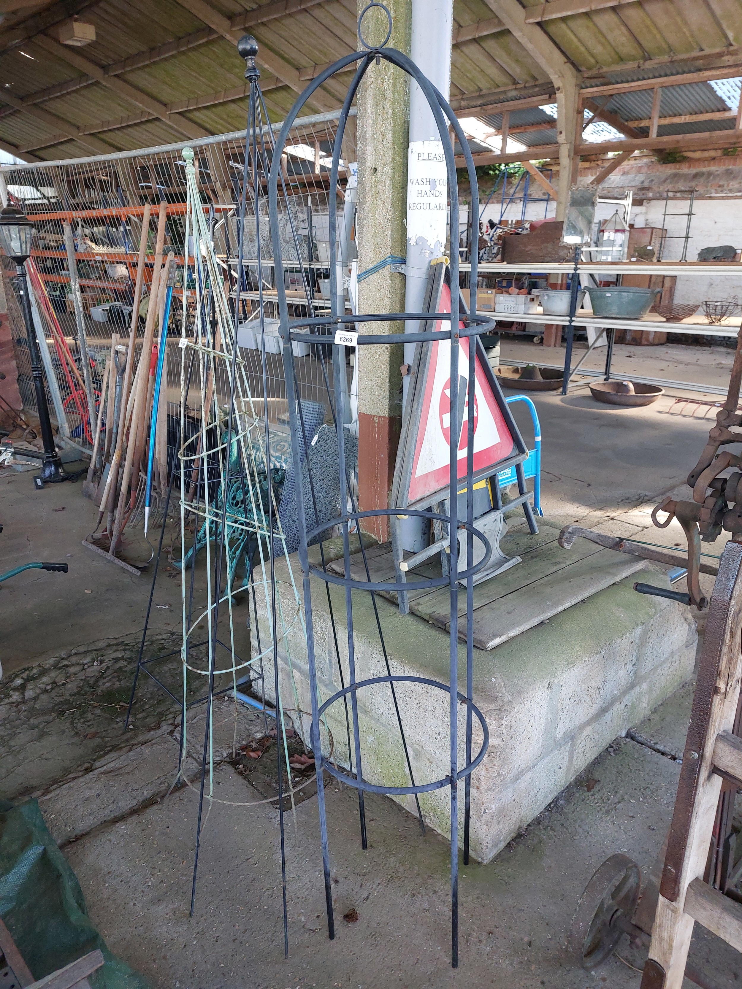 A black painted metal obelisk.