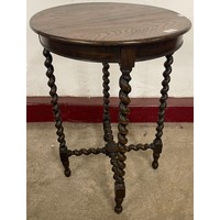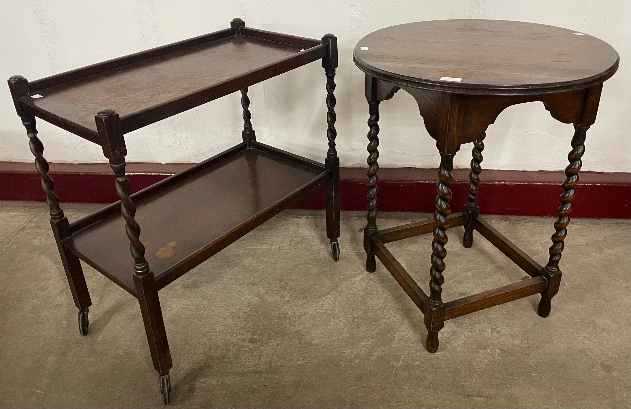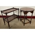 An early 20th Century oak barleytwist trolley and an occasional table