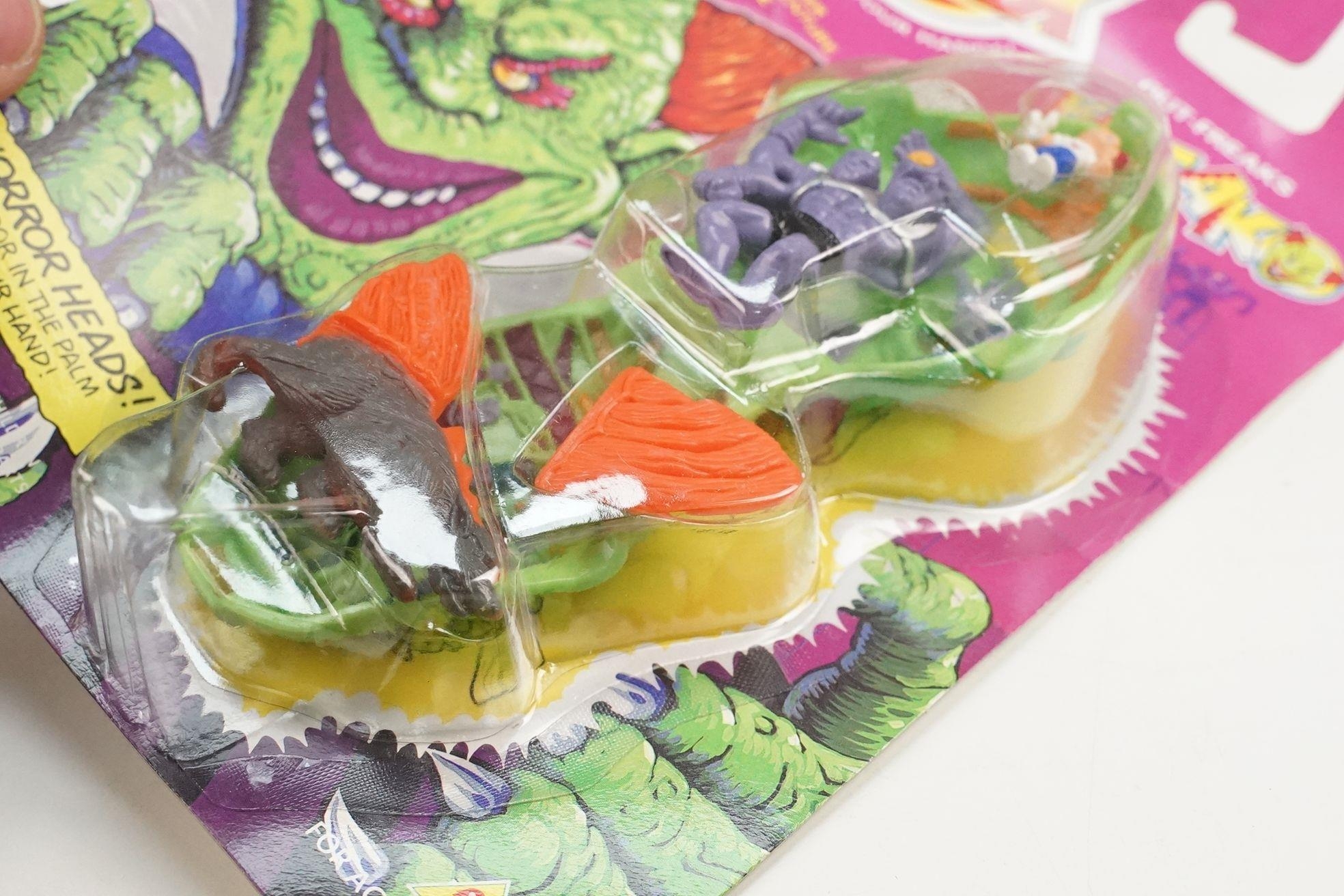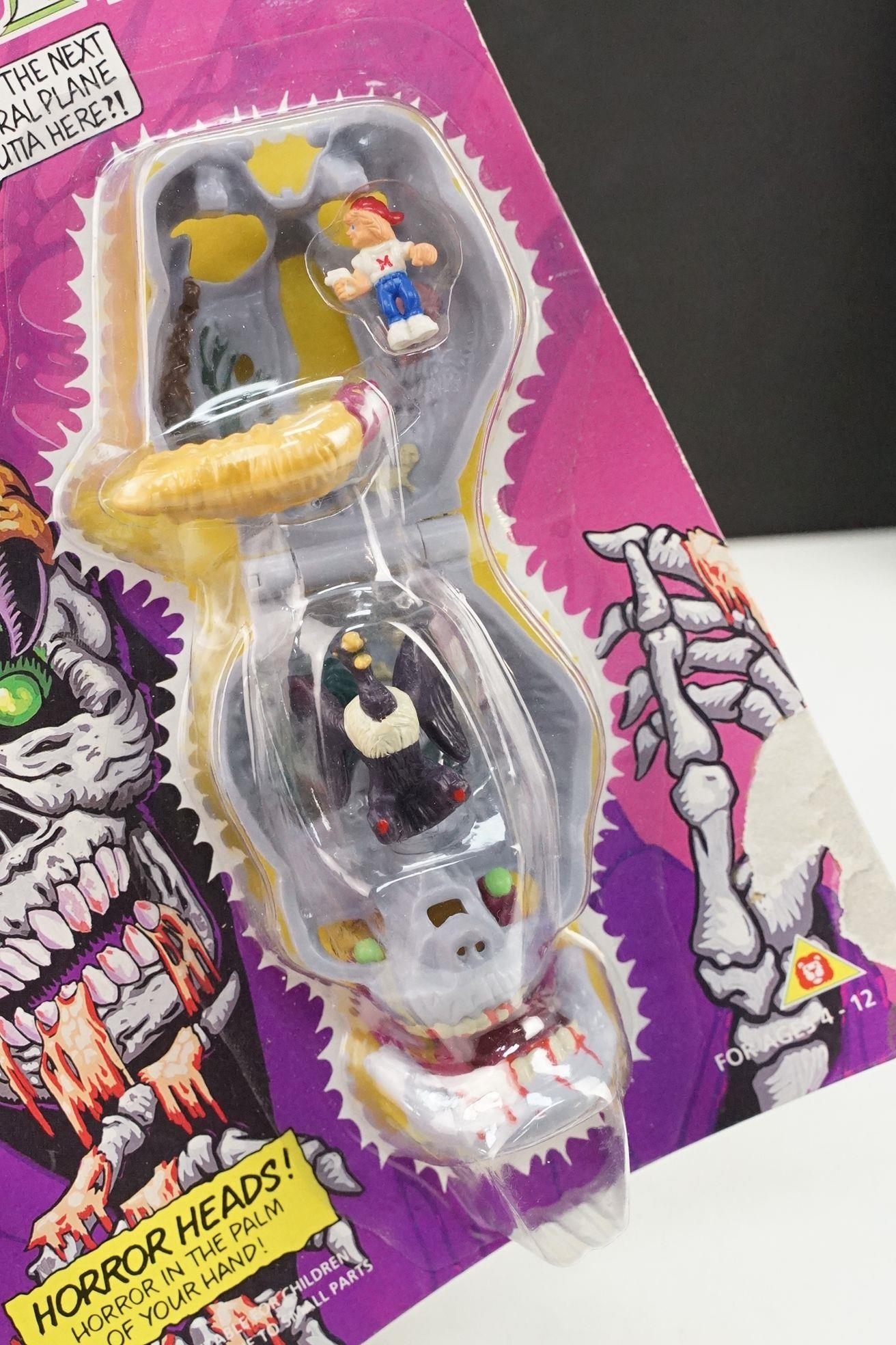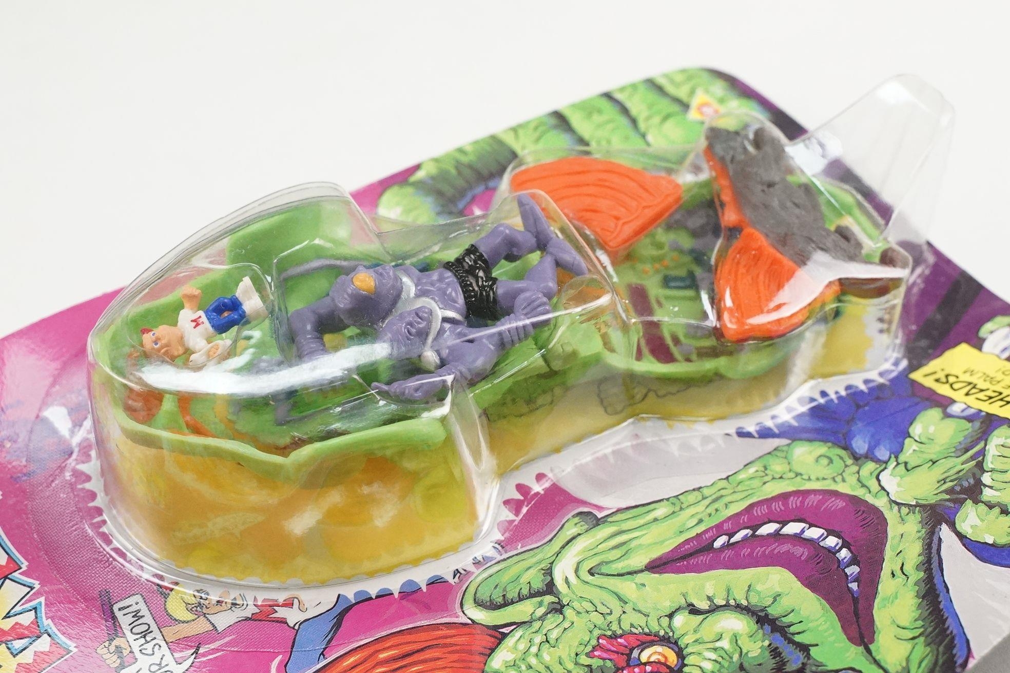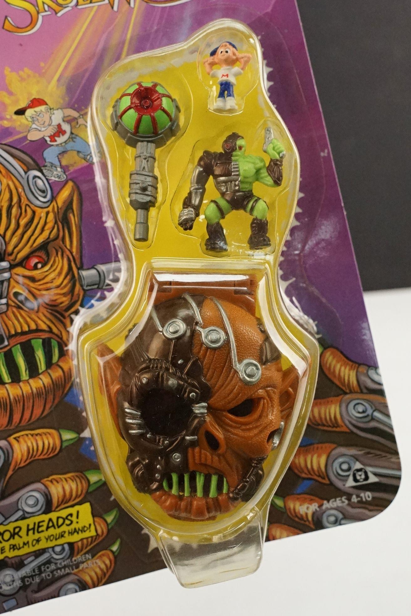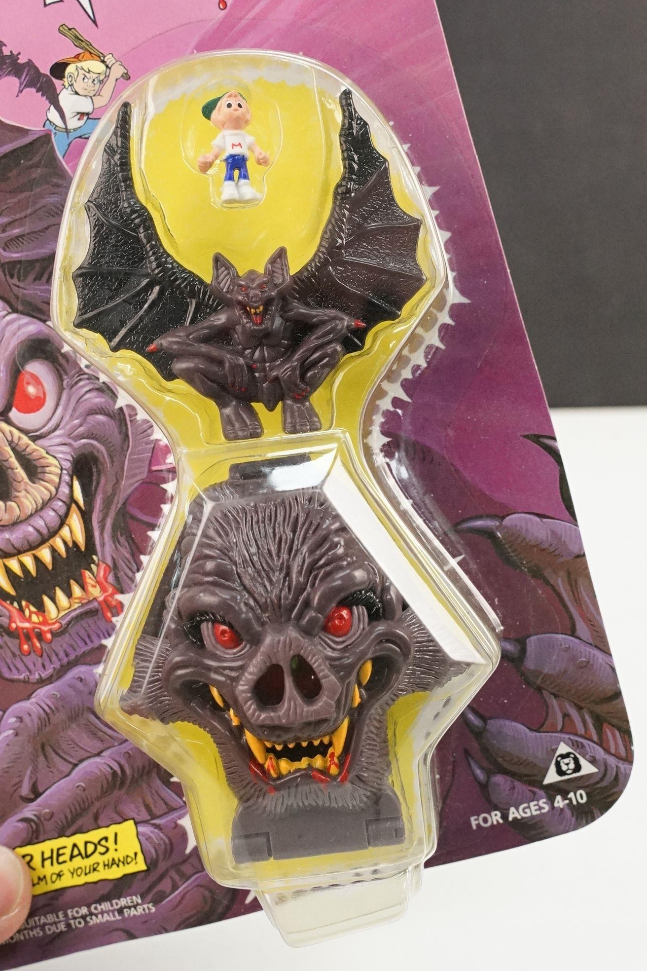 Four carded Bluebird Mighty Max play sets to include Defeats Nightwing, Out-freaks Freaks (card bend), Crushes Talon (some card bend and loss to graphics to lower card corner) and Battles Skull Warrior, all unopened, vg unless where stated