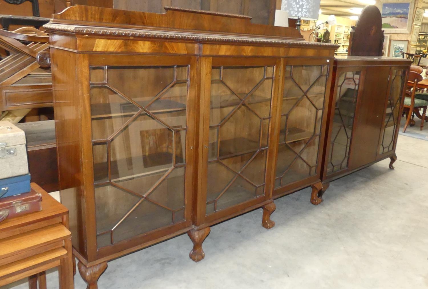 Mahogany Ball & Claw Foot Breakfront Bookcase