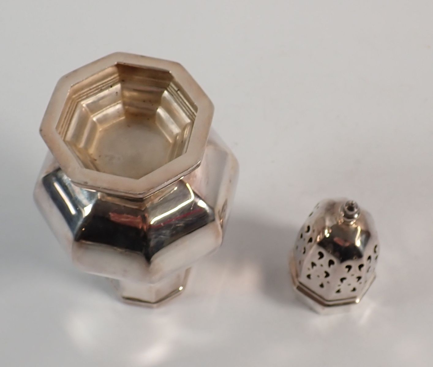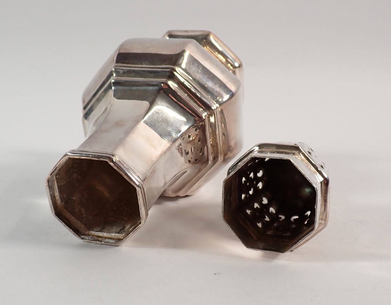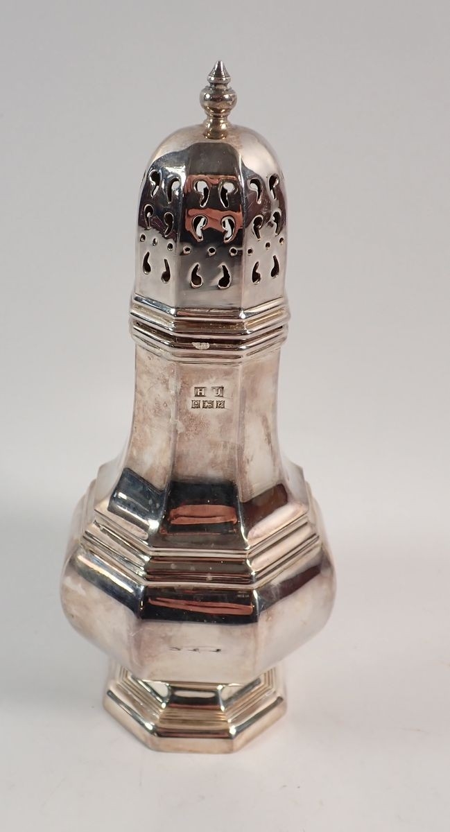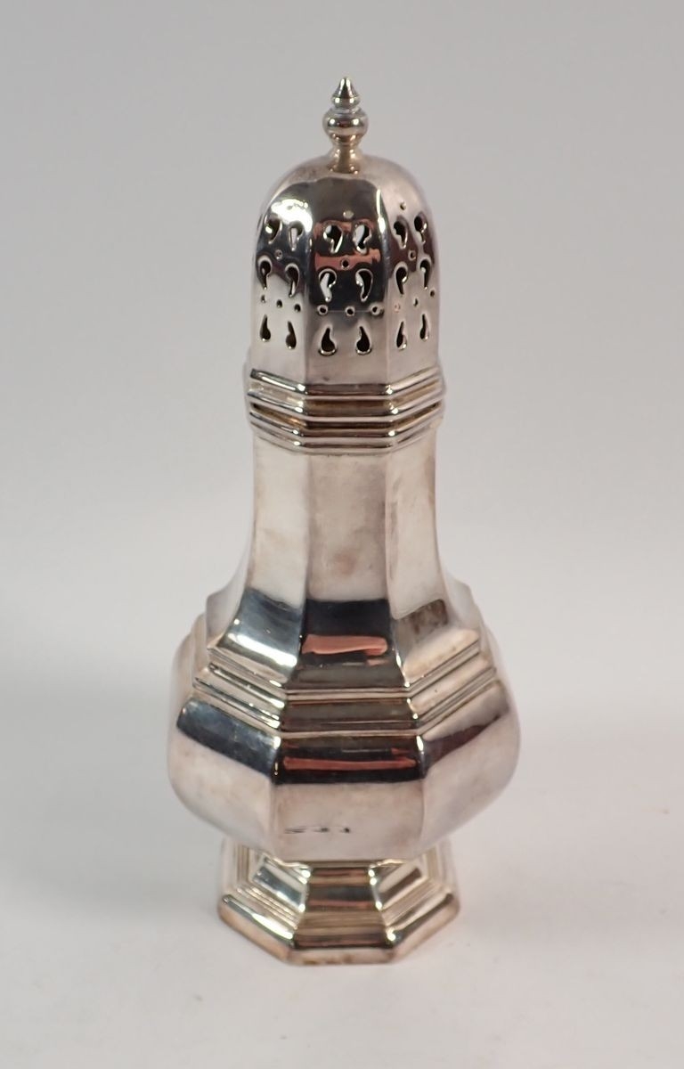 A silver sugar caster by Hampton Utilities, Birmingham 1963, 17cm tall, 155g