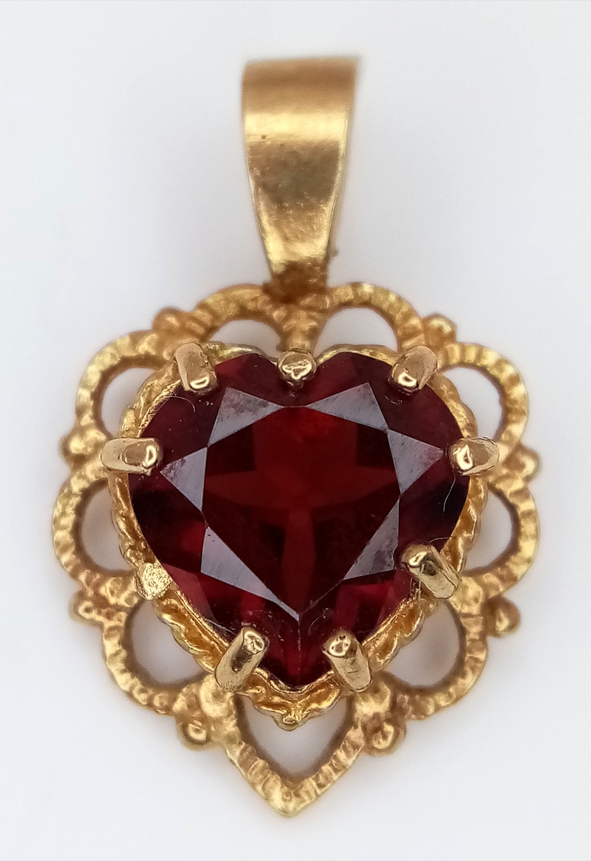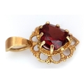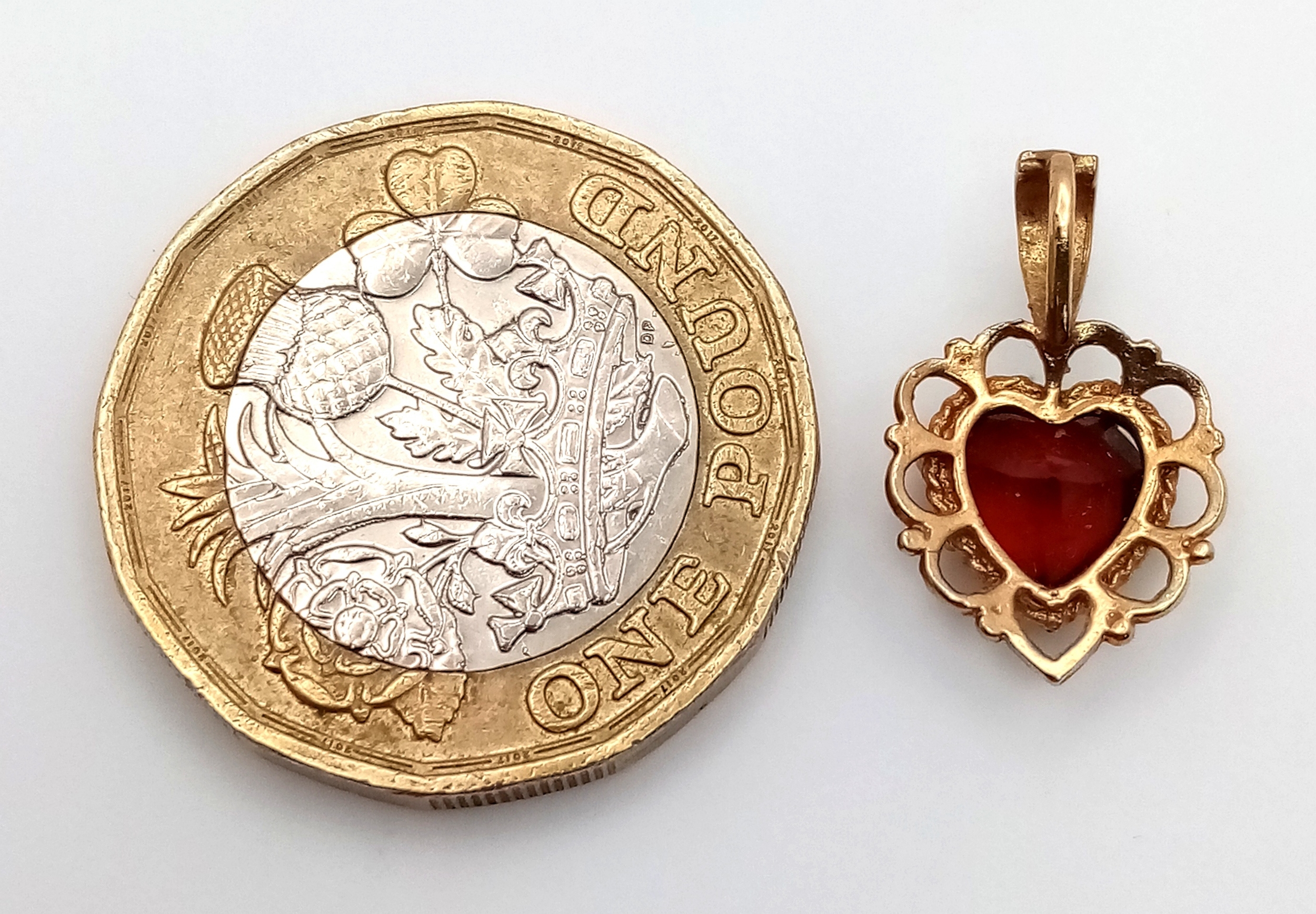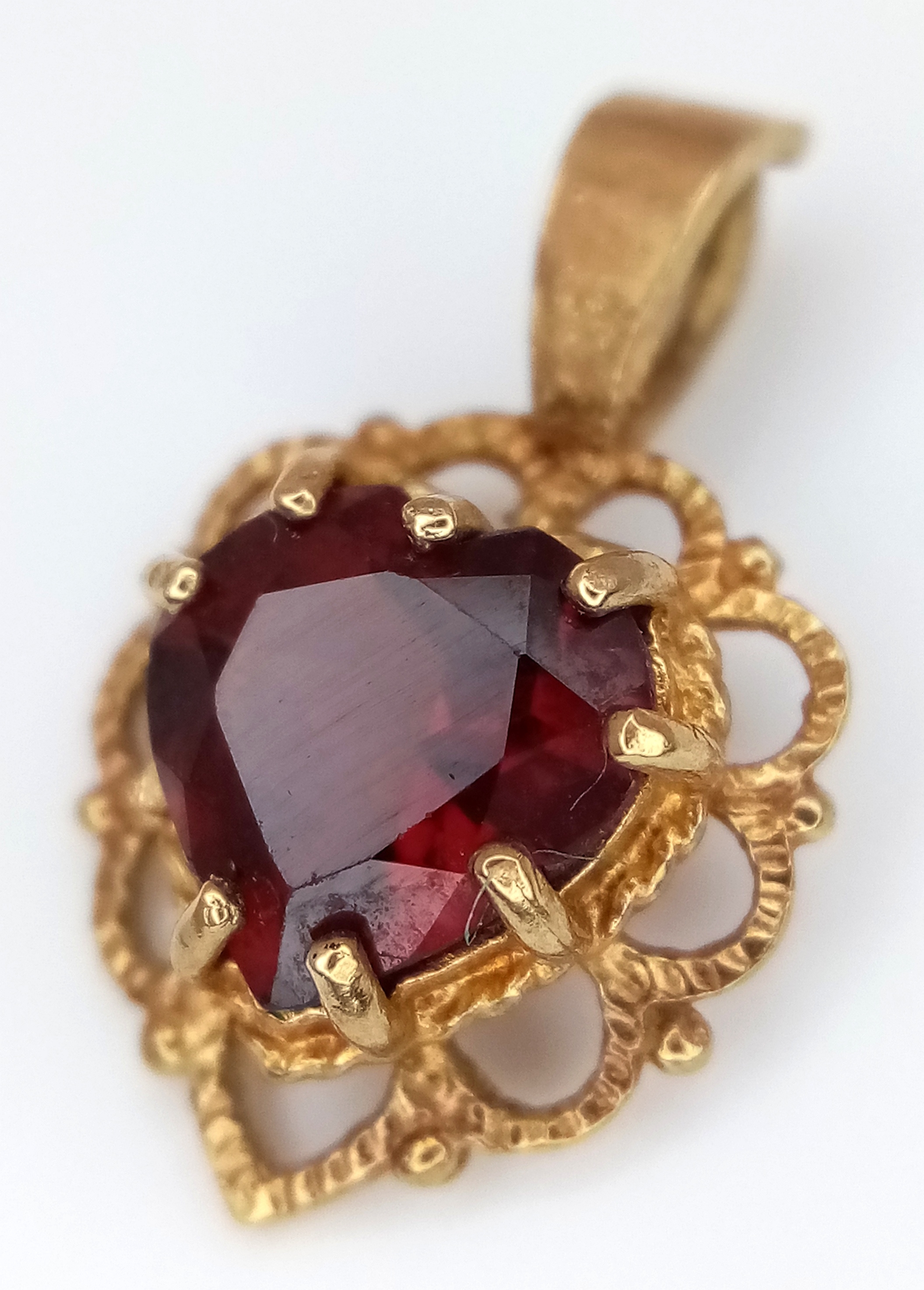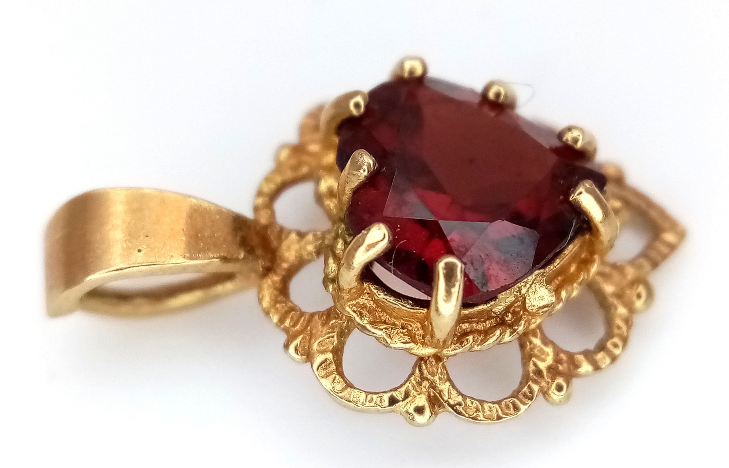 A 9K Yellow Gold Garnet Pendant. 15mm. 0.88g.