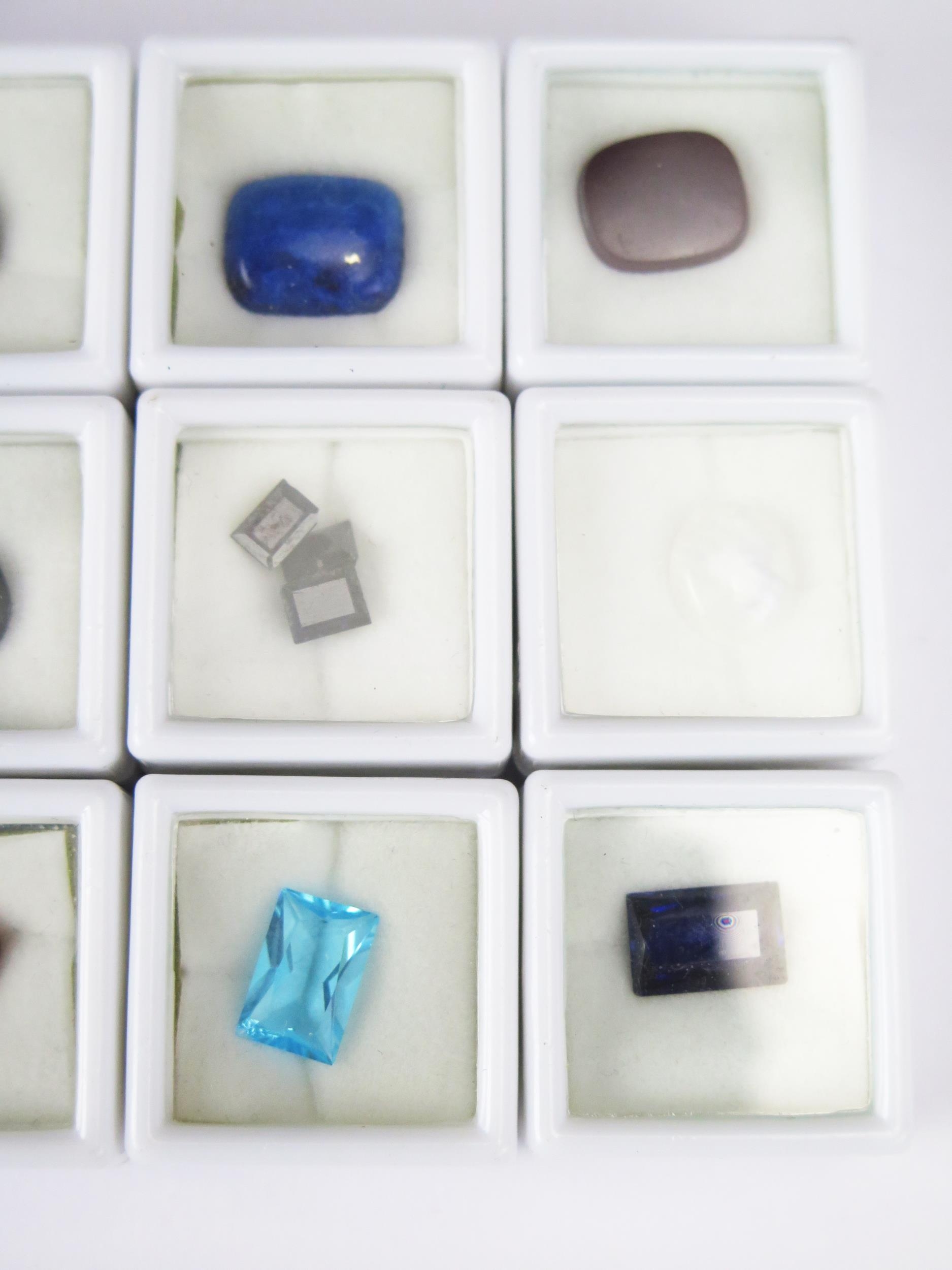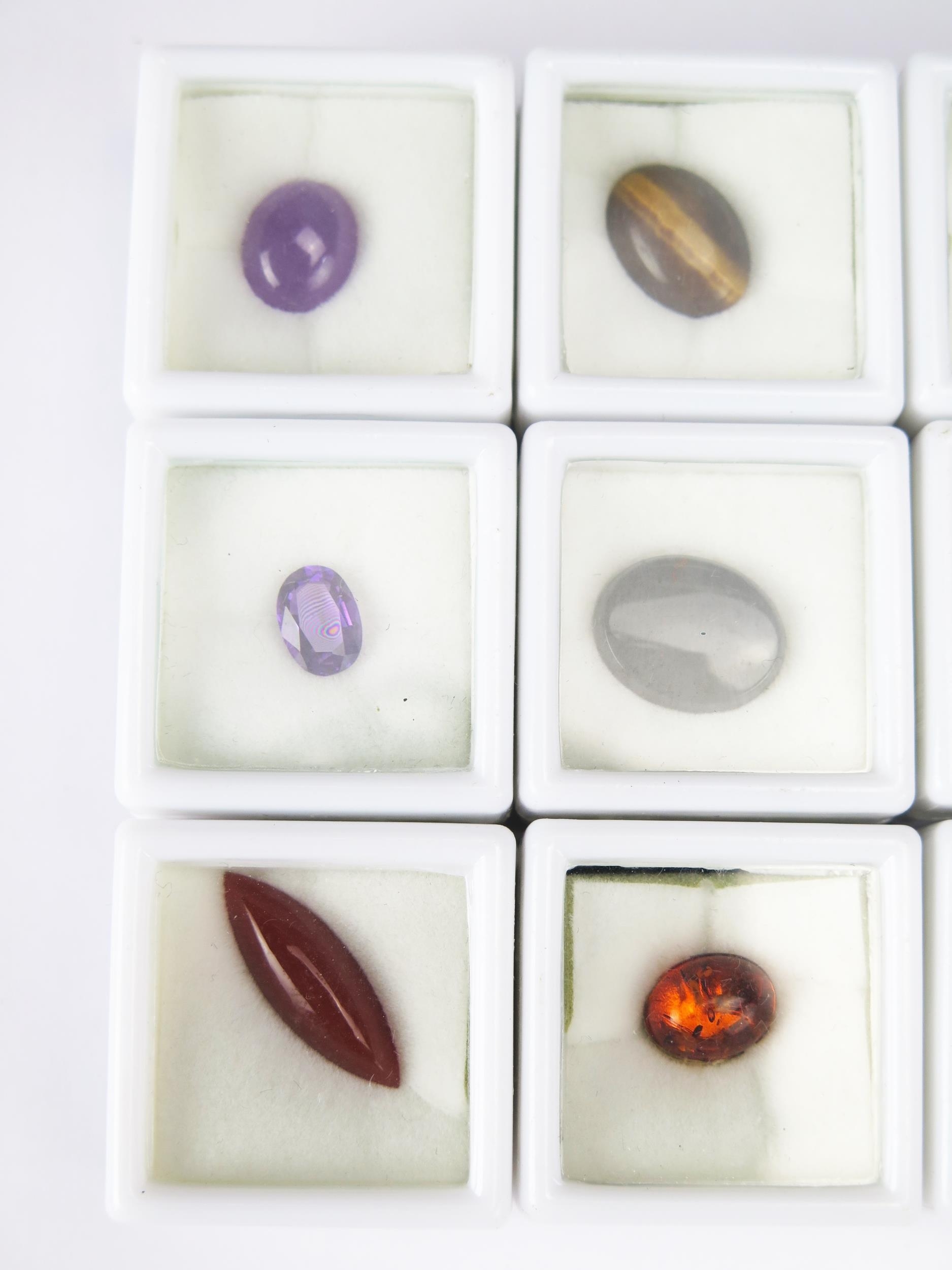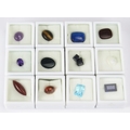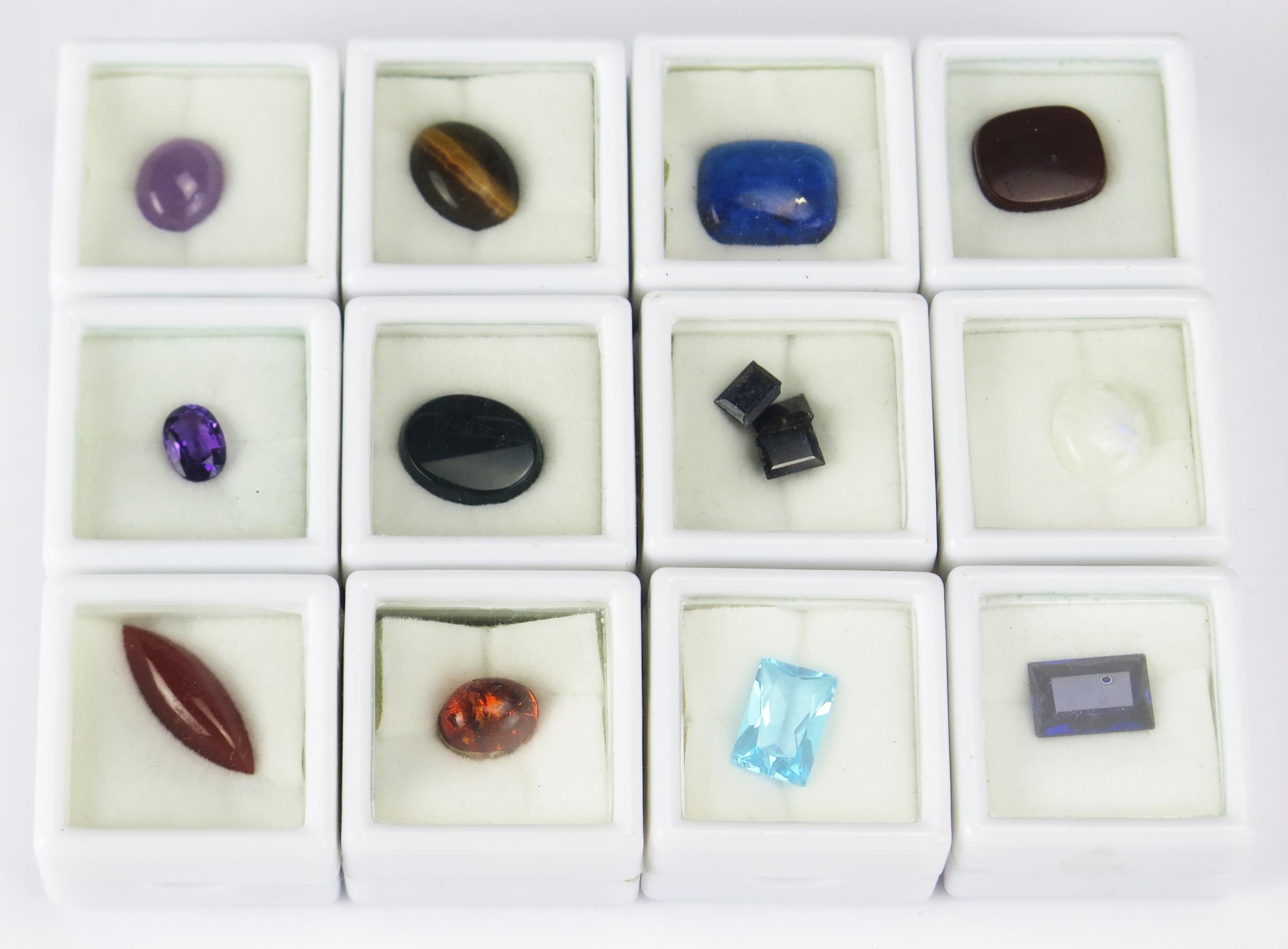 A Parcel of 12 Loose Mixed Gemstones, all individually boxed and including tiger's eye, amethyst, sapphire, onyx, lapis lazuli and others.