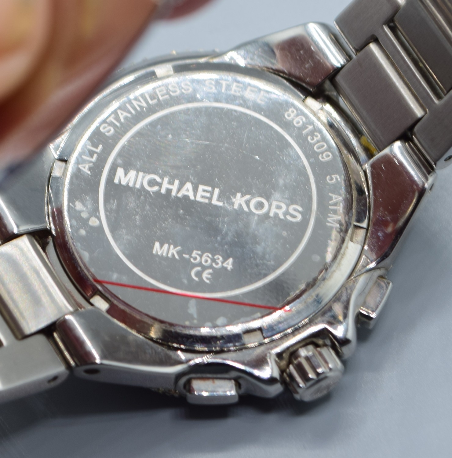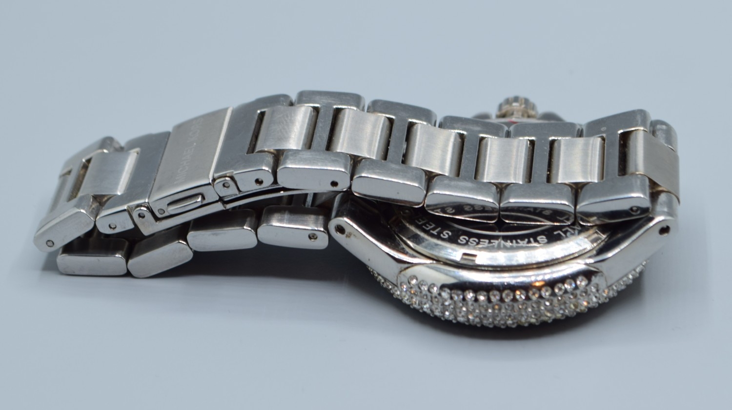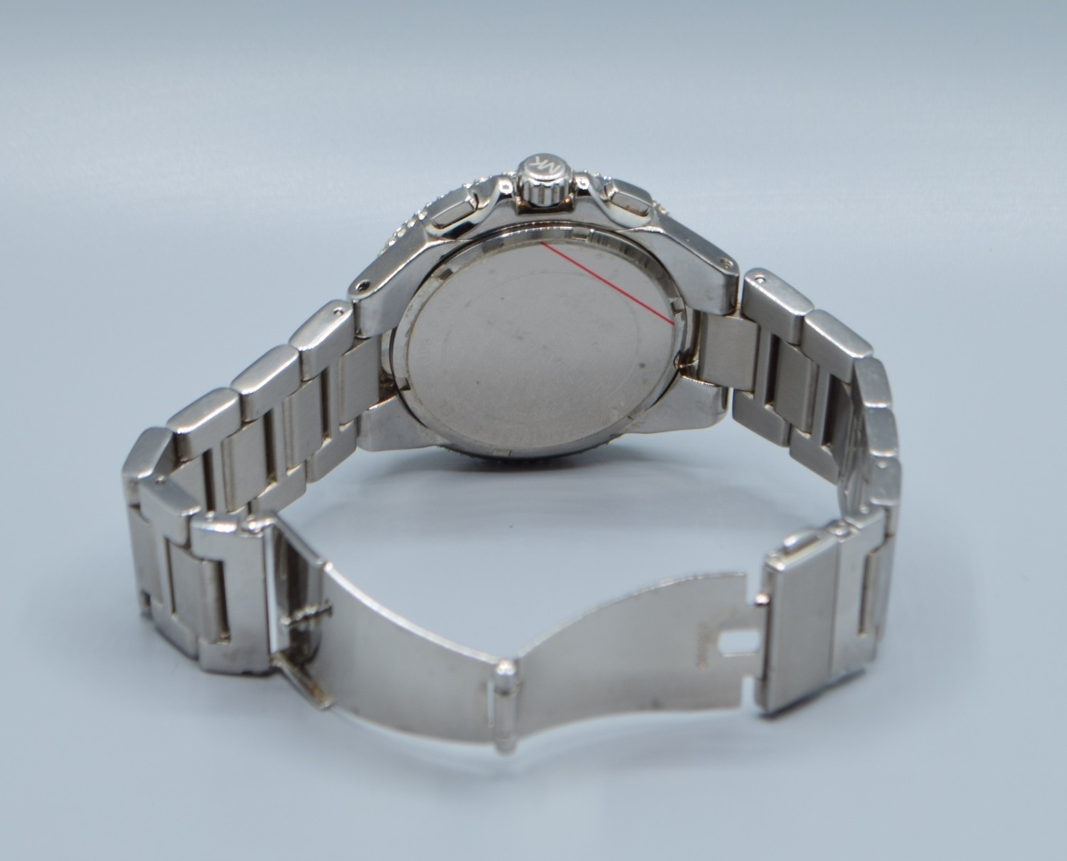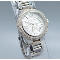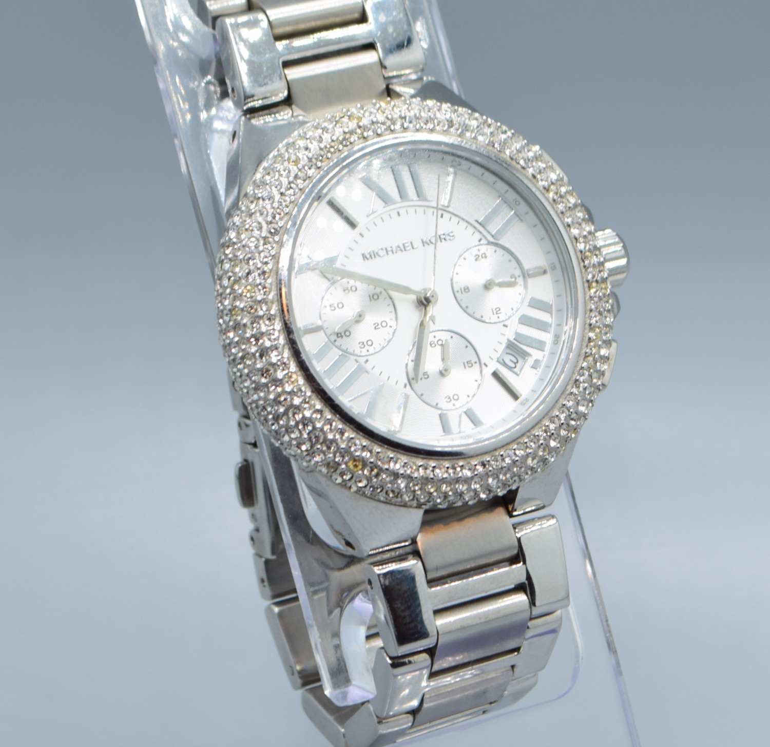 Gents Michael Kors fashion watch with subsidiary dials and sweep second hand on a stainless steel strap with clear gem set bezel working when catalogued
