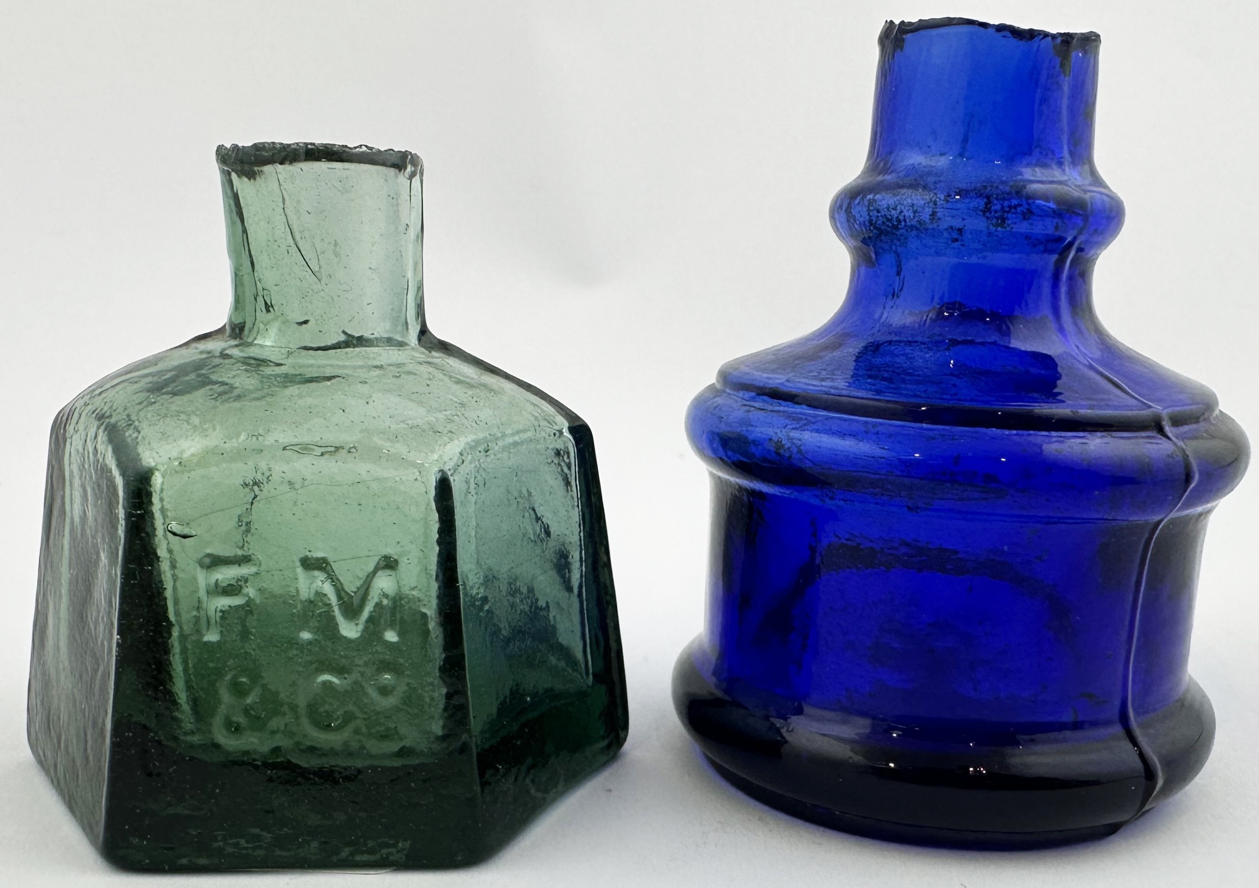 INKS DUO. Tallest 2.5ins. Embossed FM & Co to one, other plain. Minute nicks. (2)