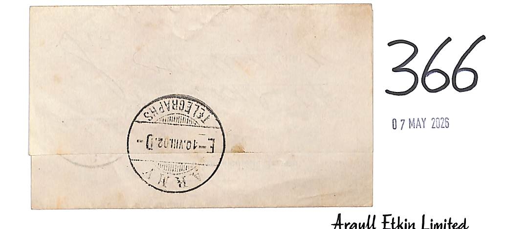 1902 (Aug 10) Post Office form to "Georges", a telegram handed in at East Down Camp addressed to the Royal Oak at Eastington has not been delivered due to the name and address being unknown, Army Telegraphs datestamp code "E.D" applied both inside and on the reverse of the form, very scarce.