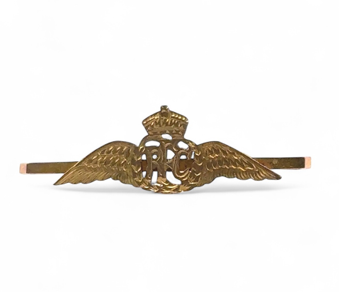 A Royal Flying Corps (RFC) 9ct gold sweetheart brooch, 2g
