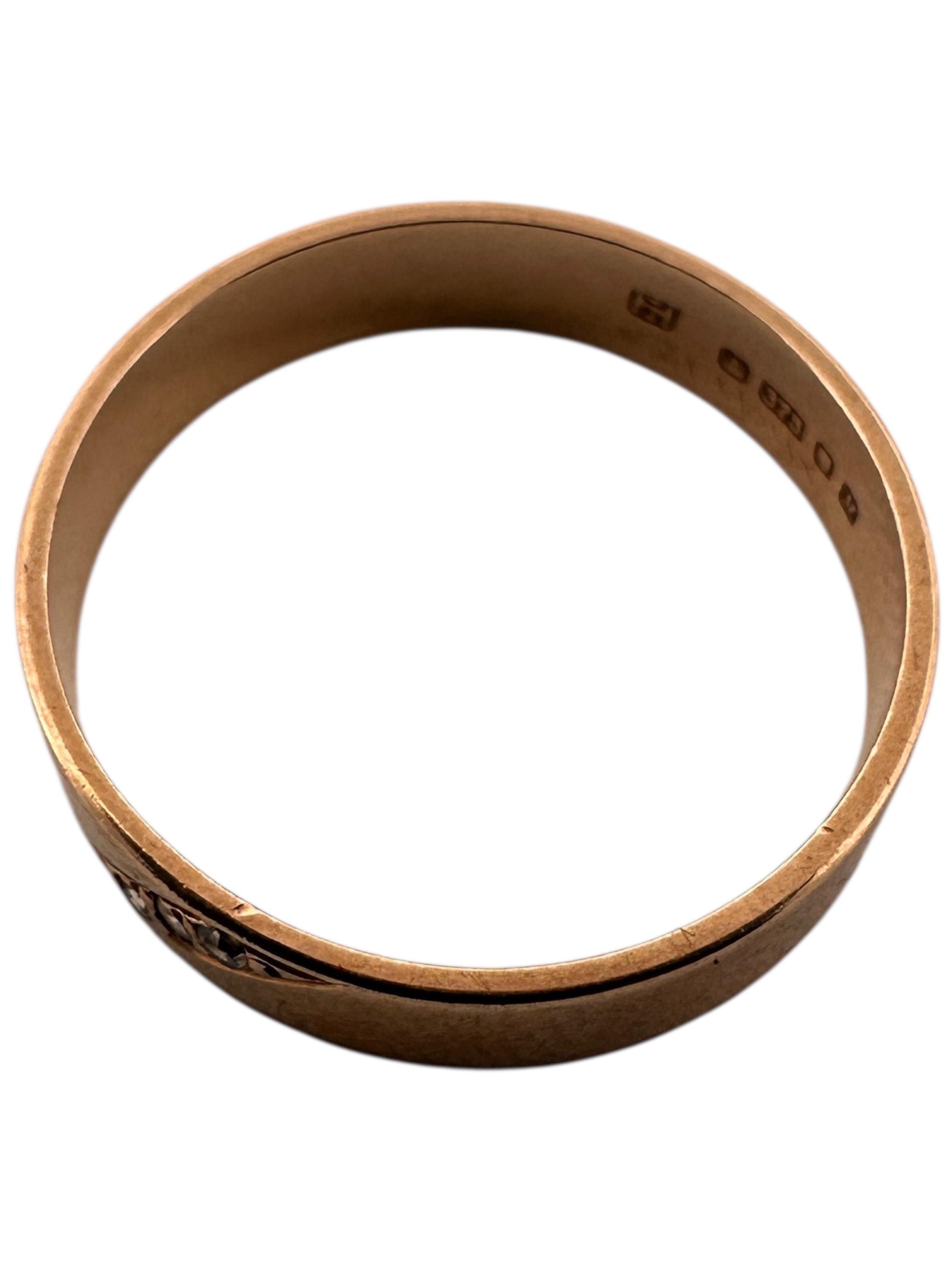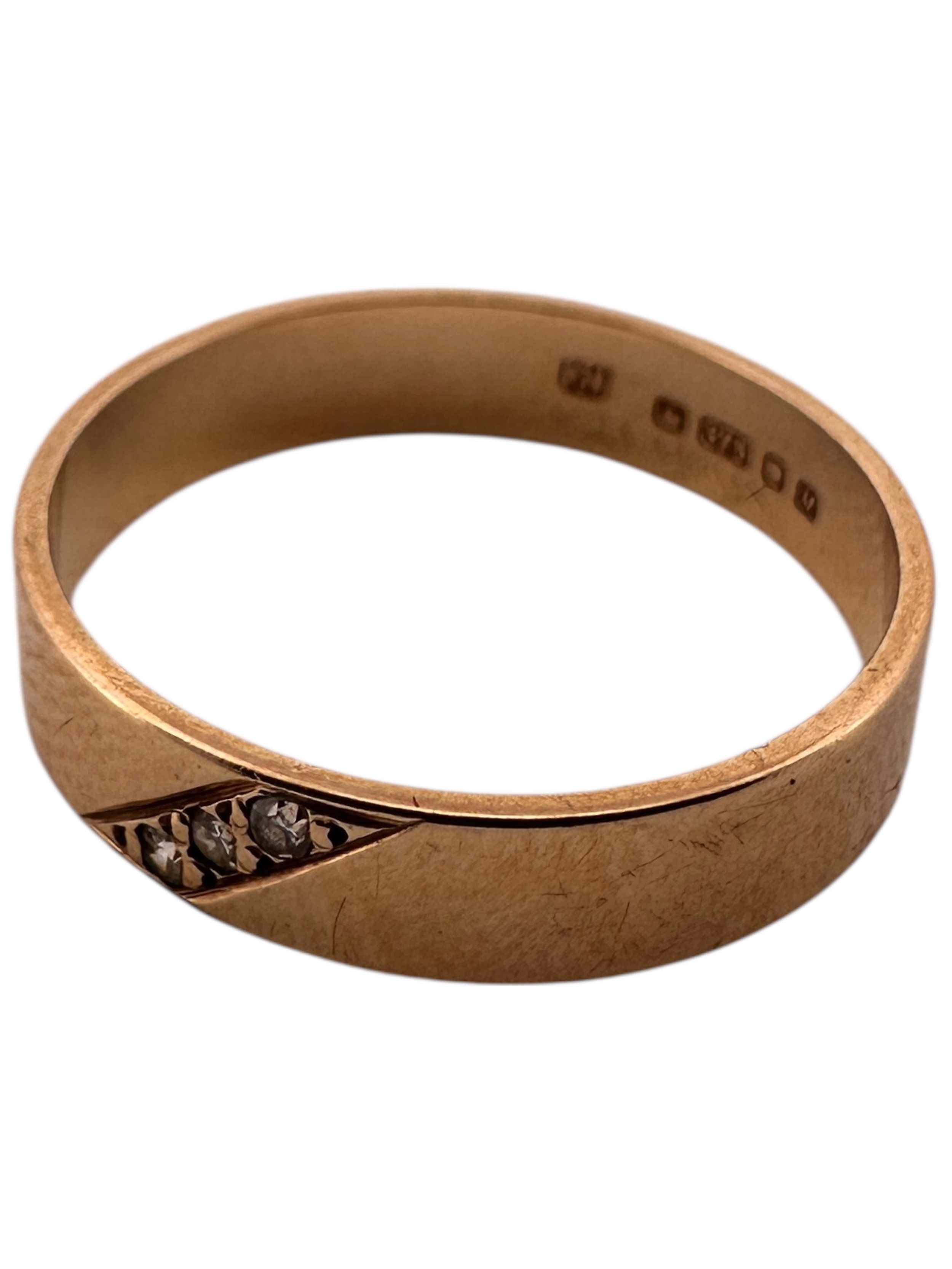 Nine Carat Gold Band Ring set withSmall Diamonds. Size L. 1.73g
