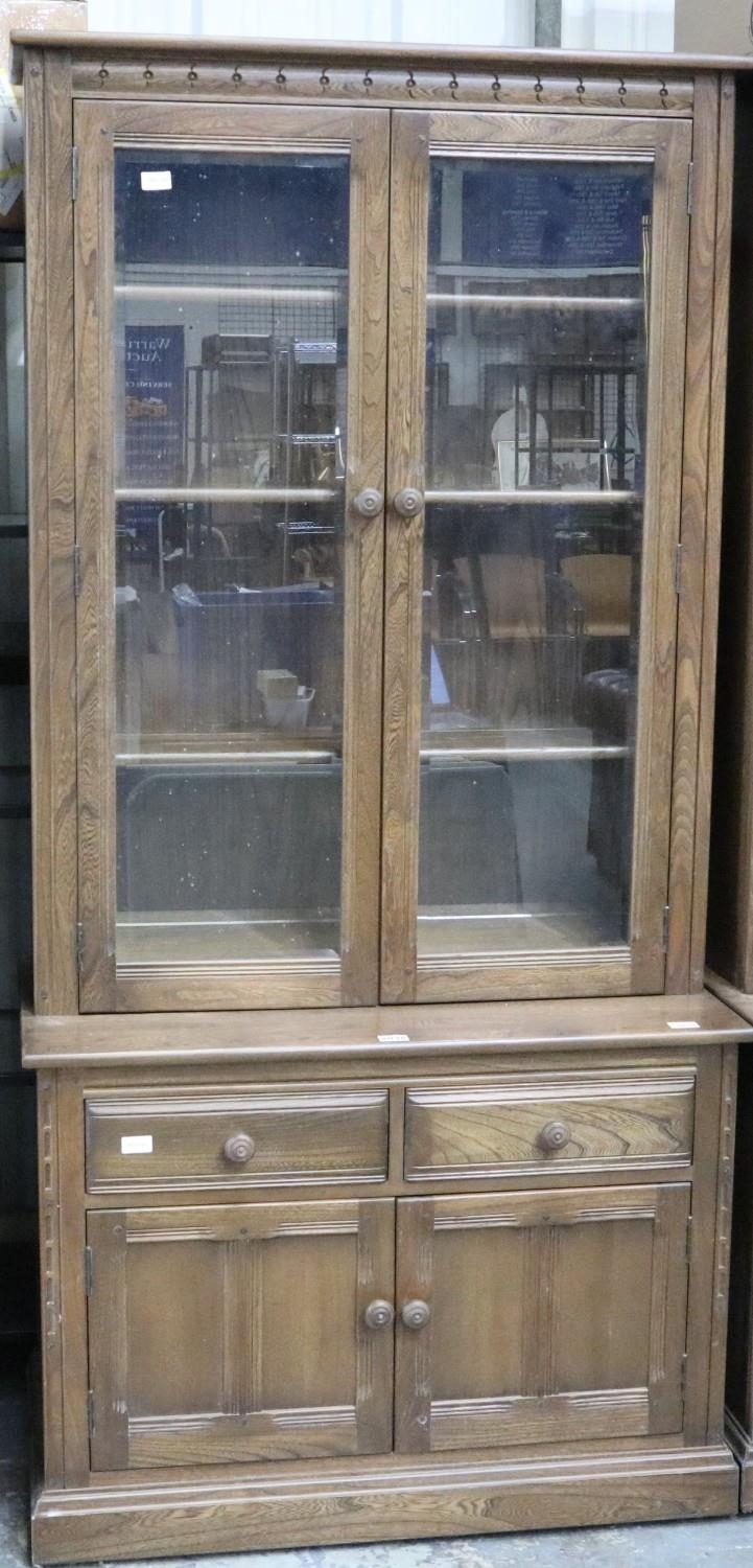 Ercol Golden Dawn elm bookcase with glazed and panelled cupboard doors. Not available for in-house P&P