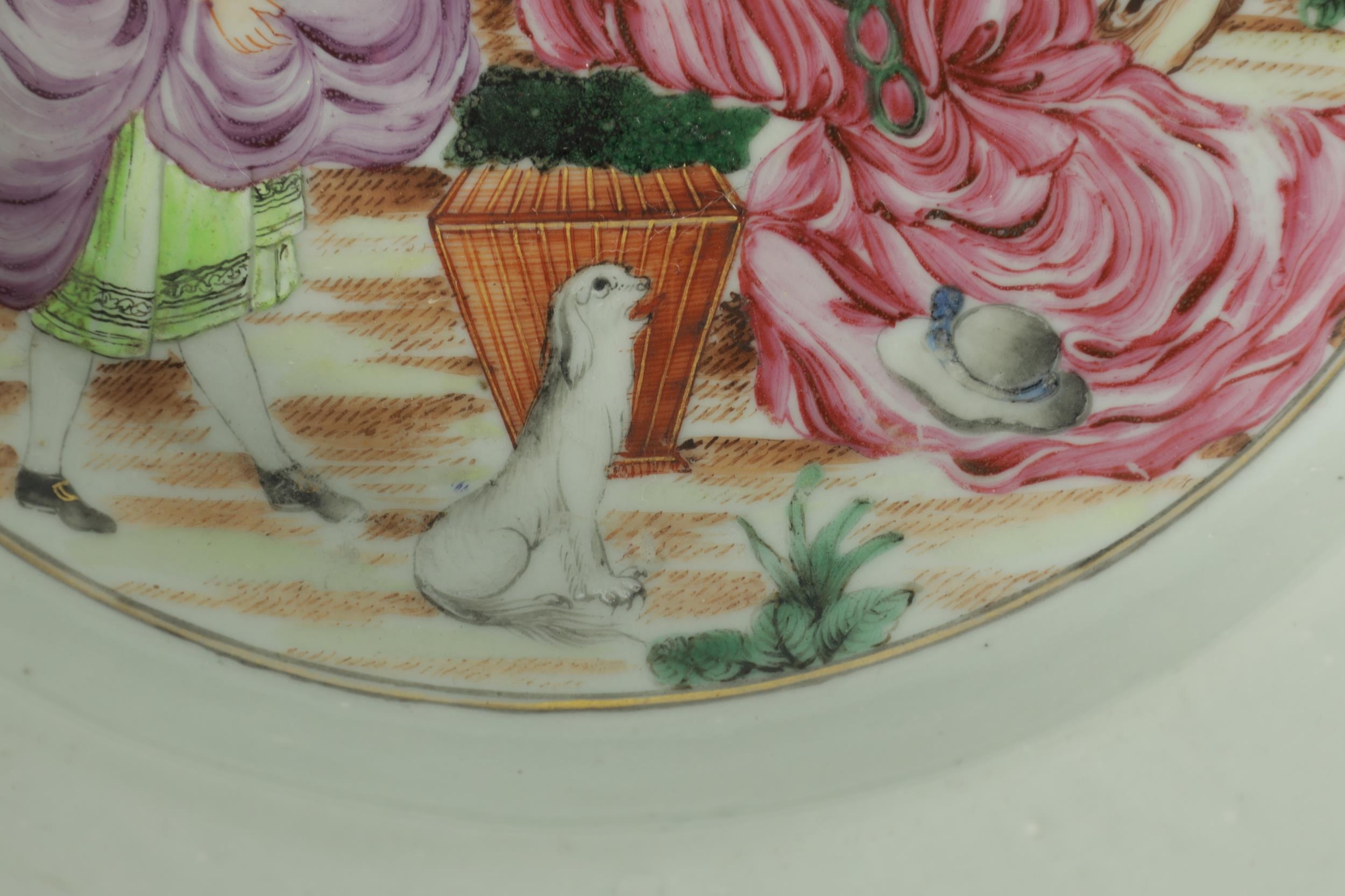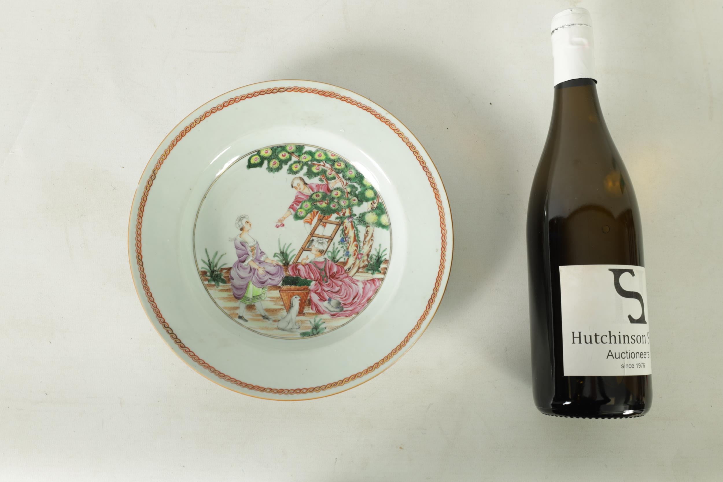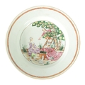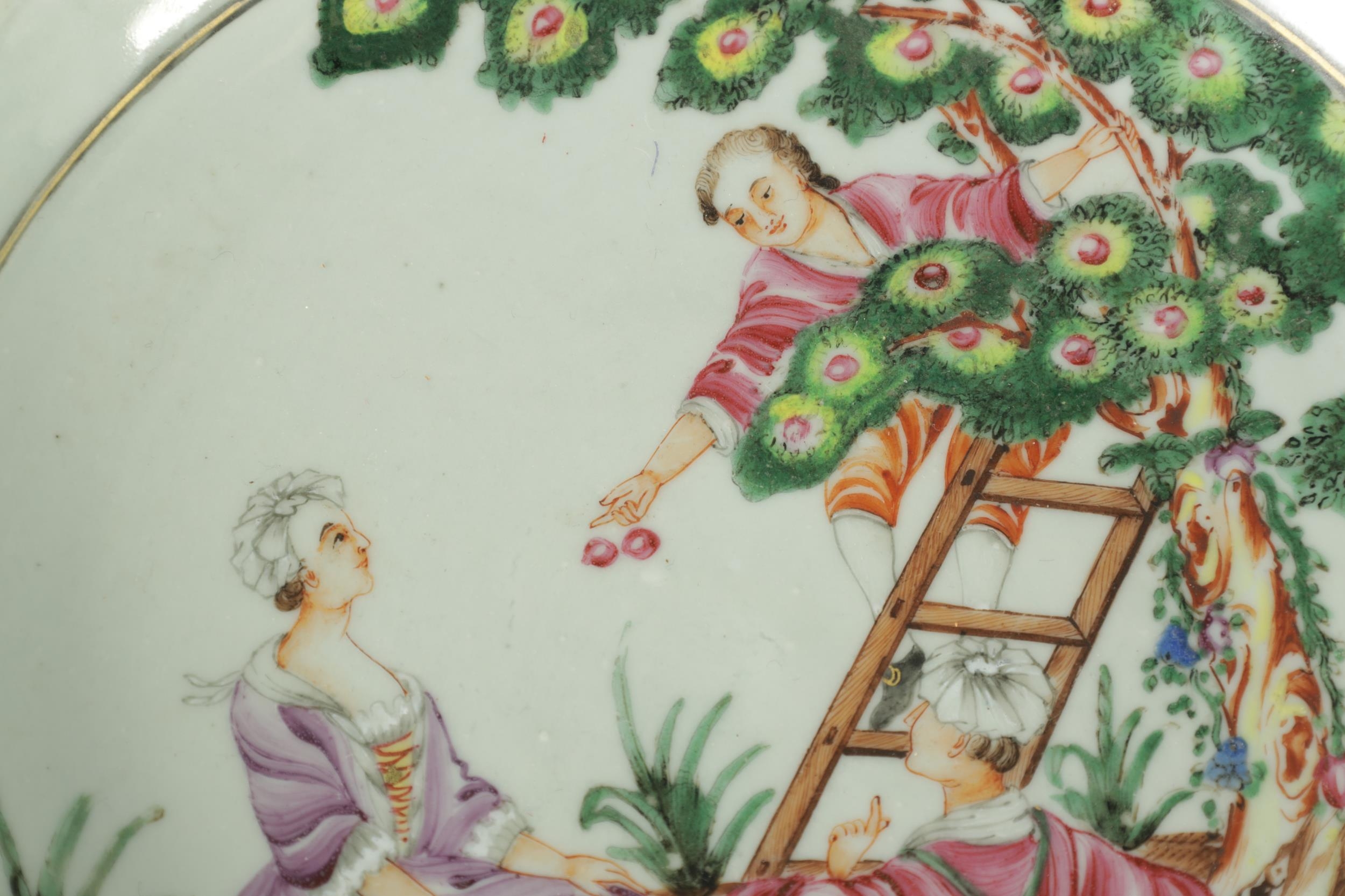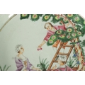 A CHINESE QING LONG PERIOD FAMILLE ROSE ‘CHERRY PICKERS’ PLATE (23cm diameter )