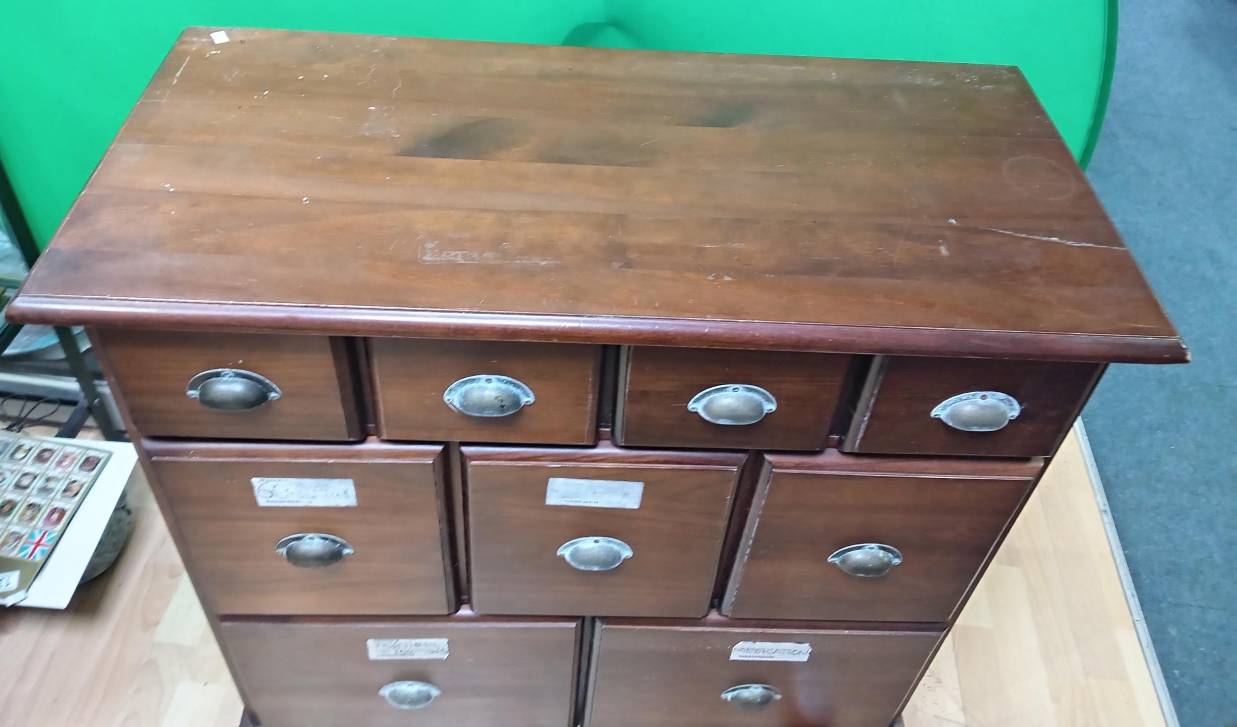 A vintage mahogany 4 over 3 over 2 chest of draw. 89cm x 41cm x 88cm.